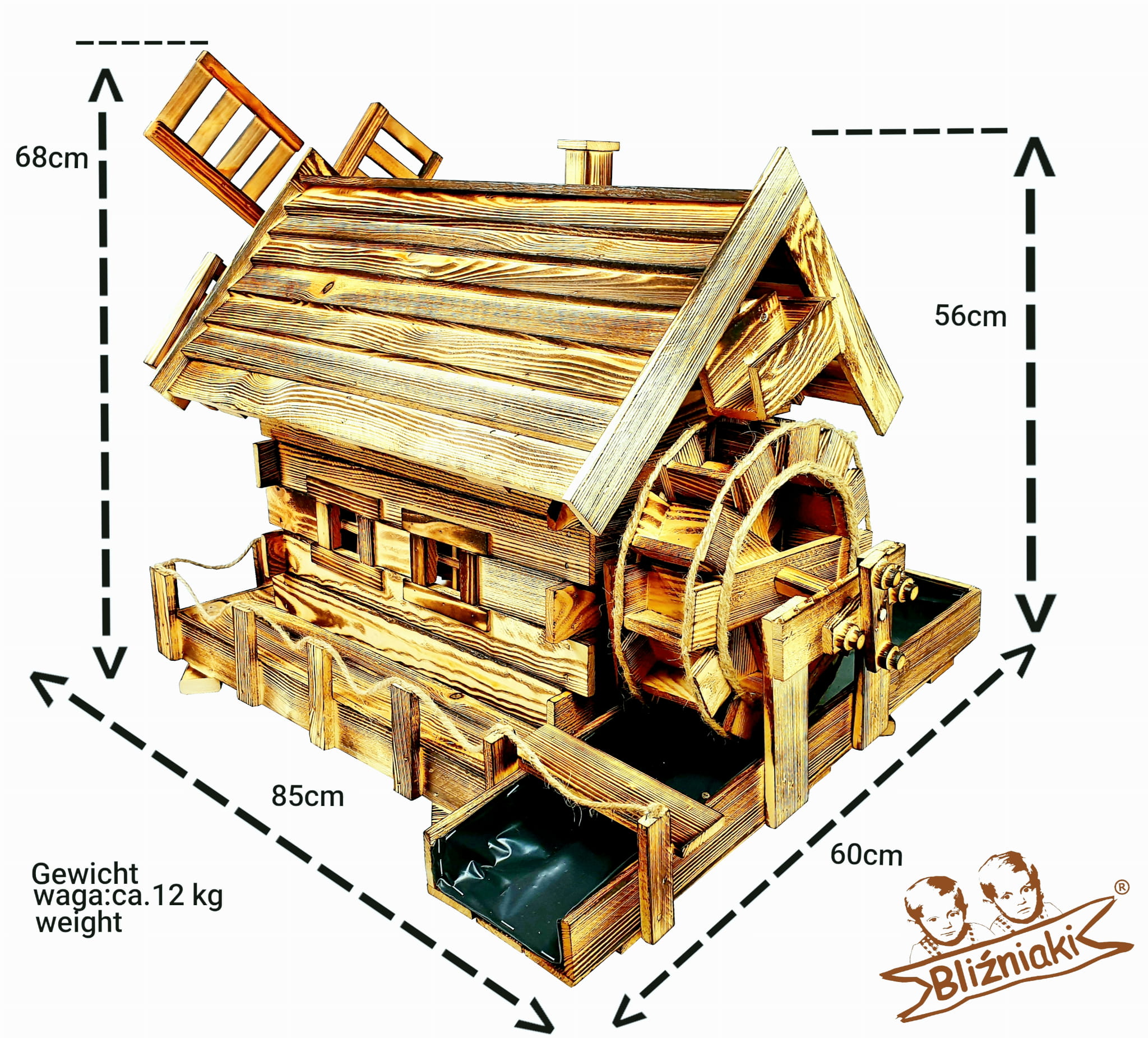 Przedmiotem oferty jest DREWNIANY MŁYN WODNY - DEKORACYJNY WIATRAK OGRODOWY