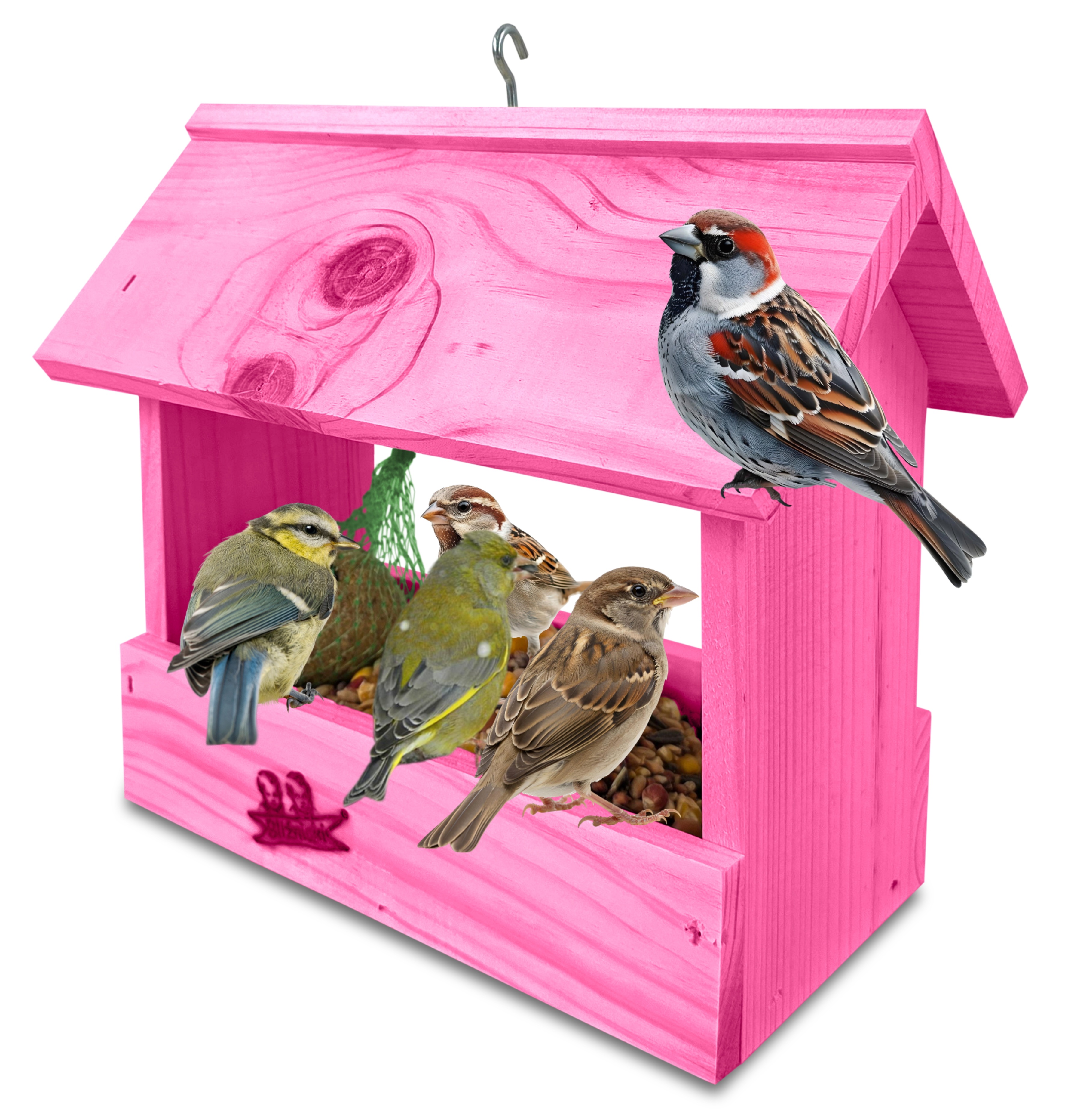 Przedmiotem sprzedaży jest ozdobny drewniany karmnik dla ptaków budka domek na balkon K204 RÓP w kolorze jasnoróżowym
