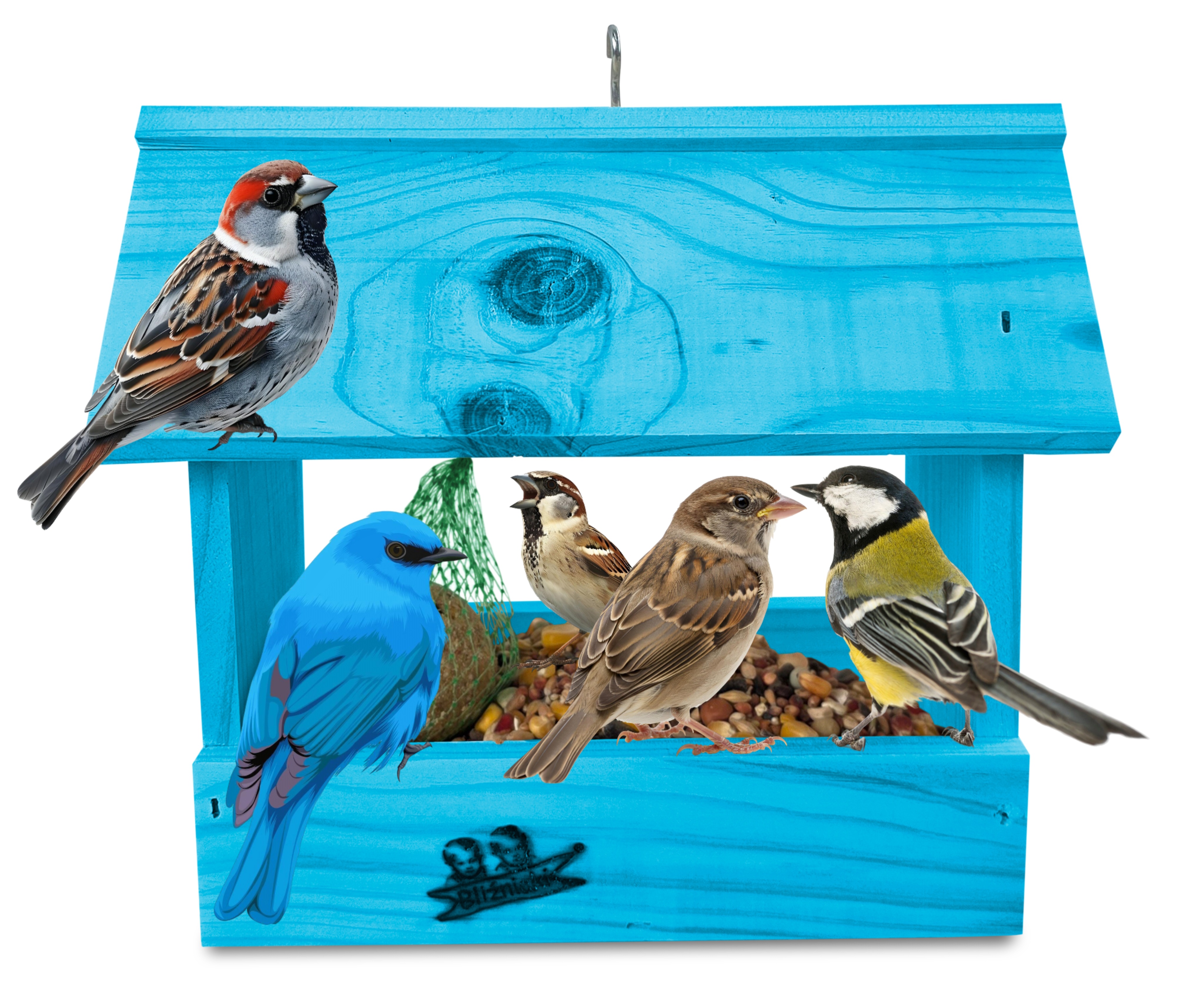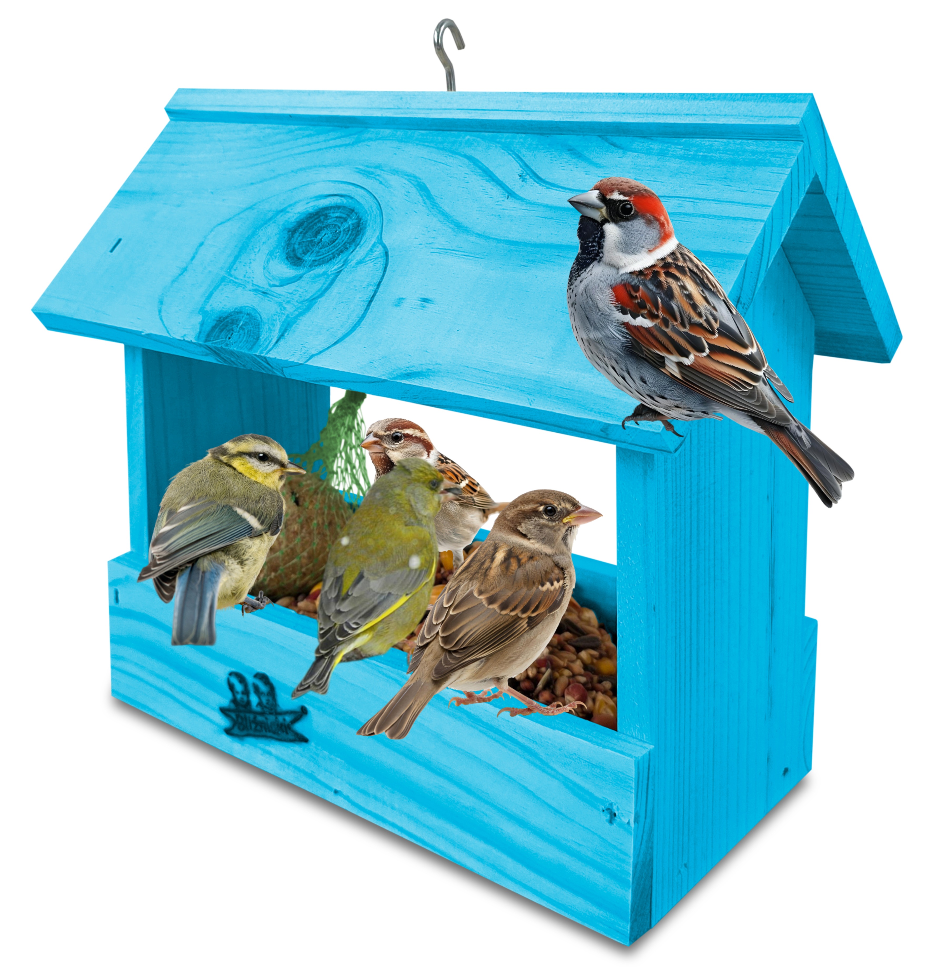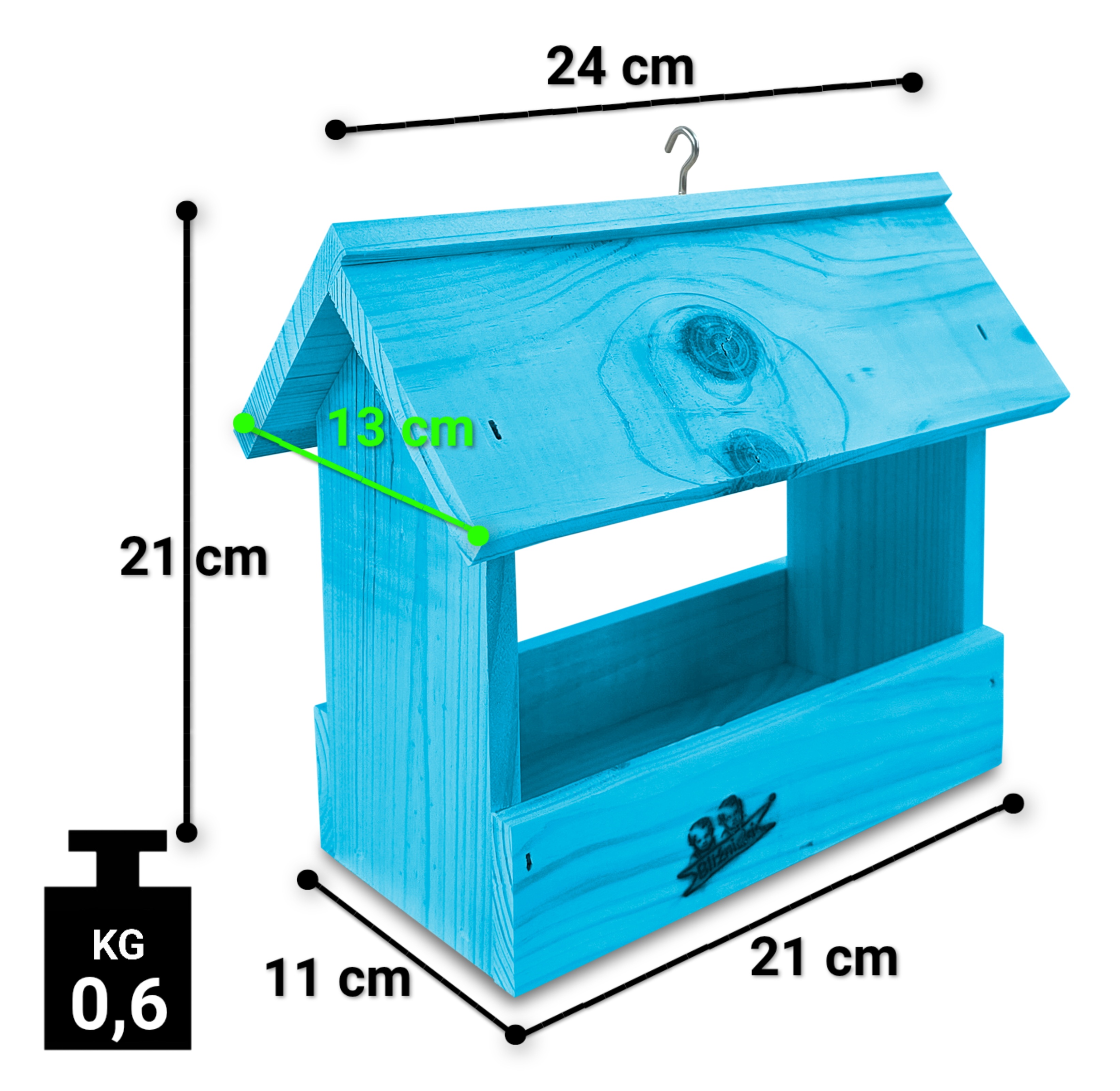 - Karmnik wykonany jest w całości z drewna iglastego, KOLOR JASNONIEBIESKI