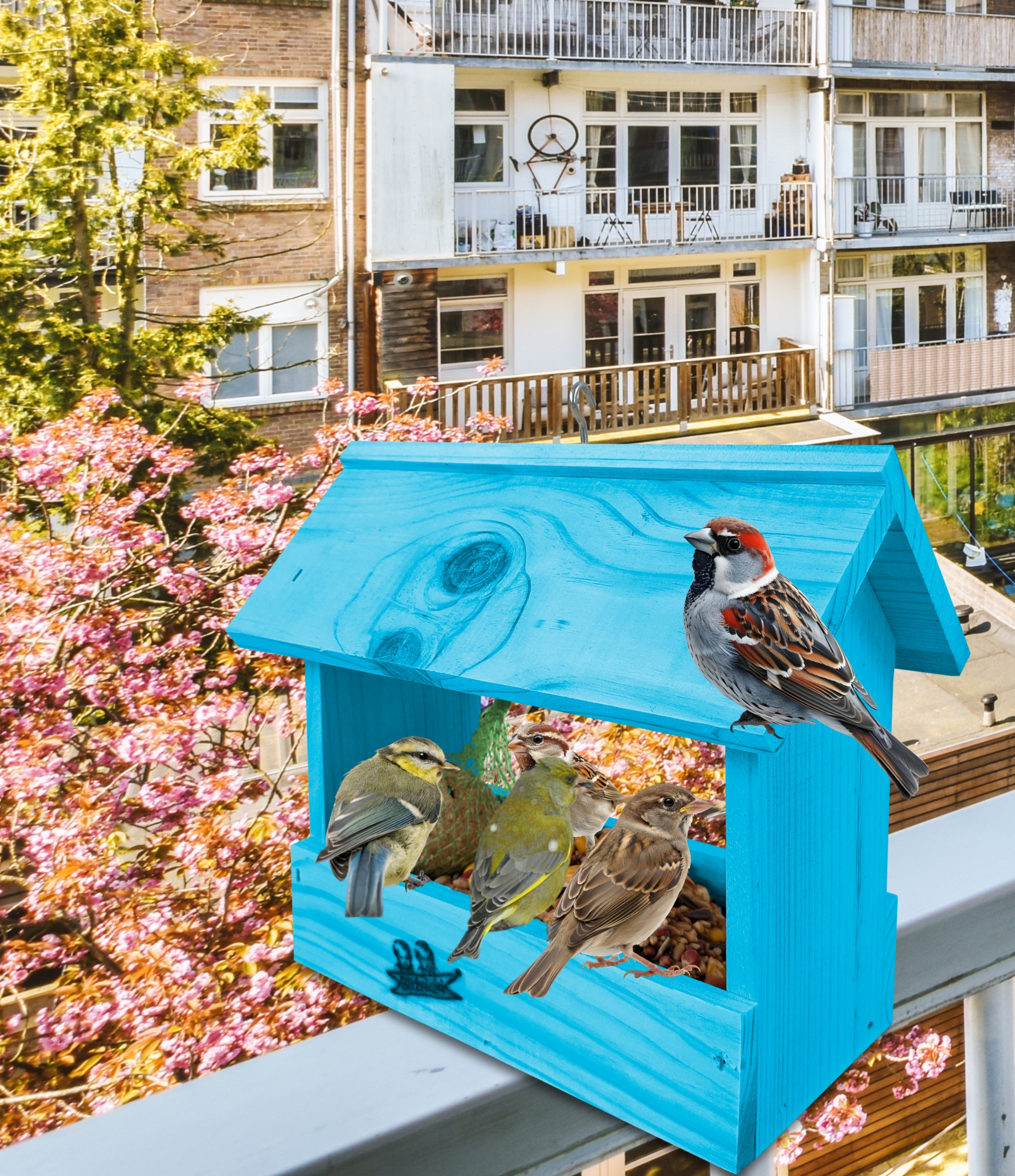 Przedmiotem sprzedaży jest ozdobny drewniany karmnik dla ptaków budka domek na balkon K204 NBP w kolorze jasnoniebieskim
