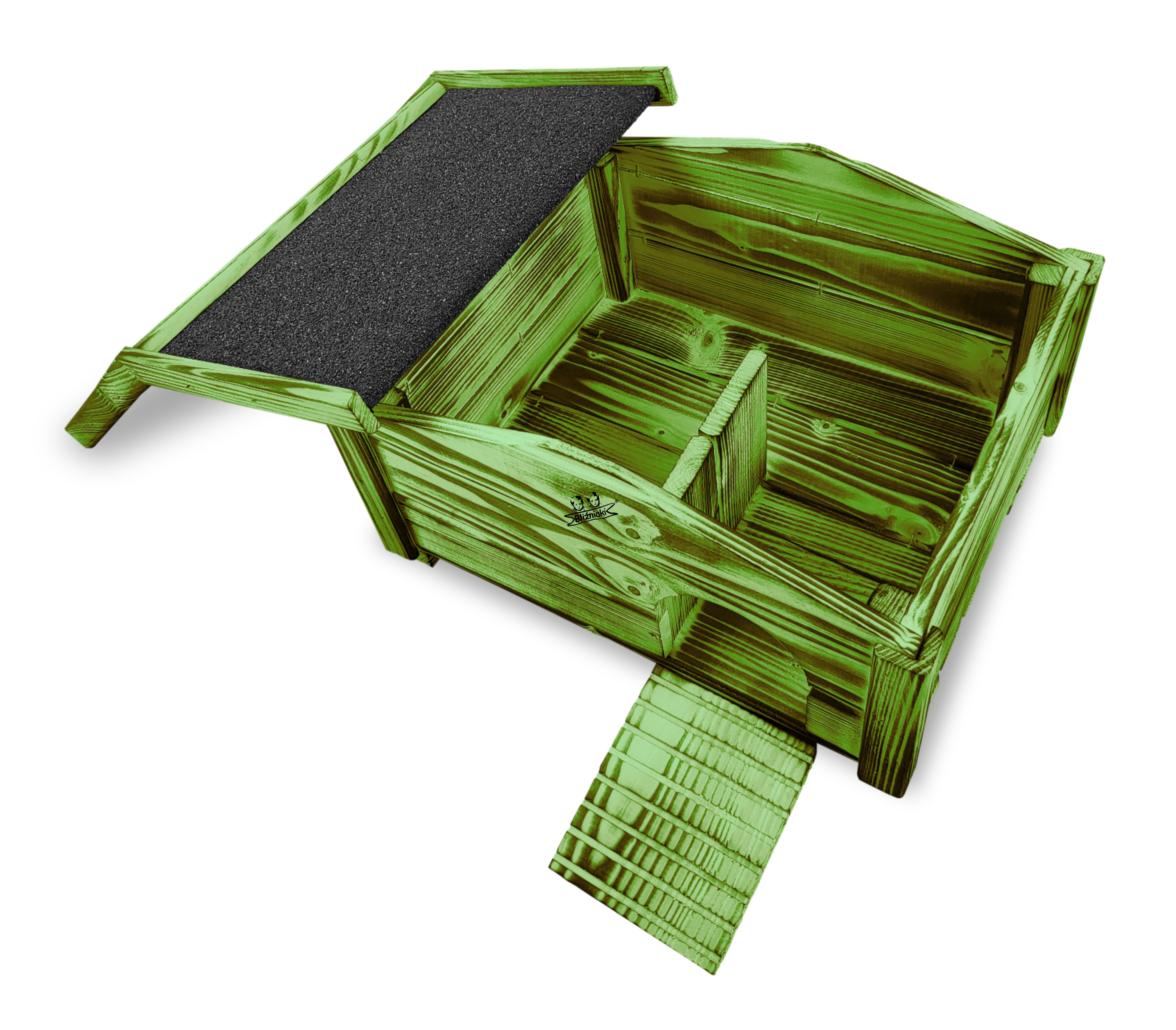 Na tej aukcji oferujemy domek dla jeża HDJ10 OPAL ZZ WYKONANY Z DREWNA OPALANEGO OGNIEM, BARWIONY NA KOLOR CIEMNOZIELONY.