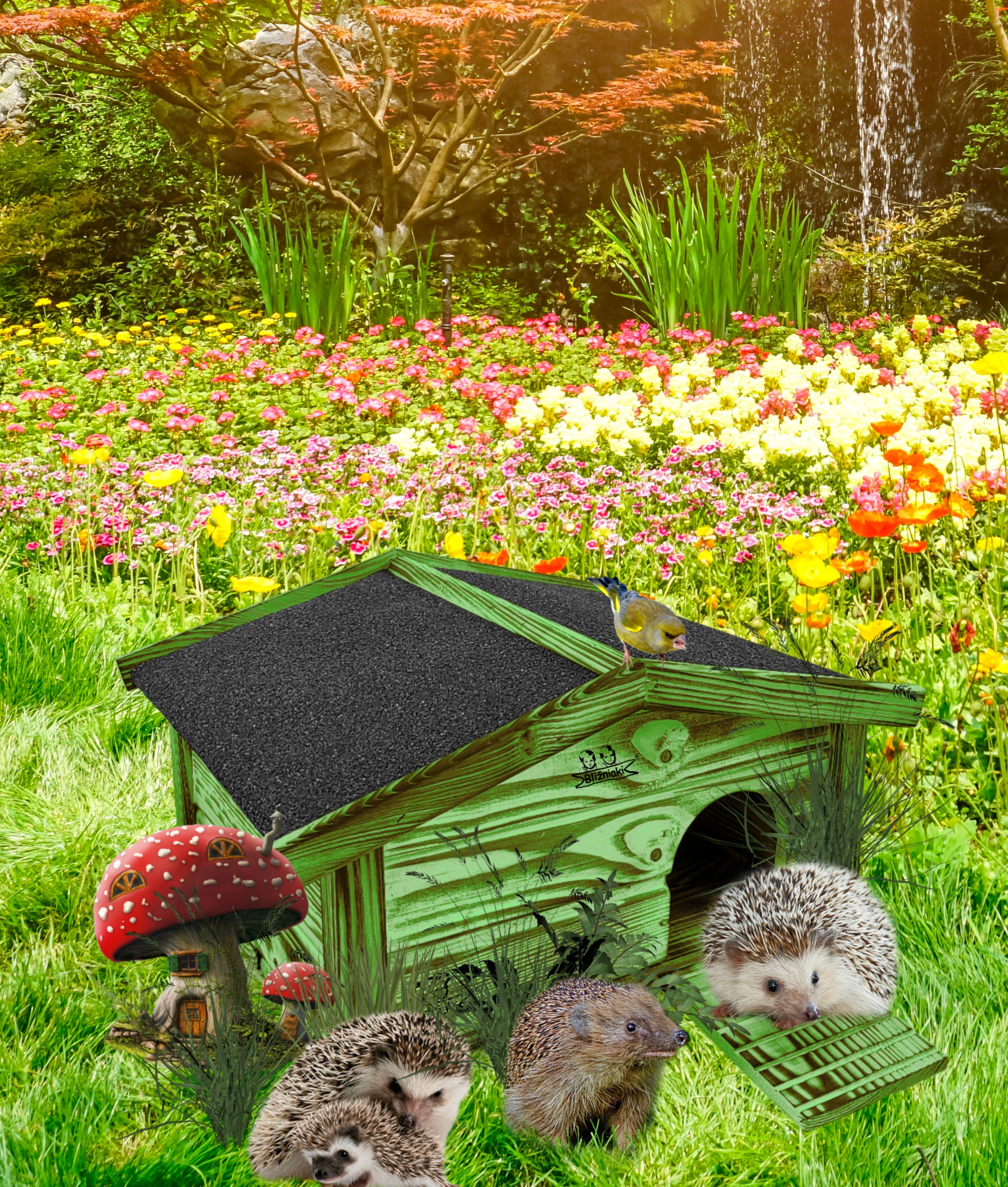 - domek dla jeża stanowi również dekoracyjny element malej architektury ogrodowej