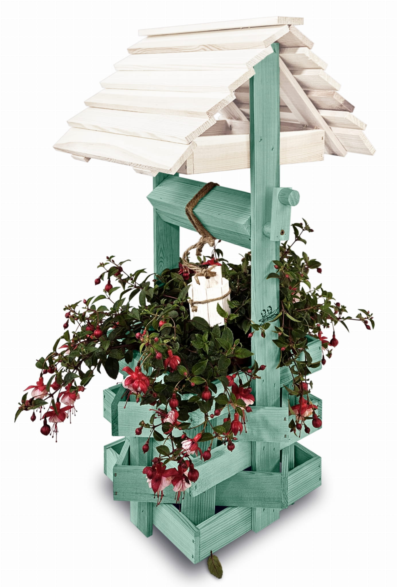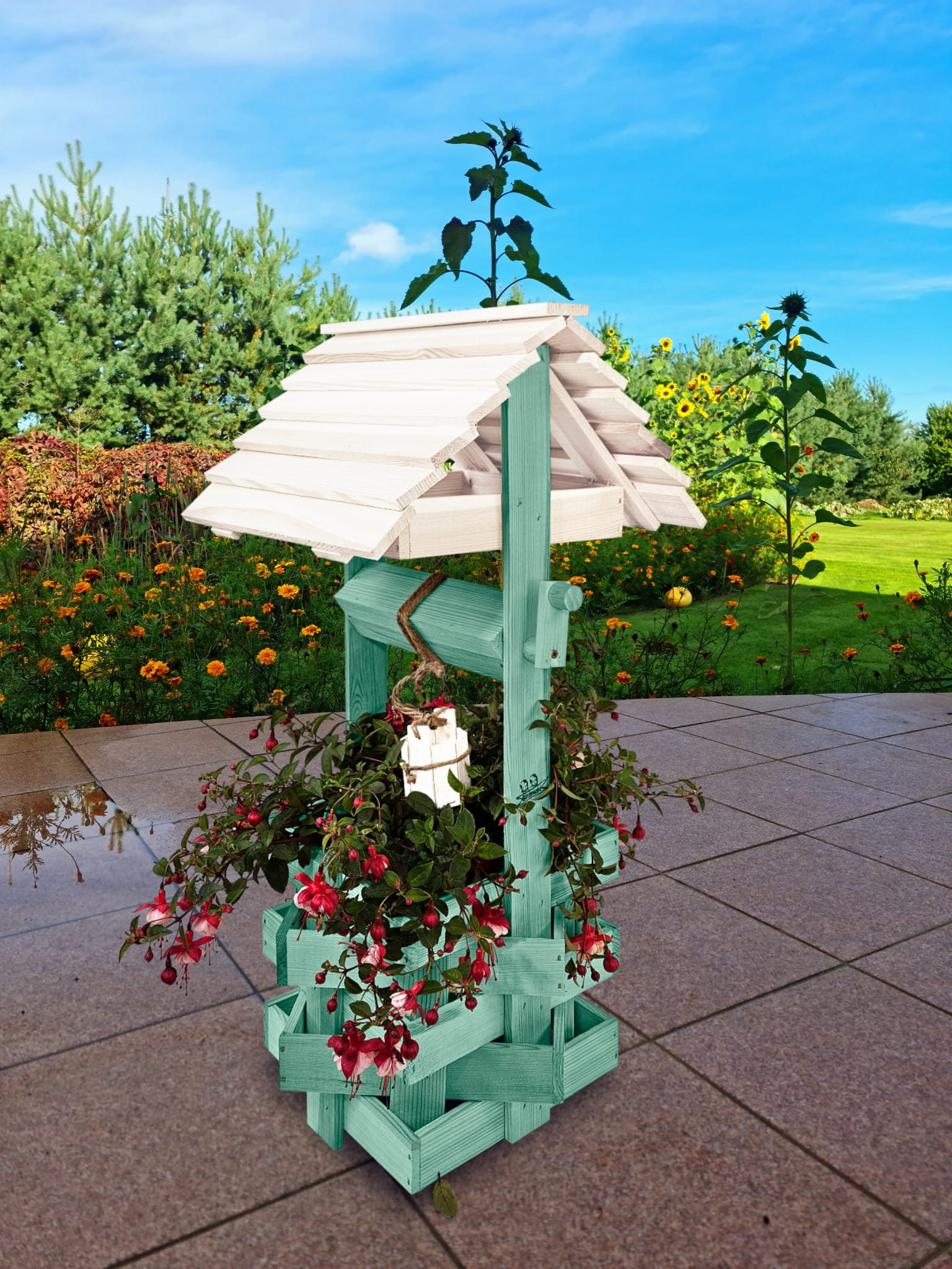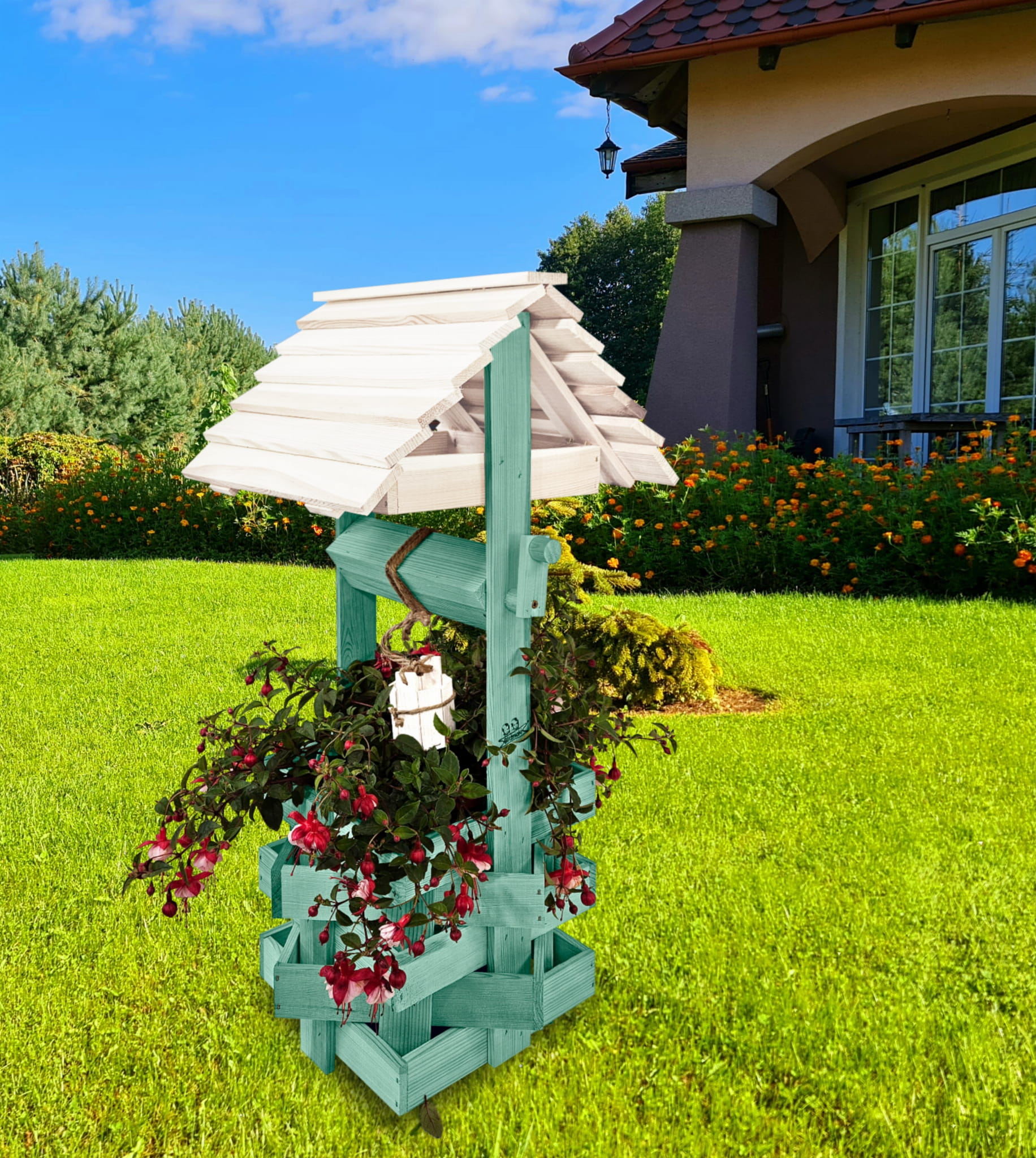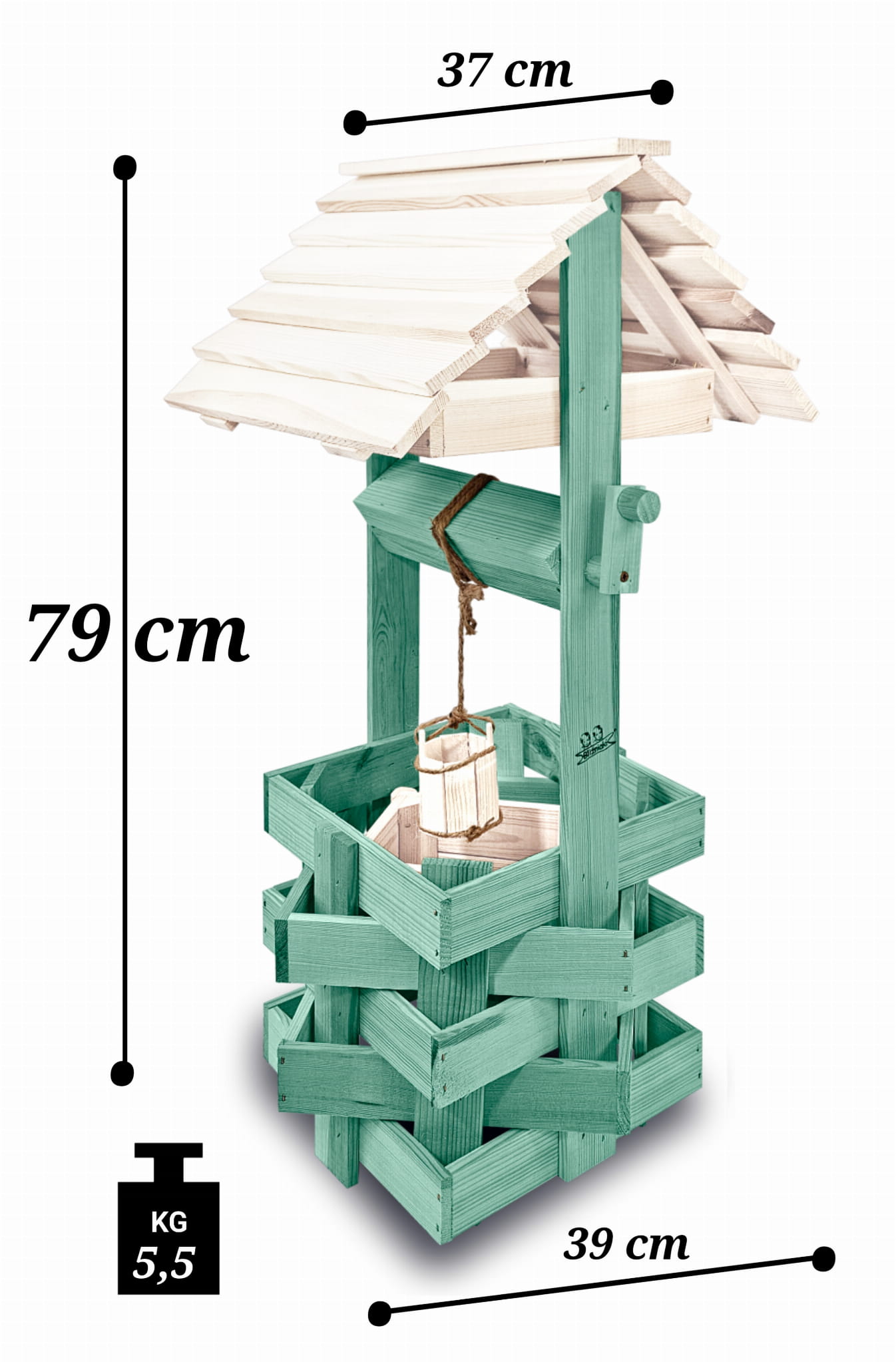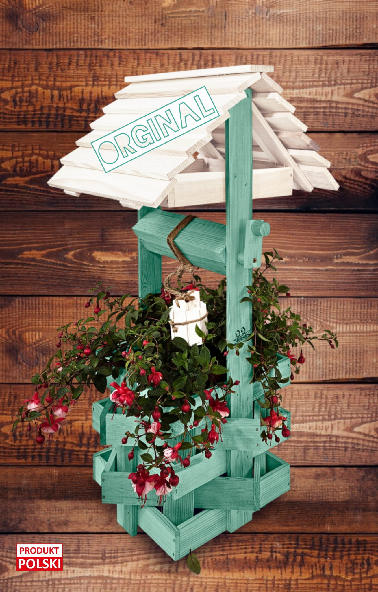Donica drewniana na kwiaty Studnia ogrodowa ozdobna Studzienka na pelargonie Kwietnik Prezent Doniczki Kolor pastelowy JASNA MORSKA ZIELEŃ Studnie balkonowe tarasowe Studzienki na pelargonie i pnącza Studnie kwietniki ozdobne SC1 MRP BI