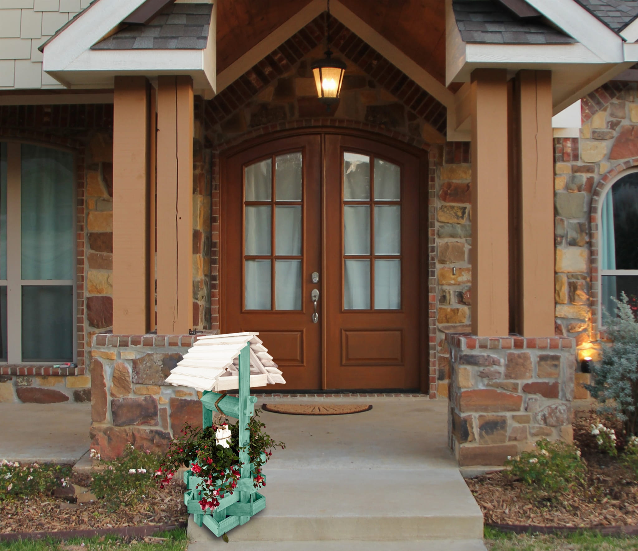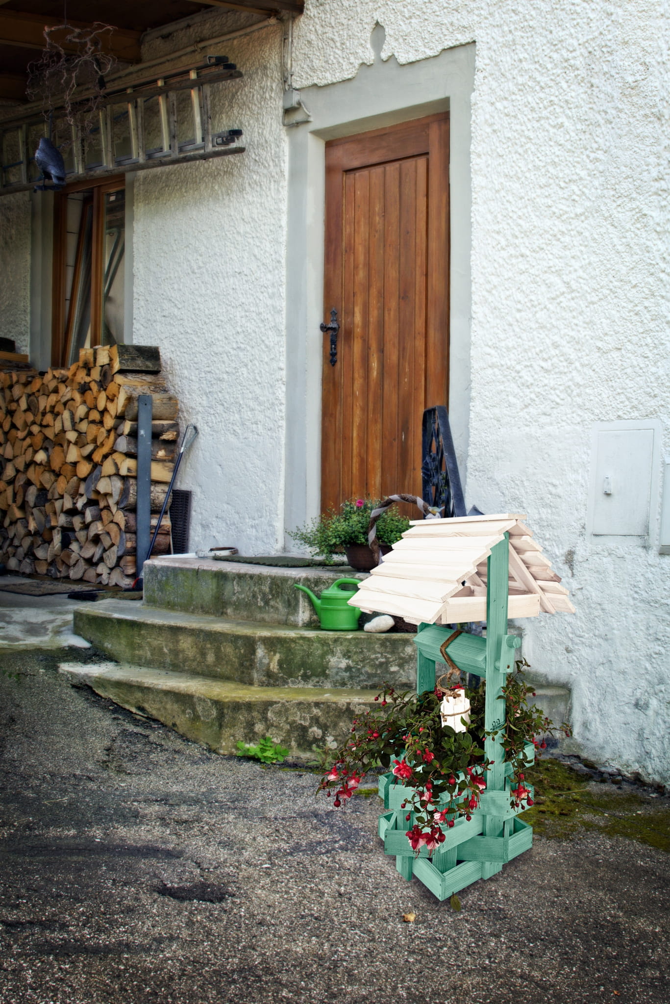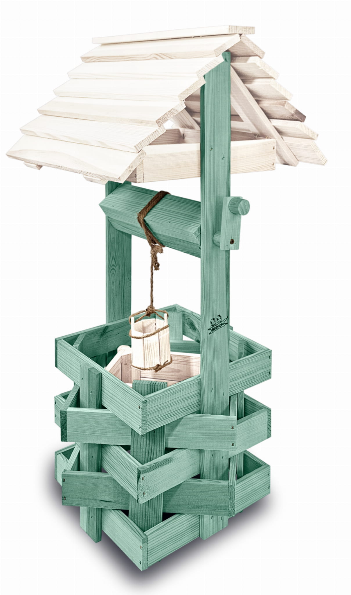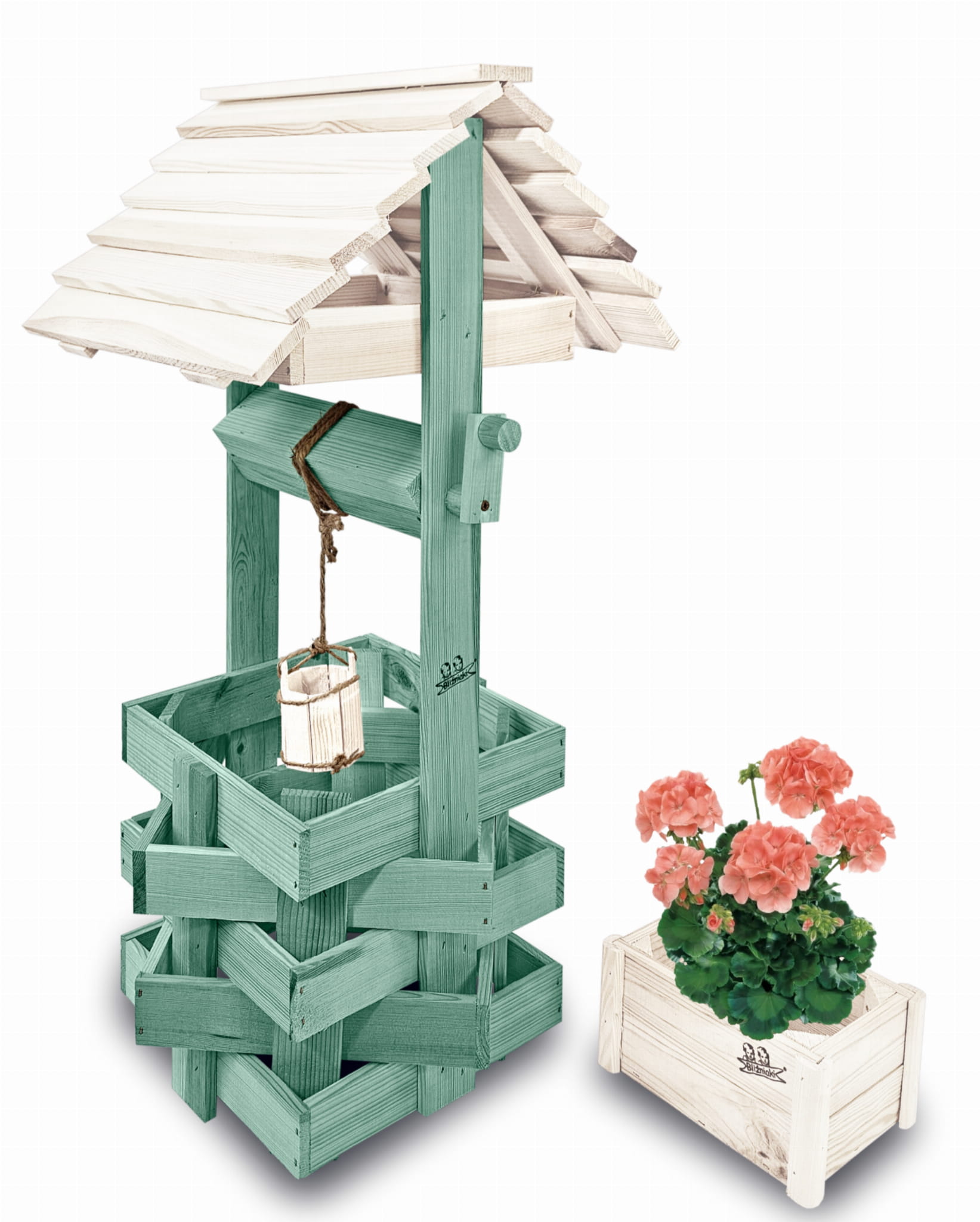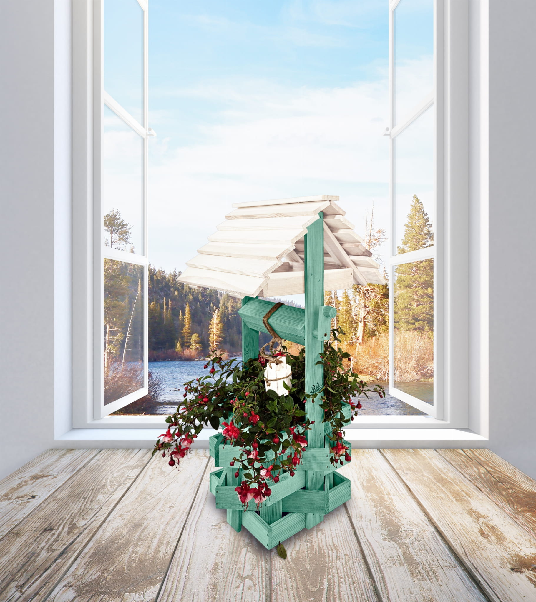 Donica drewniana na kwiaty Studnia ogrodowa ozdobna Studzienka na pelargonie Kwietnik Prezent Doniczki Kolor pastelowy JASNA MORSKA ZIELEŃ Studnie balkonowe tarasowe Studzienki na pelargonie i pnącza Studnie kwietniki ozdobne SC1 MRP BI