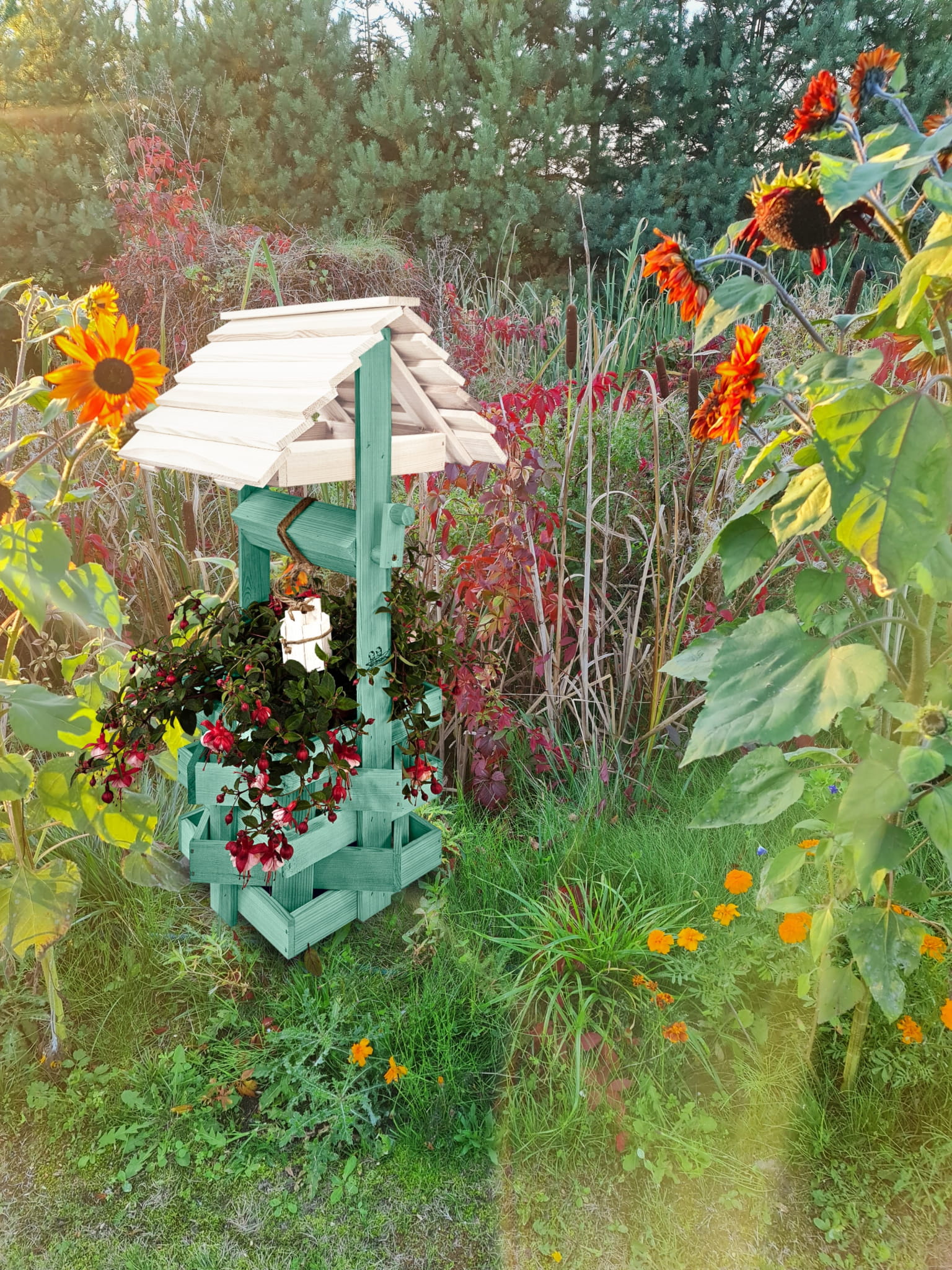 - Studnia została wzbogacona o drewnianą donicę, w której można dodatkowo storzyć miniogródek