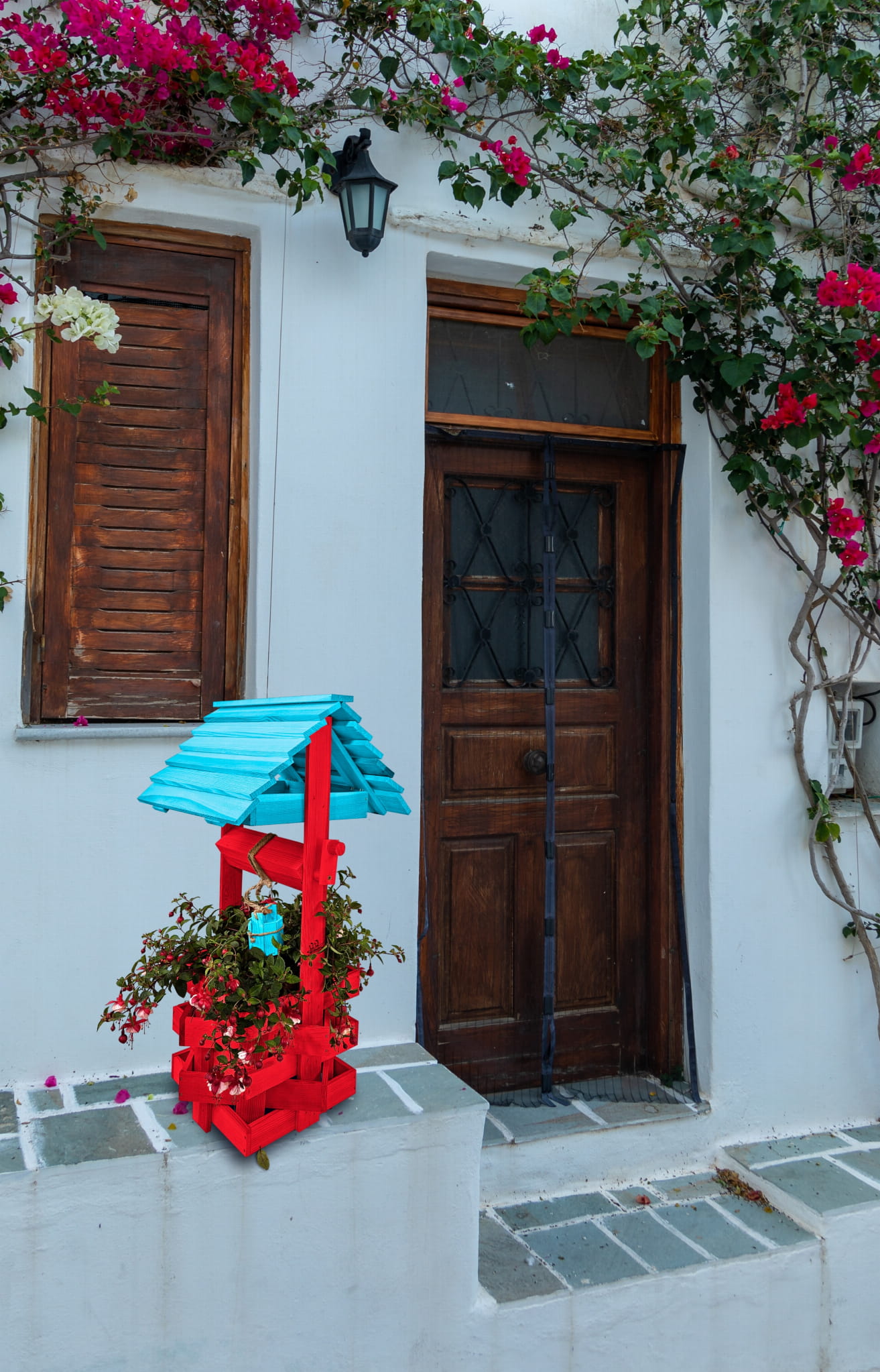 Nasza stylowa studnia wraz z donicą stanowi idealną bazę do stworzenia wyjątkowych kompozycji kwiatowych.
