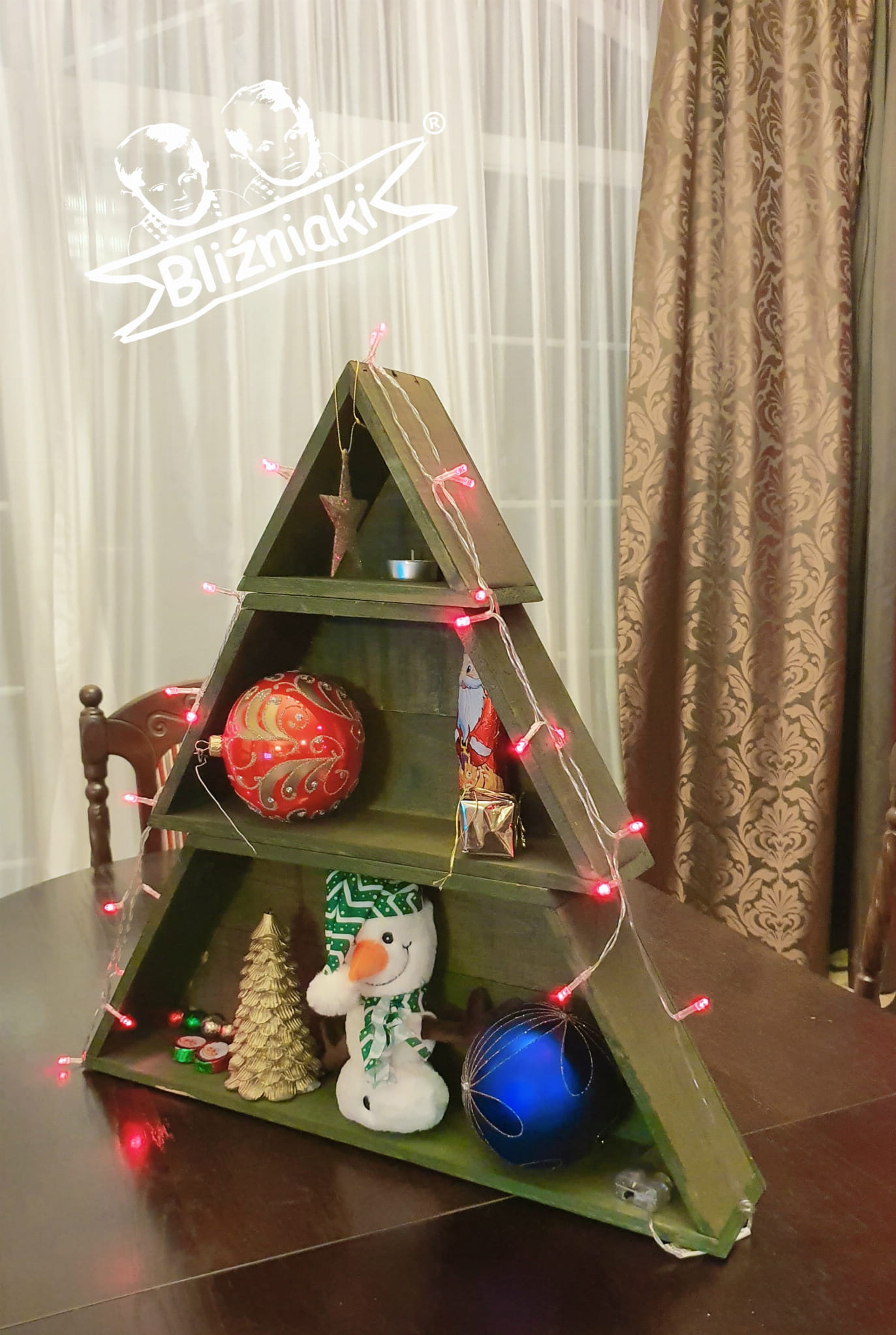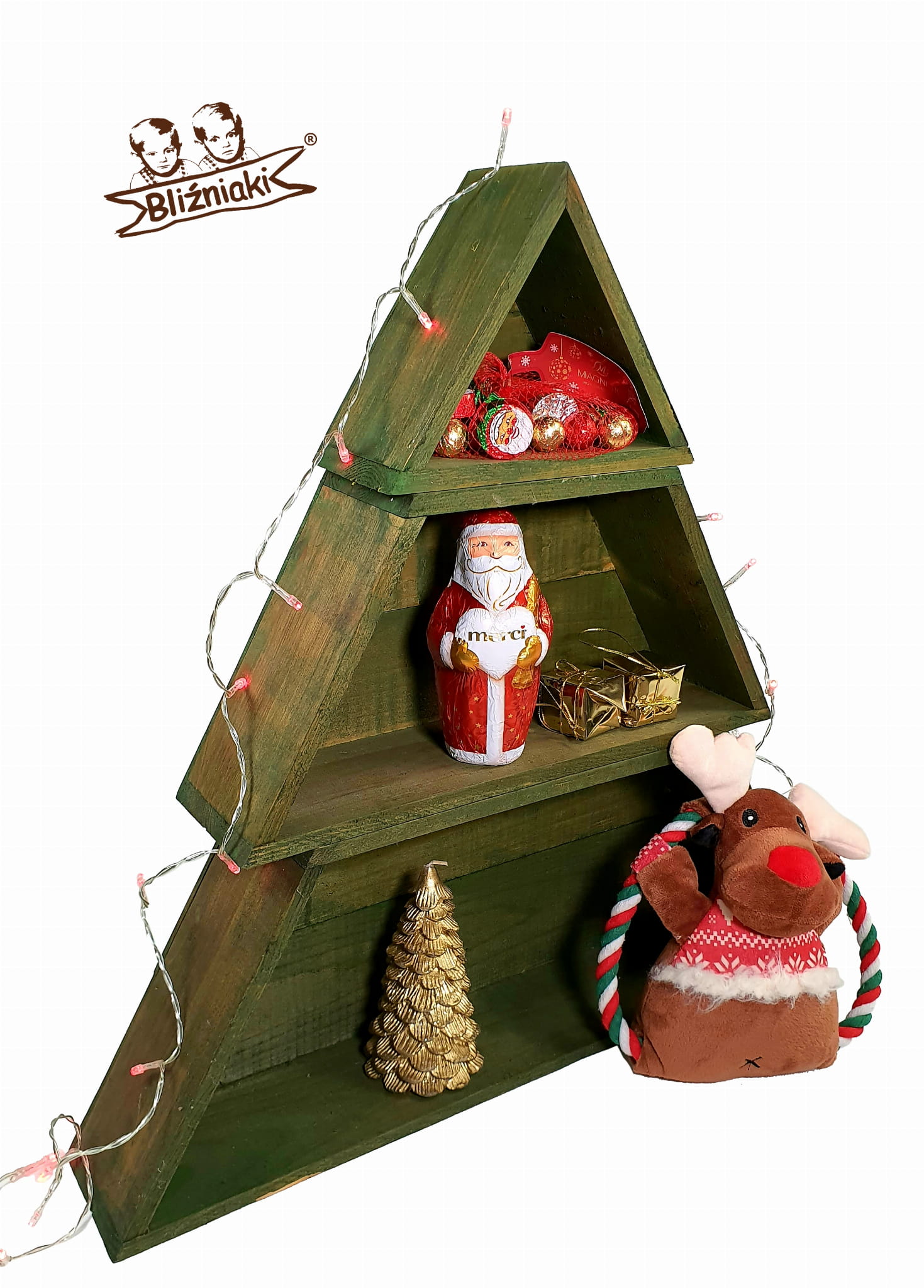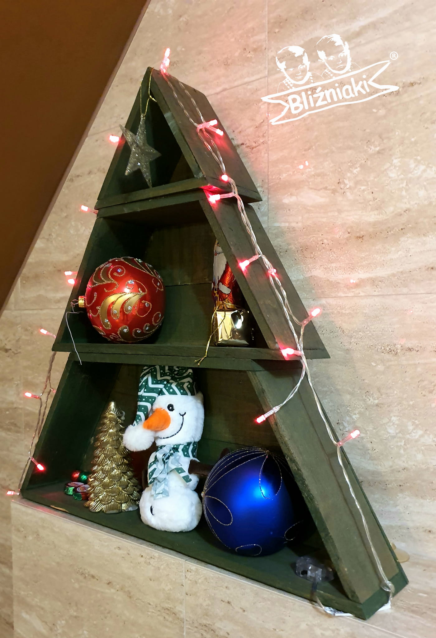 Drewniana Choinka 60cm Świąteczna Ozdoba Regał XXL Świąteczne dekoracje Ekologiczne ozdoby(WB4 K)