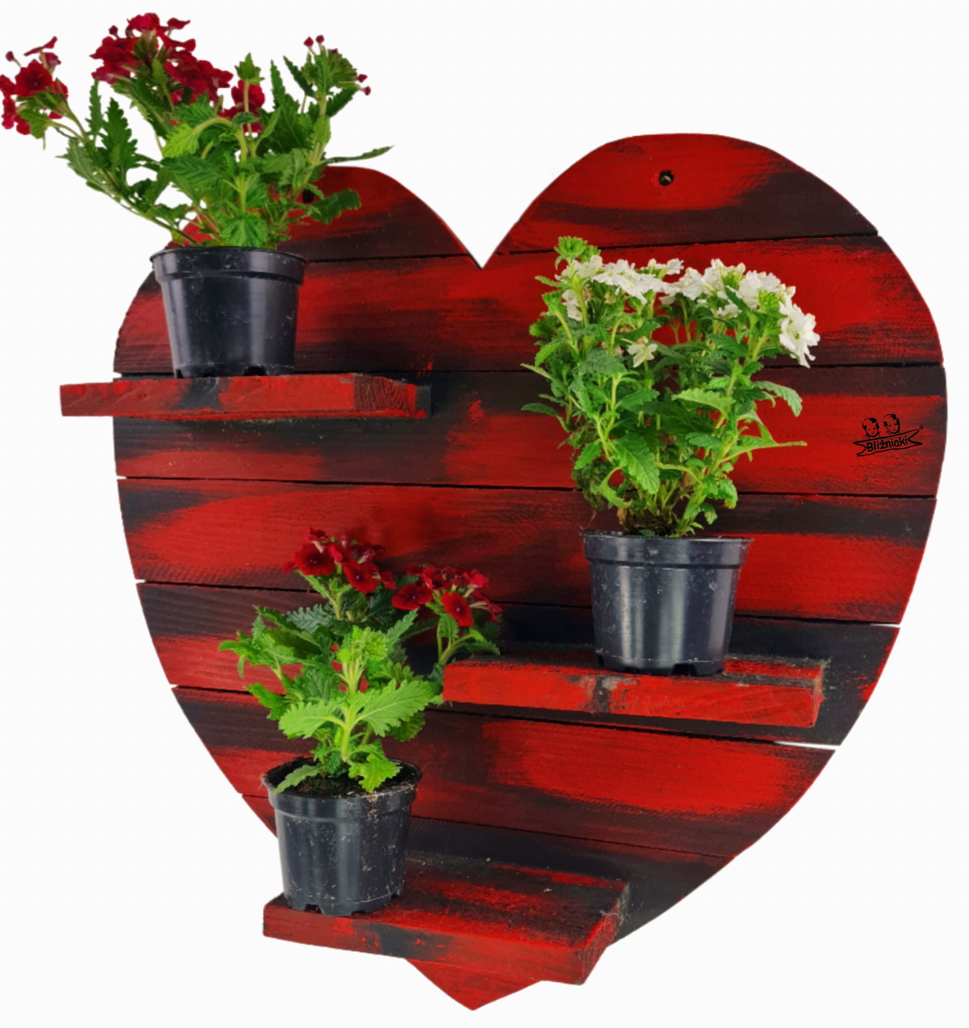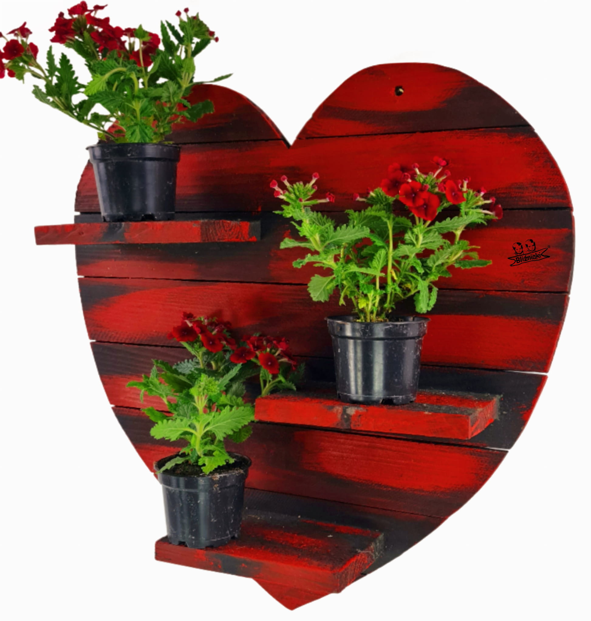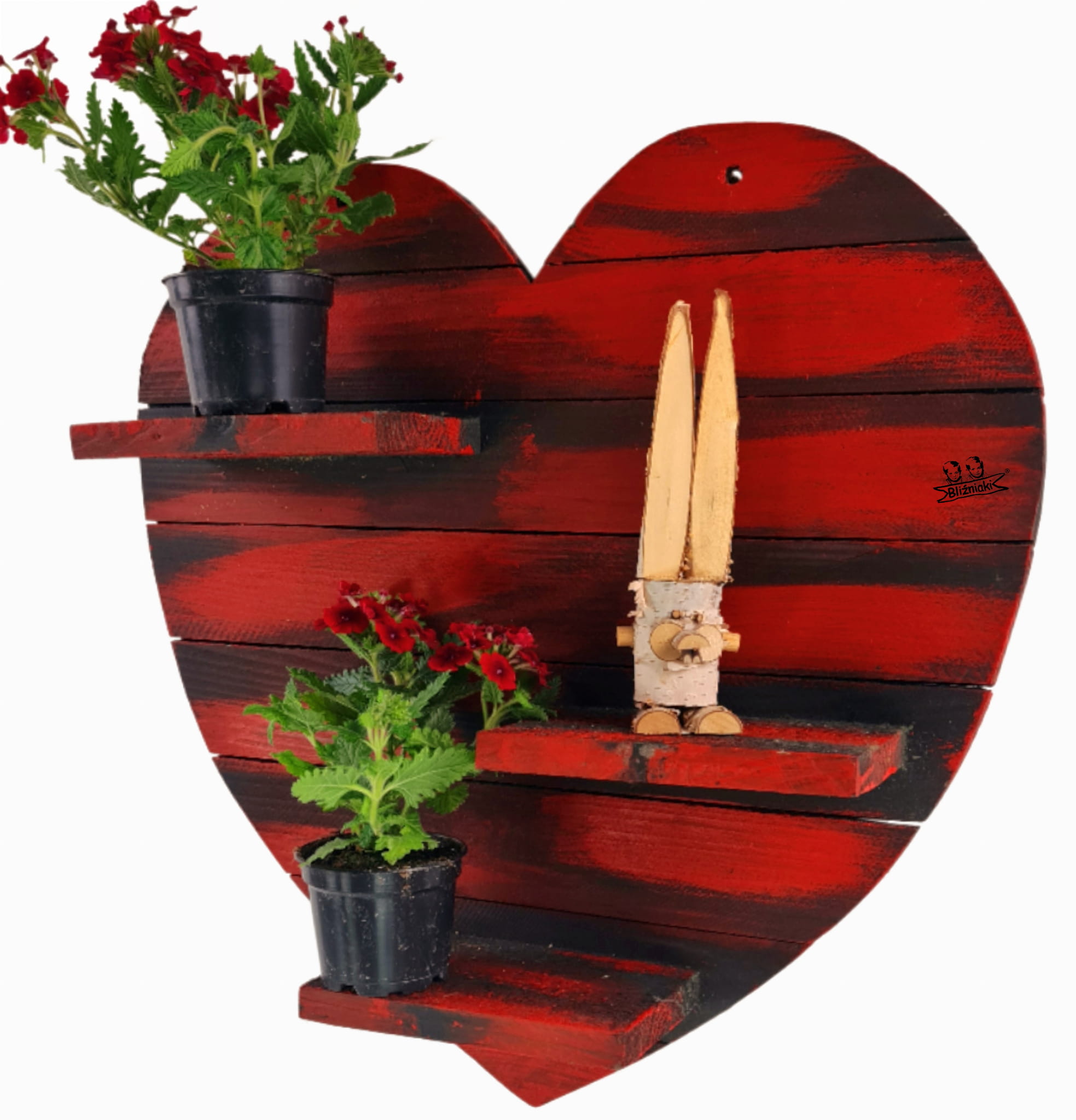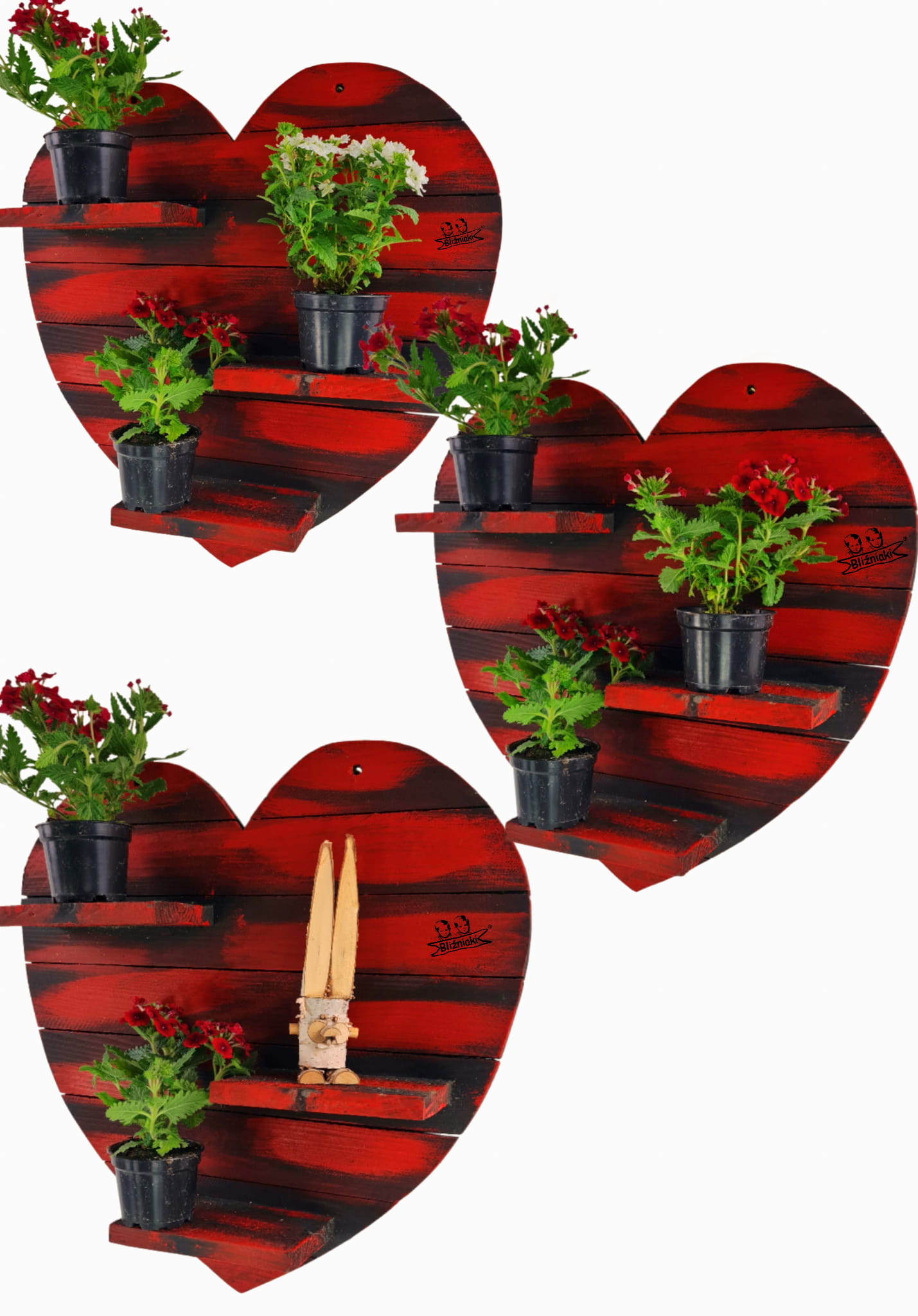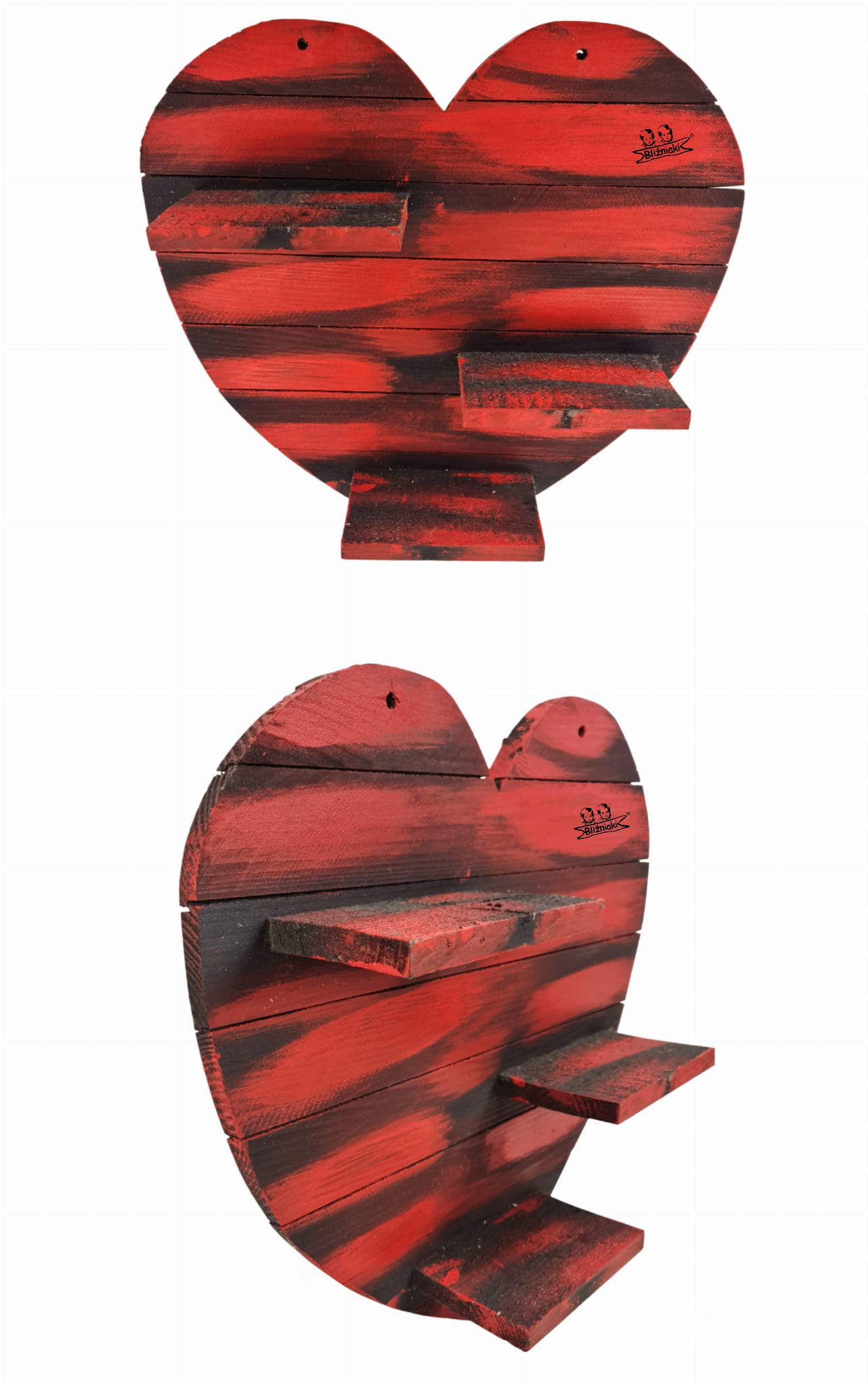 Drewniana Półka Dekoracyjne Serce Zawieszane Na Ścianę z Trzema małymi Półeczkami Dwukolorowa Czarno Czerwona (SERC1 CZ PT CB)