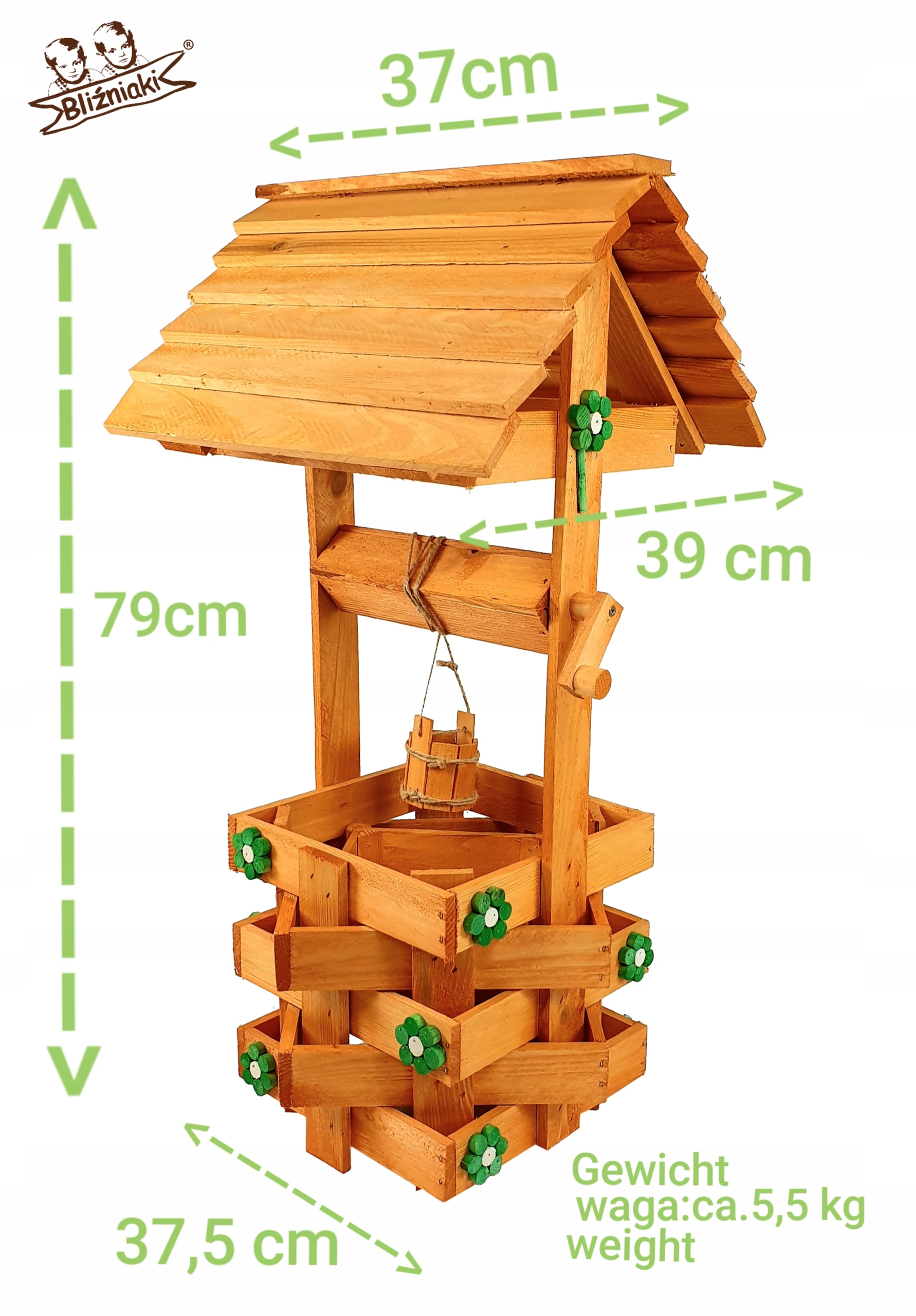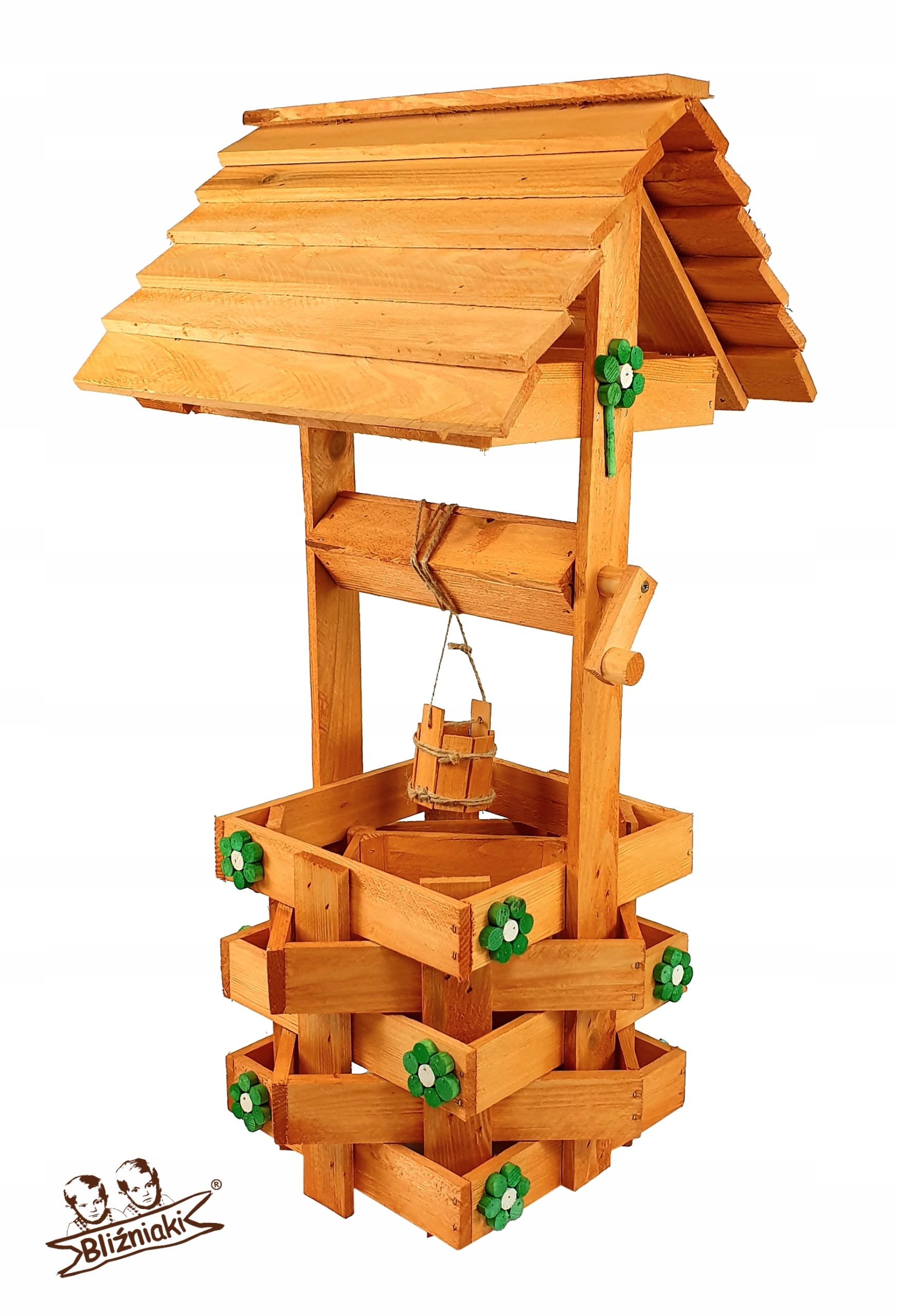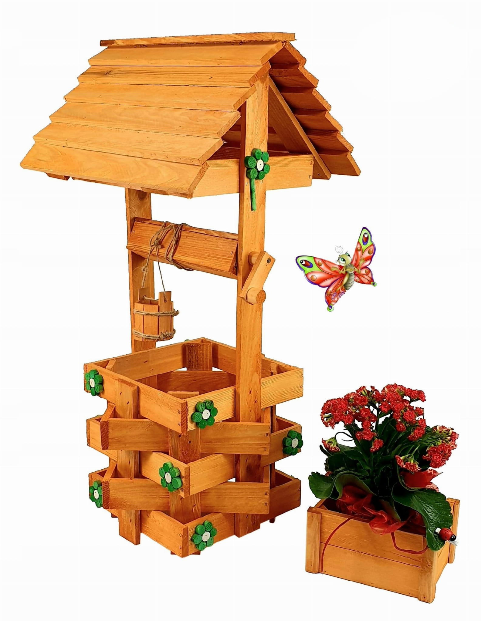 Nasza dekoracyjna studnia w kolorze OLCHOWYM wykonana z suszonego drewna sosnowego to nie tylko piękny element dekoracyjny, ale również wyraz ekologicznego podejścia do projektowania ogrodów.