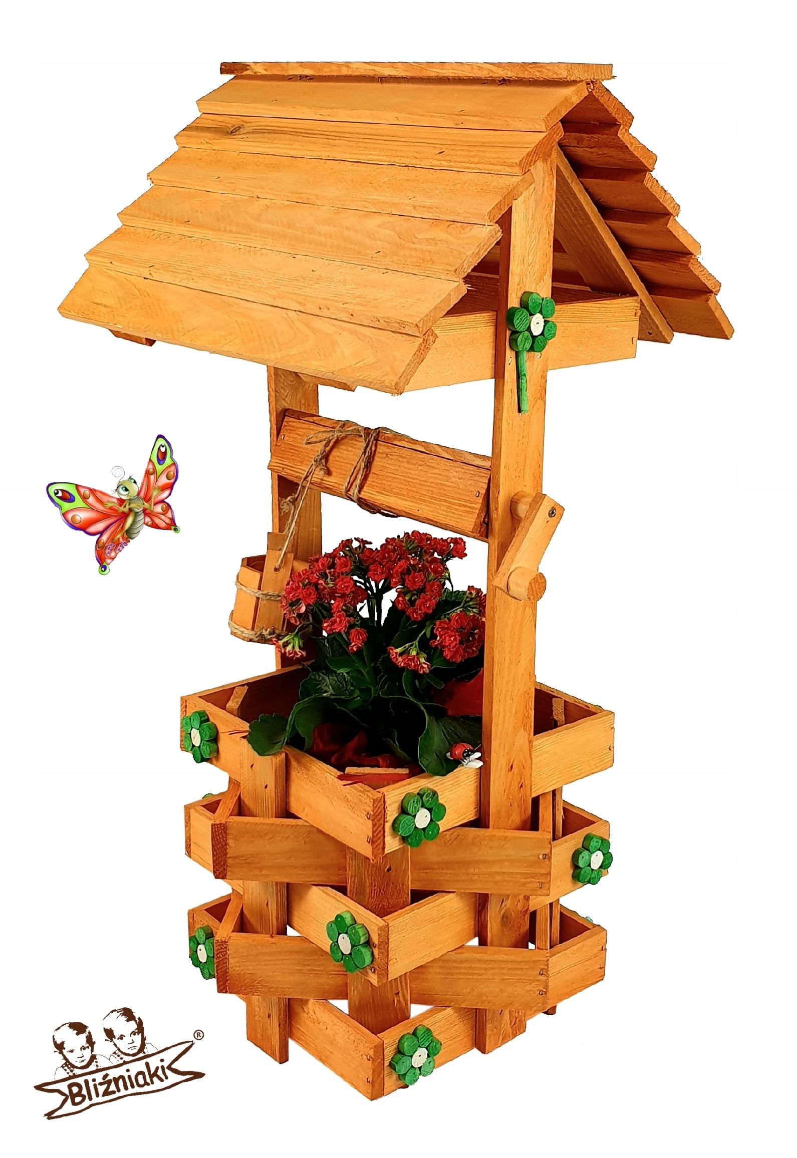 Drewniana Studnia Ozdoba Ogrodowa Kwietnik na Rośliny Stojak Studzienka do Ogrodu lub Domu (SC1 B O)