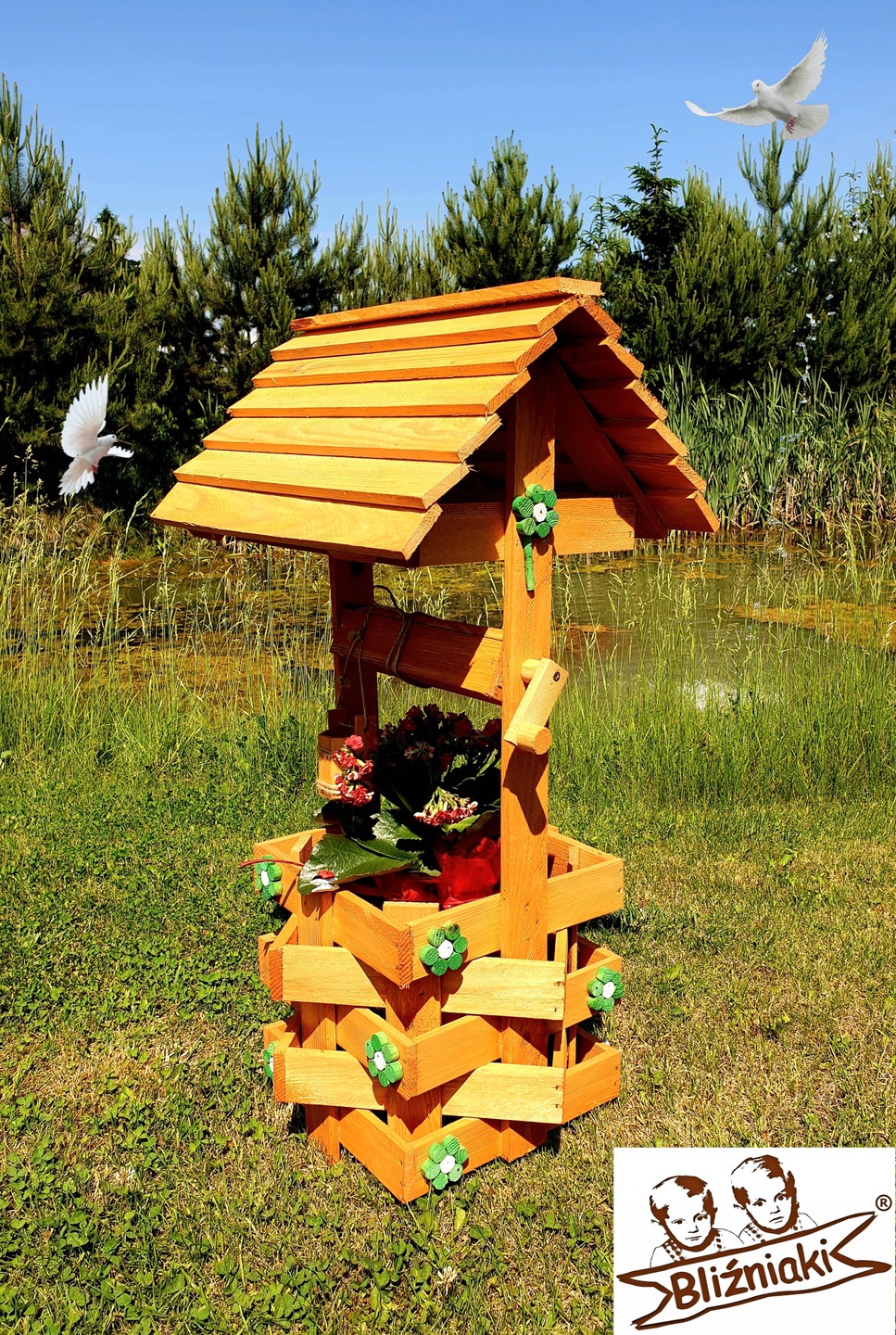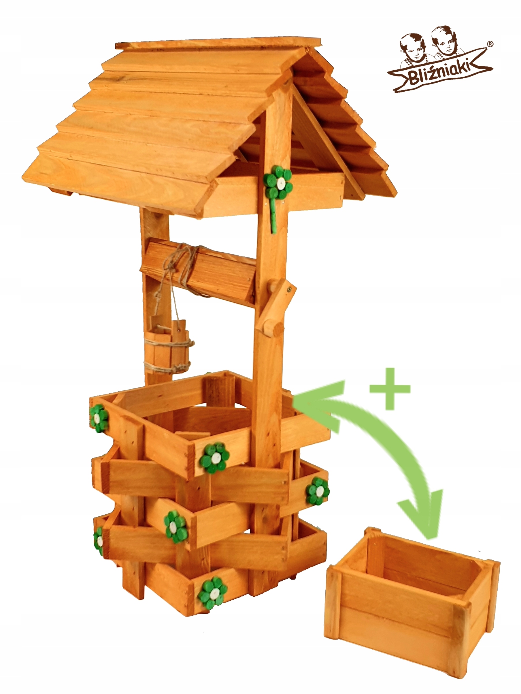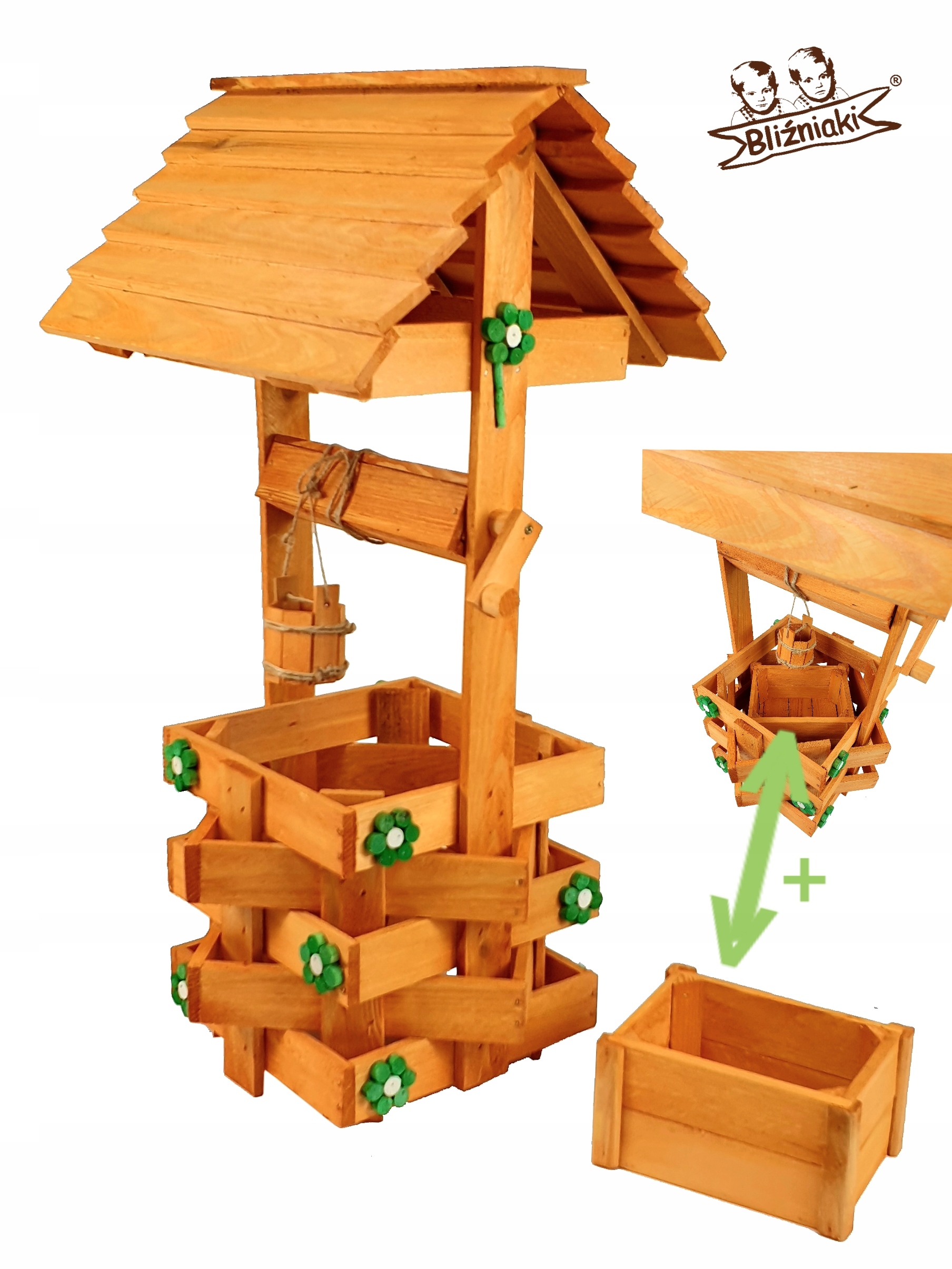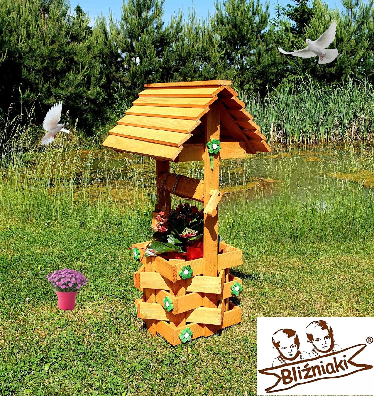 - Studnia została wzbogacona o drewnianą donicę, w której można dodatkowo storzyć miniogródek