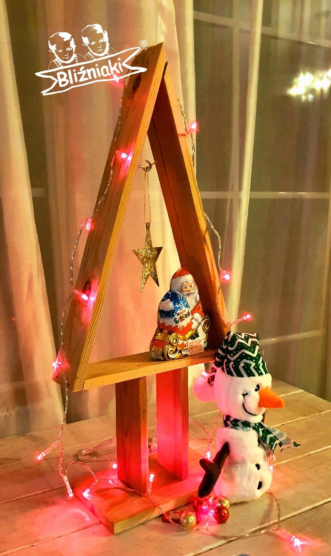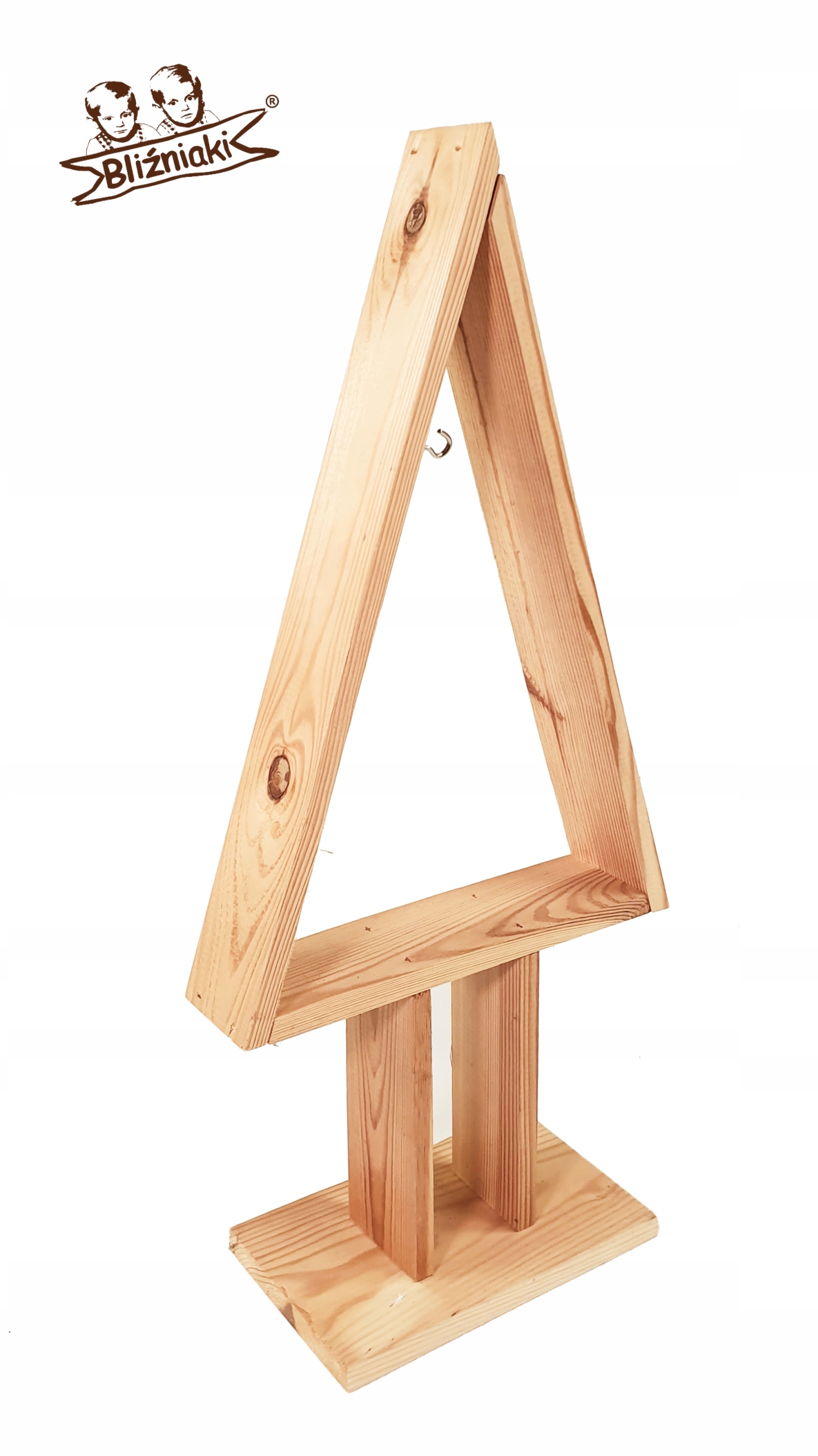 Choinka jest wykonana z drewna sosnowego. W kolorze naturalnym. Nie użyto do jej impregnacji żadnych szkodliwych substancji.