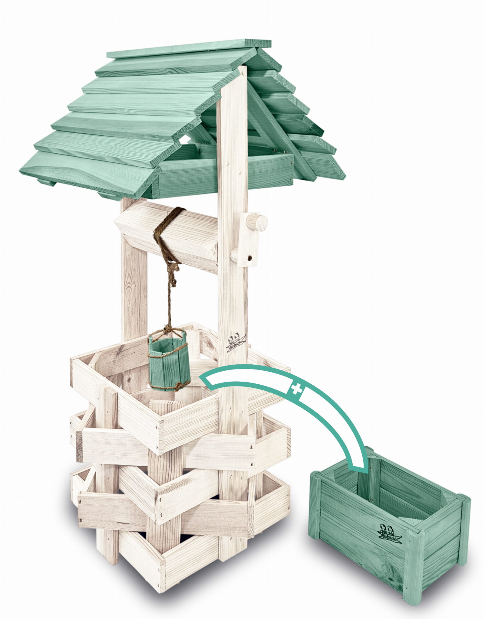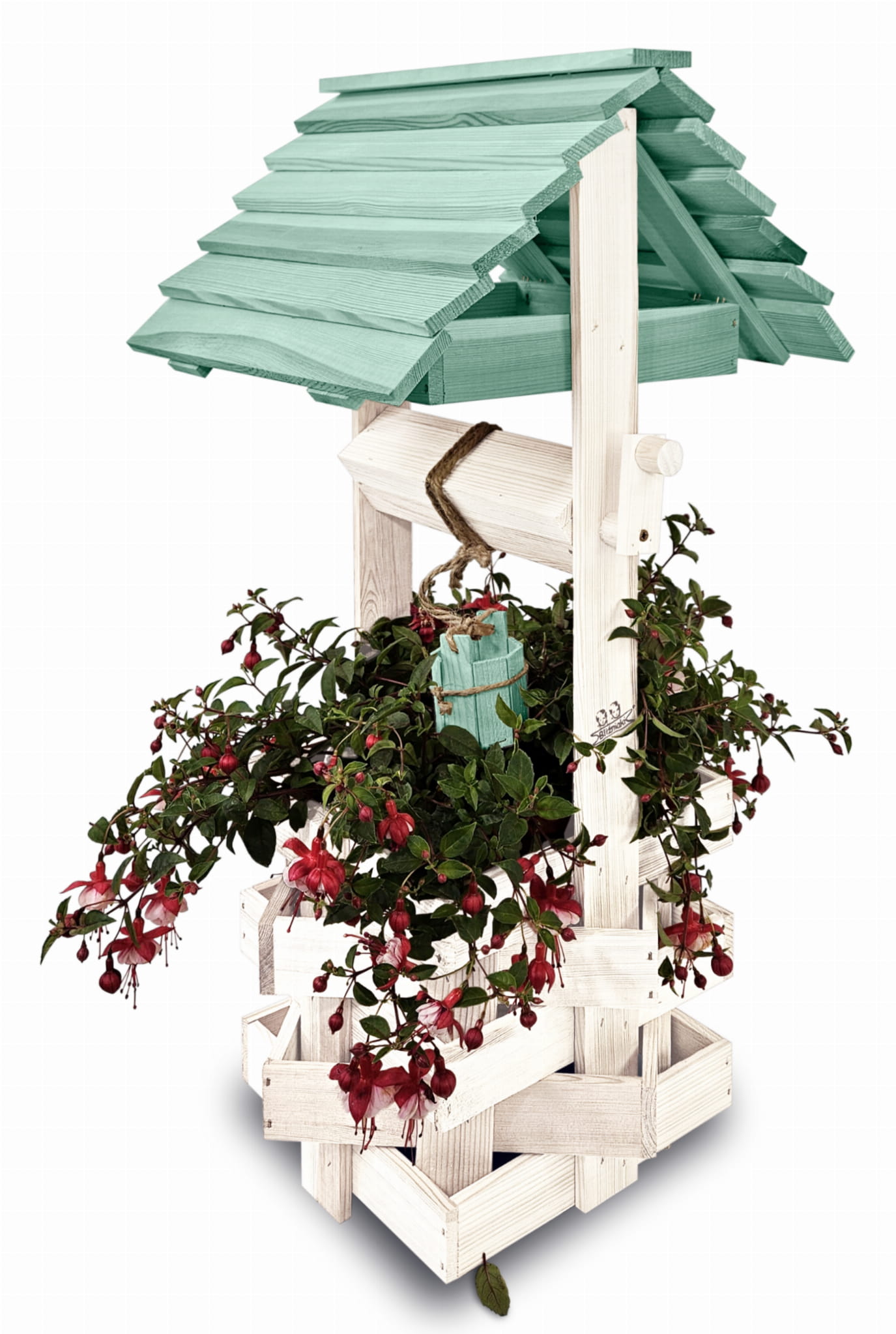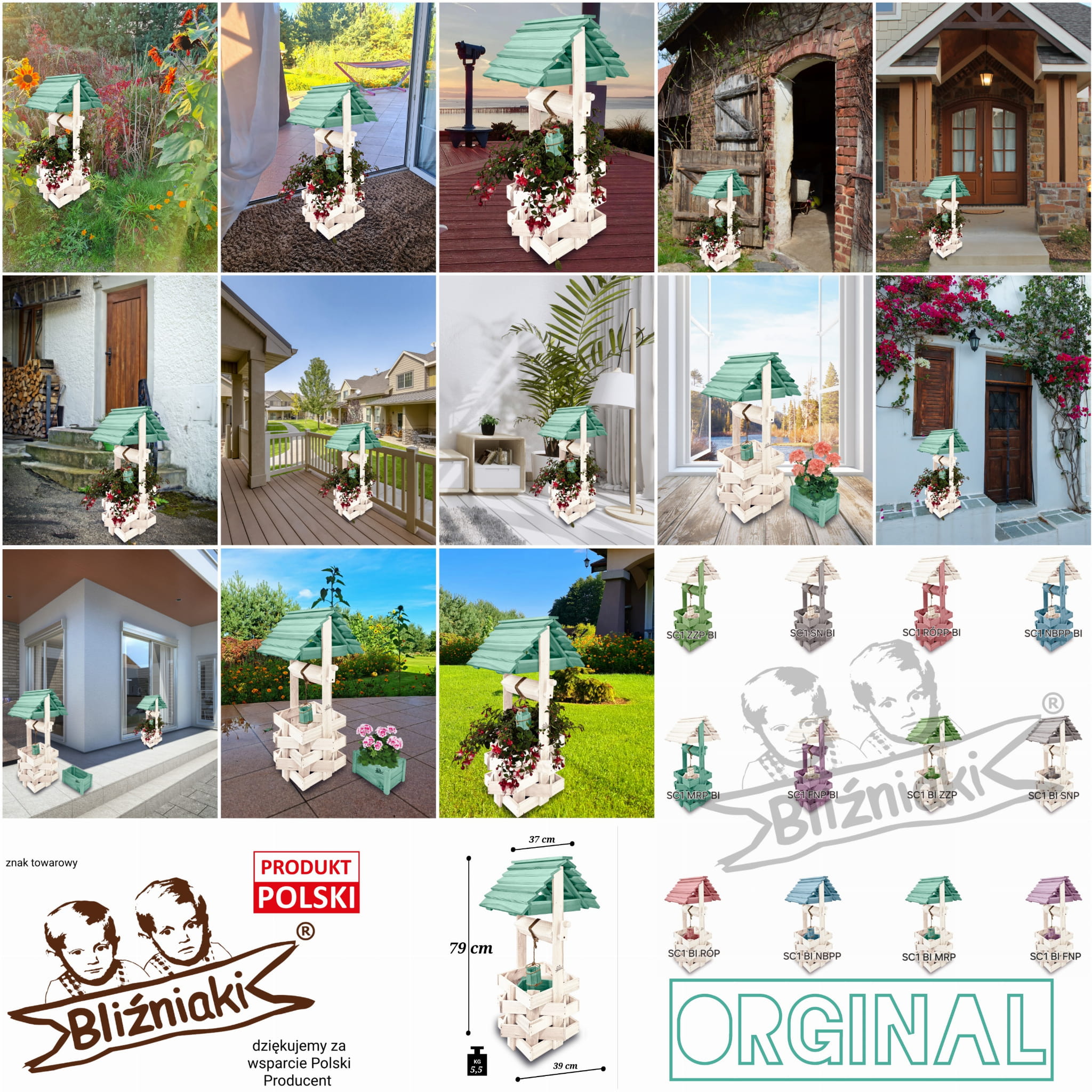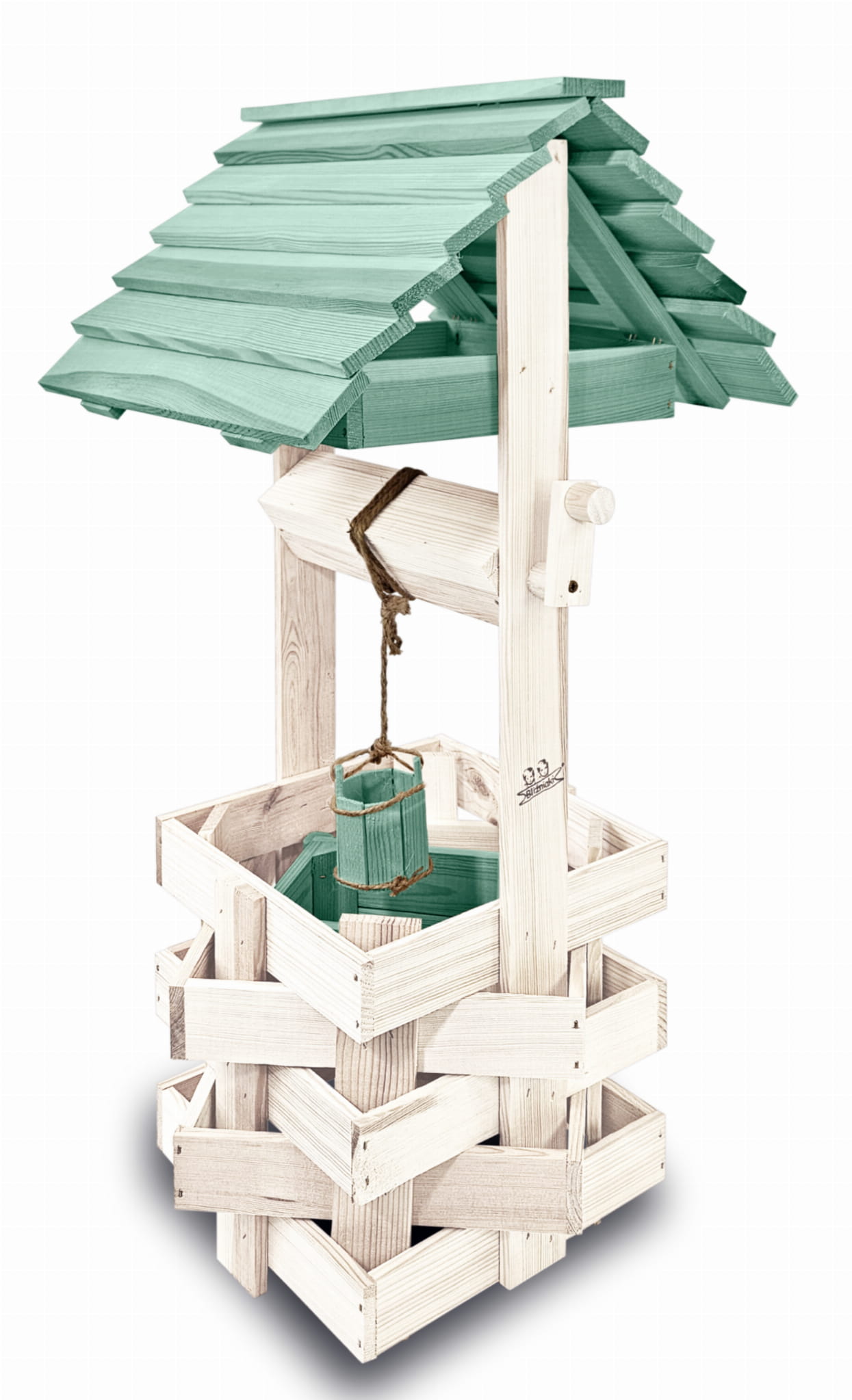 Drewniana studnia Kwietnik Kolor PASTELOWY MORSKA ZIELEŃ Donica na kwiaty do domu i ogrodu Ozdobne studzienki Prezent Studnia ogrodowa ozdobna Doniczki na rośliny Studnie balkonowe tarasowe Studzienka na pelargonie Ozdoba wnętrz i ogrodu SC1 BI MRP