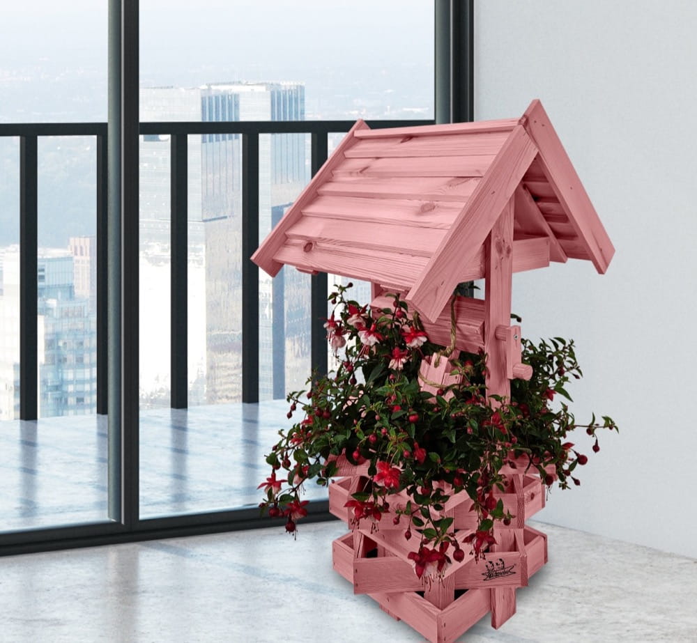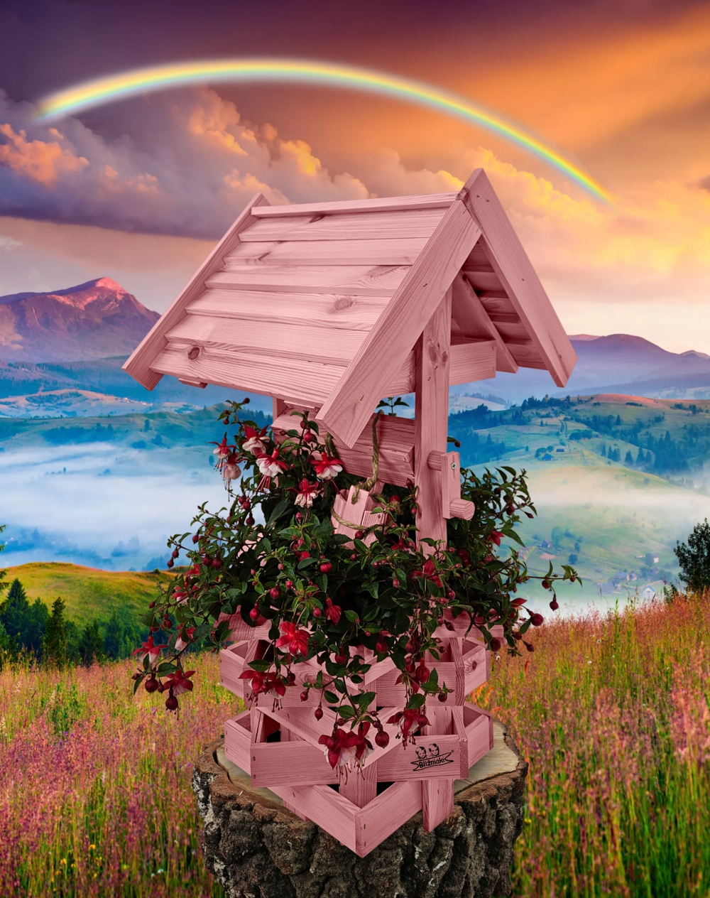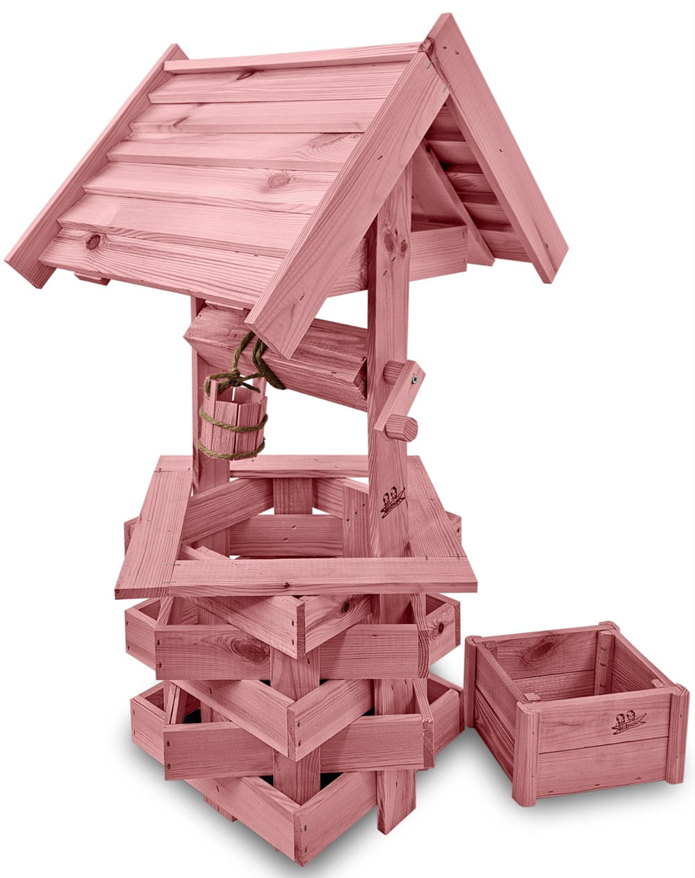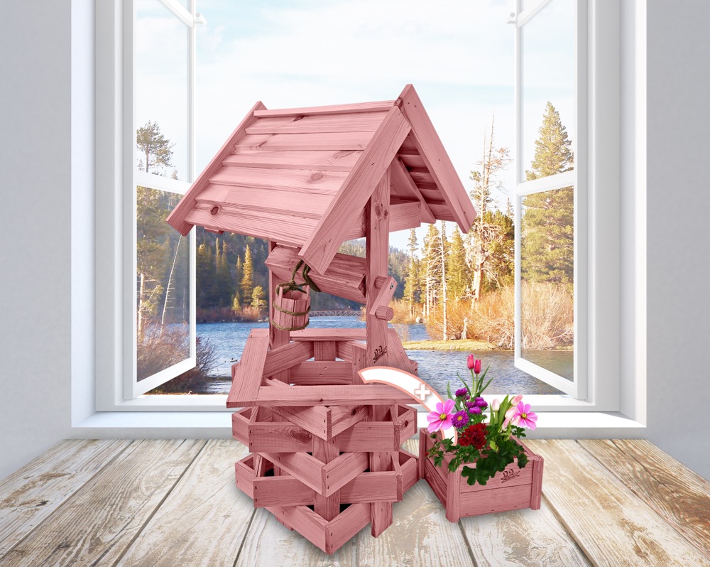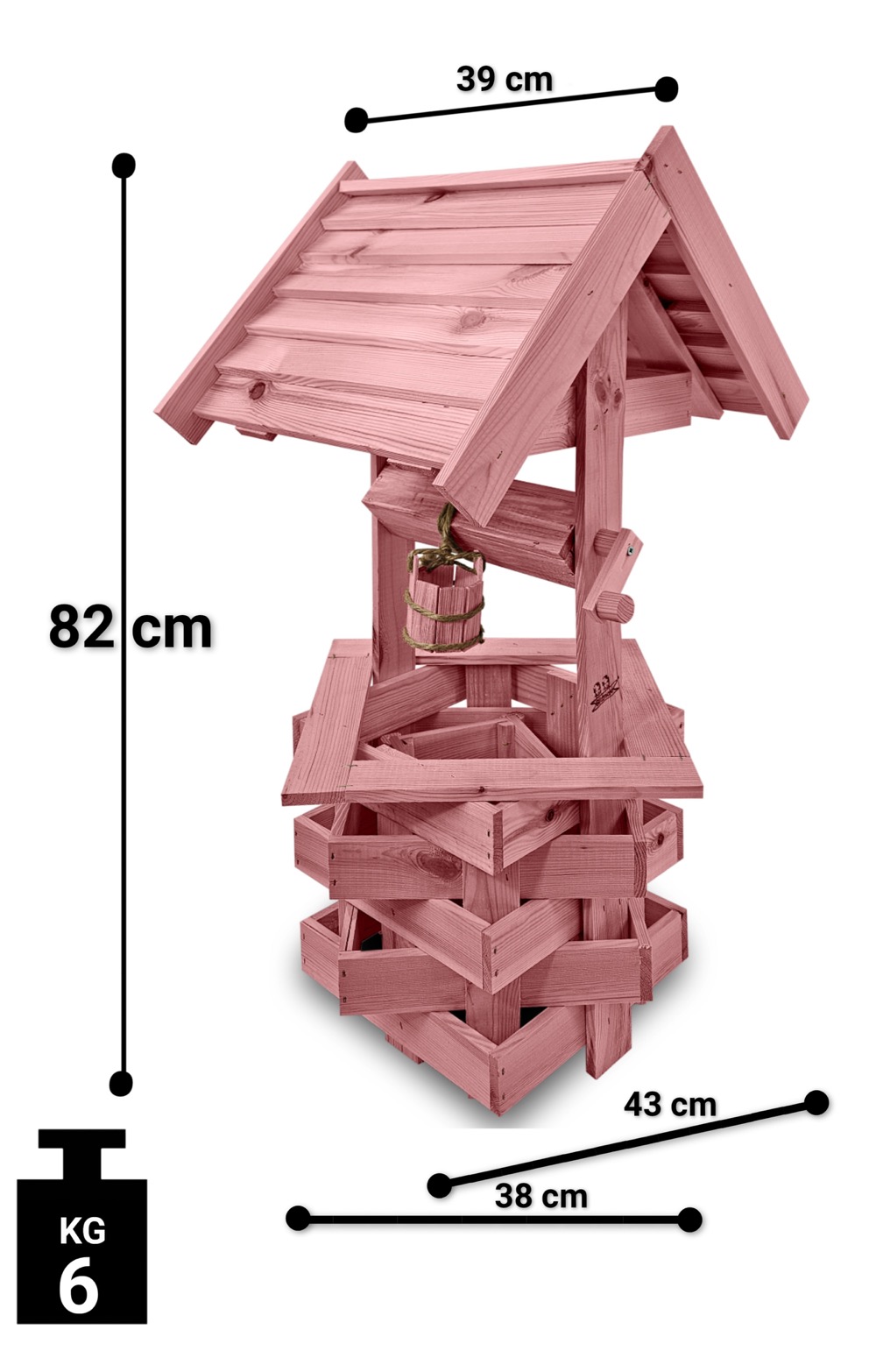 Nasza dekoracyjna studnia w kolorze jasnoróżowym wykonana z suszonego drewna sosnowego to nie tylko piękny element dekoracyjny, ale również wyraz ekologicznego podejścia do projektowania ogrodów.