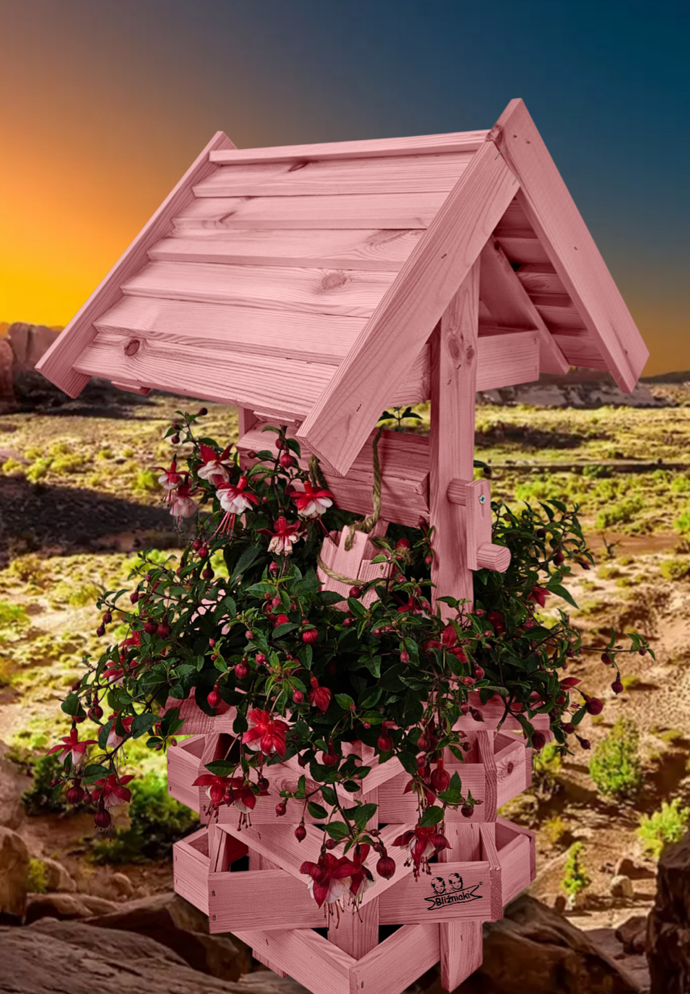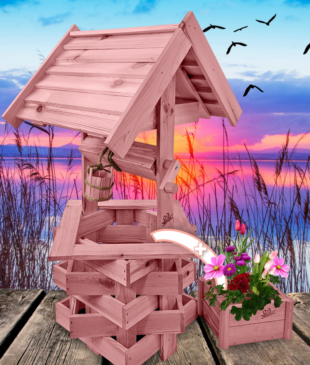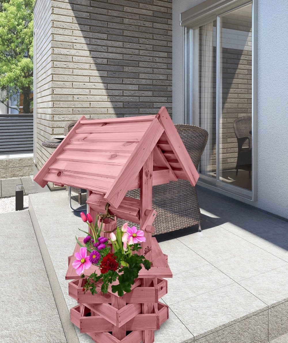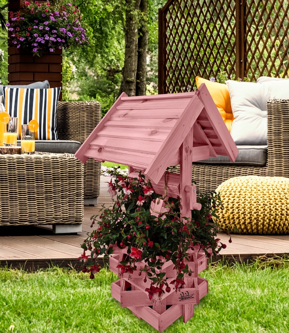 Nasza dekoracyjna studnia w kolorze jasnoróżowym wykonana z suszonego drewna sosnowego to nie tylko piękny element dekoracyjny, ale również wyraz ekologicznego podejścia do projektowania ogrodów.