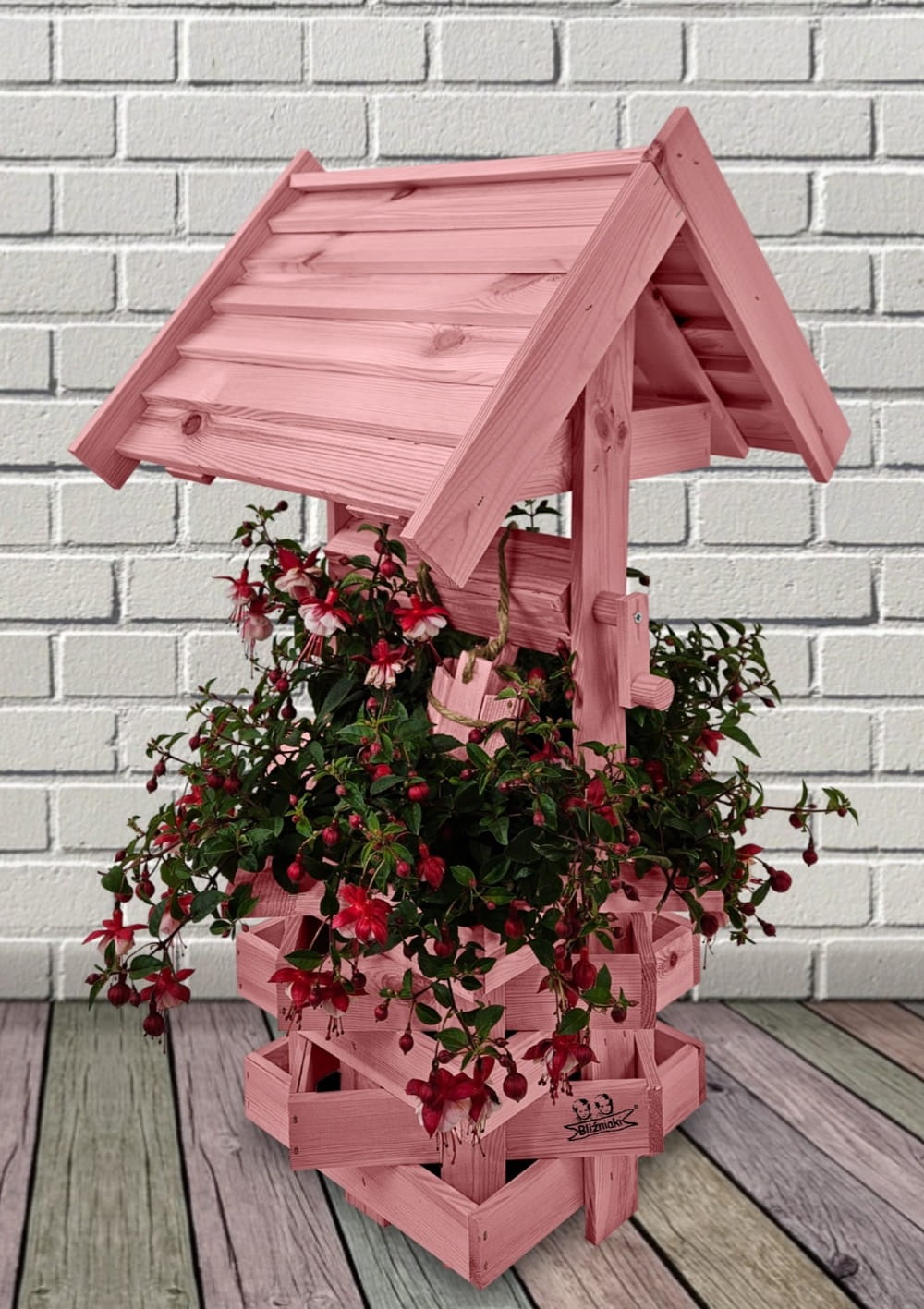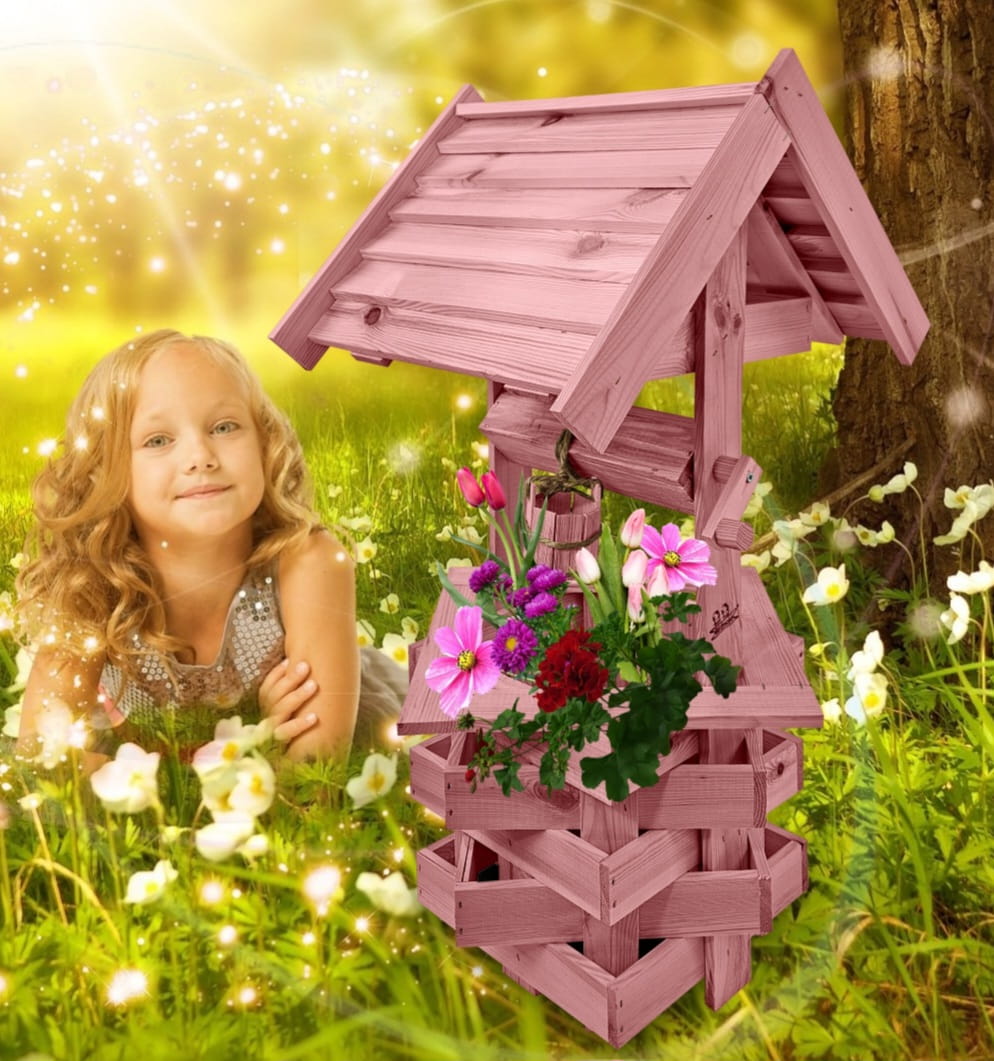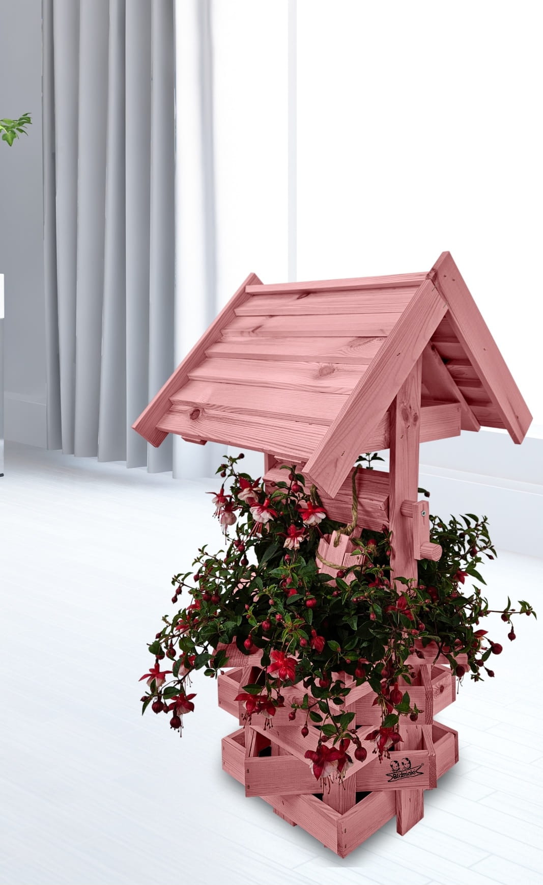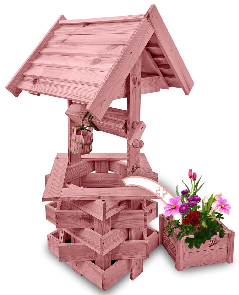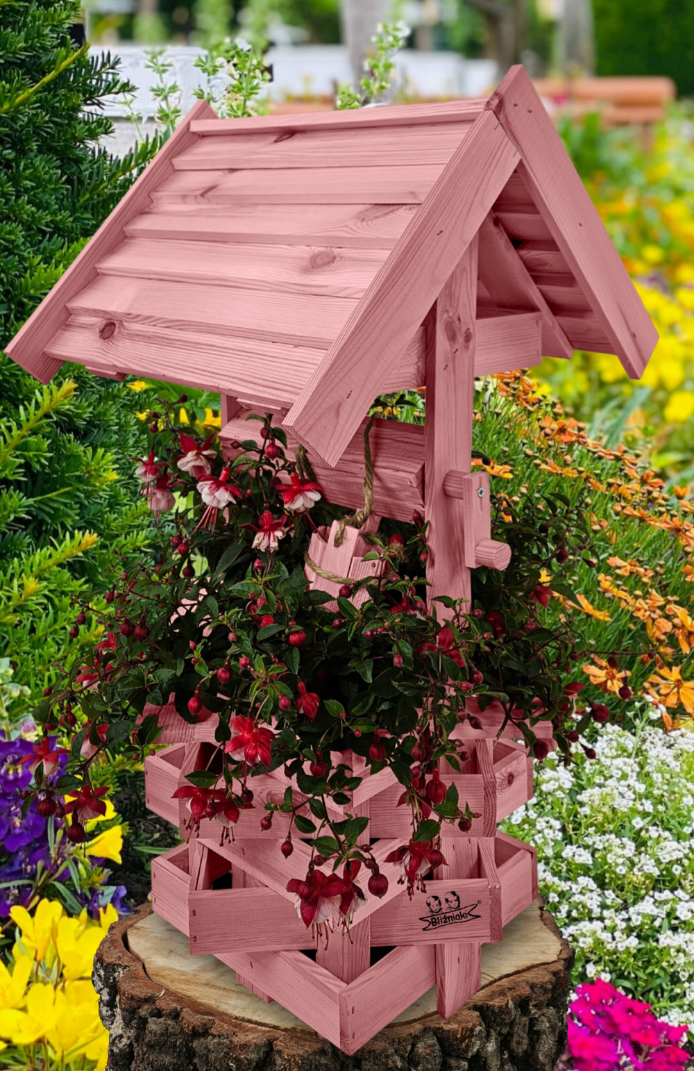 Nasza dekoracyjna studnia w kolorze jasnoróżowym wykonana z suszonego drewna sosnowego to nie tylko piękny element dekoracyjny, ale również wyraz ekologicznego podejścia do projektowania ogrodów.