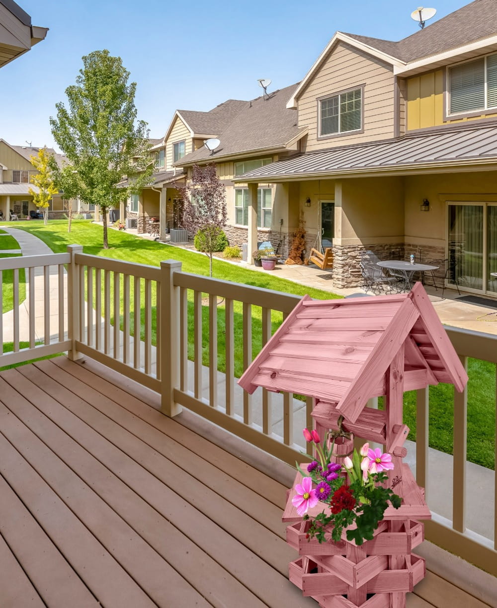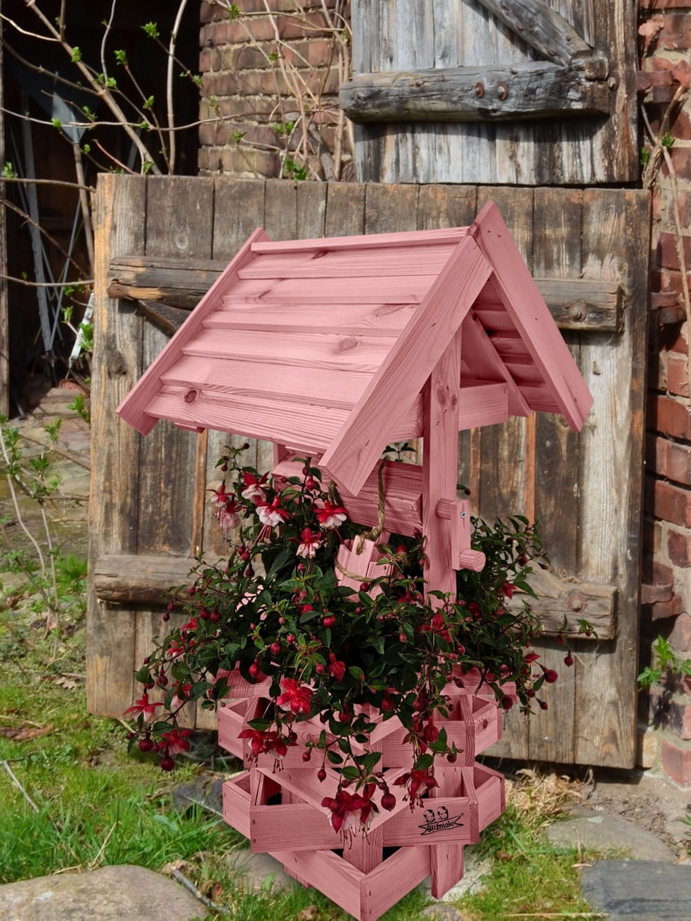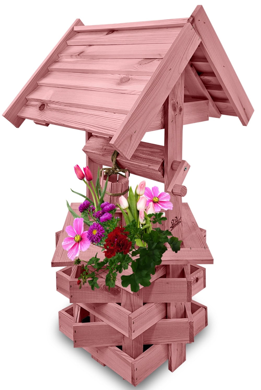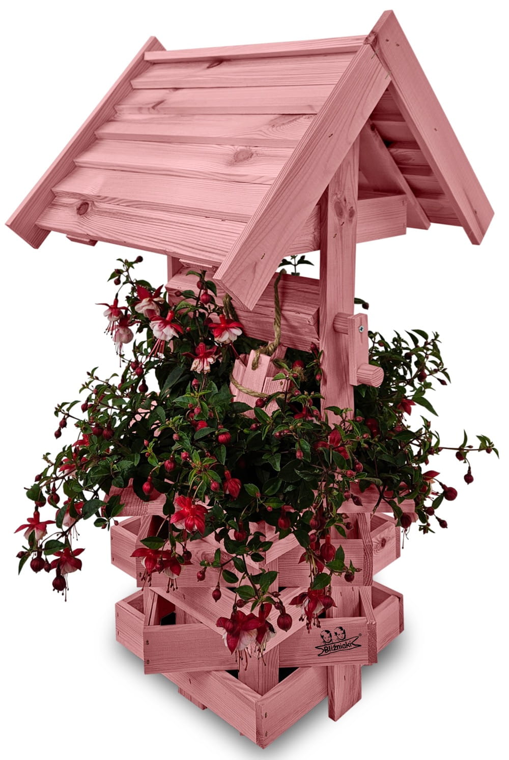 Nasza dekoracyjna studnia w kolorze jasnoróżowym wykonana z suszonego drewna sosnowego to nie tylko piękny element dekoracyjny, ale również wyraz ekologicznego podejścia do projektowania ogrodów.