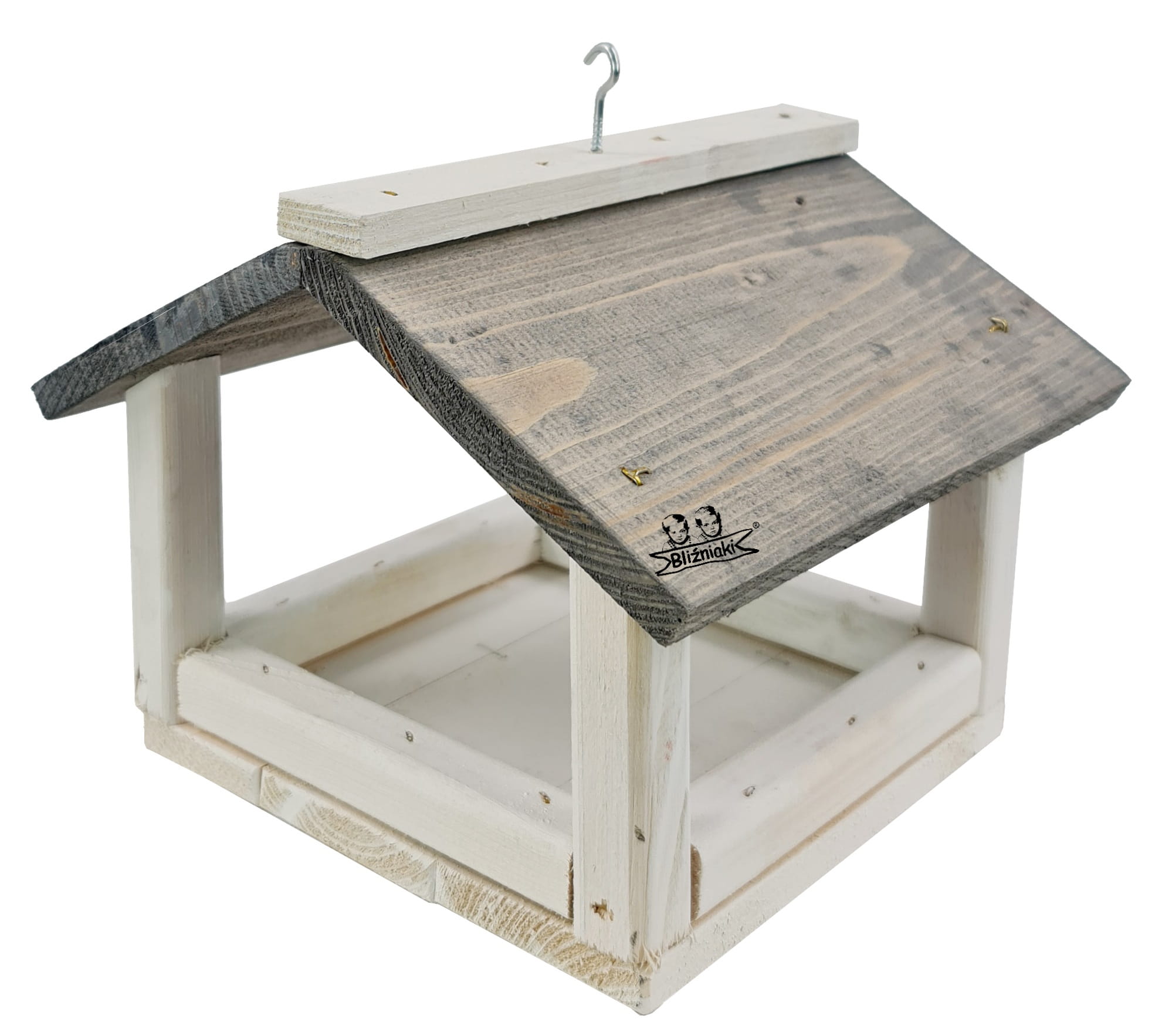 Drewniany Ekologiczny Karmnik Dla Ptaków Zawieszana Budka z Karmą Karmnik Dwukolorowy Impregnowany (K135 BI SN)