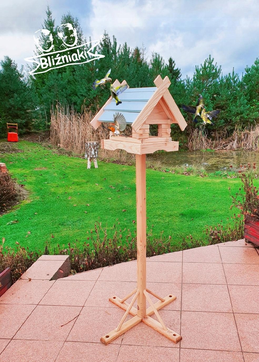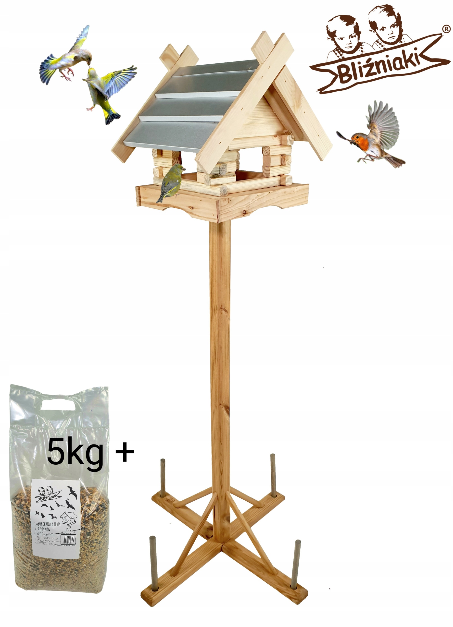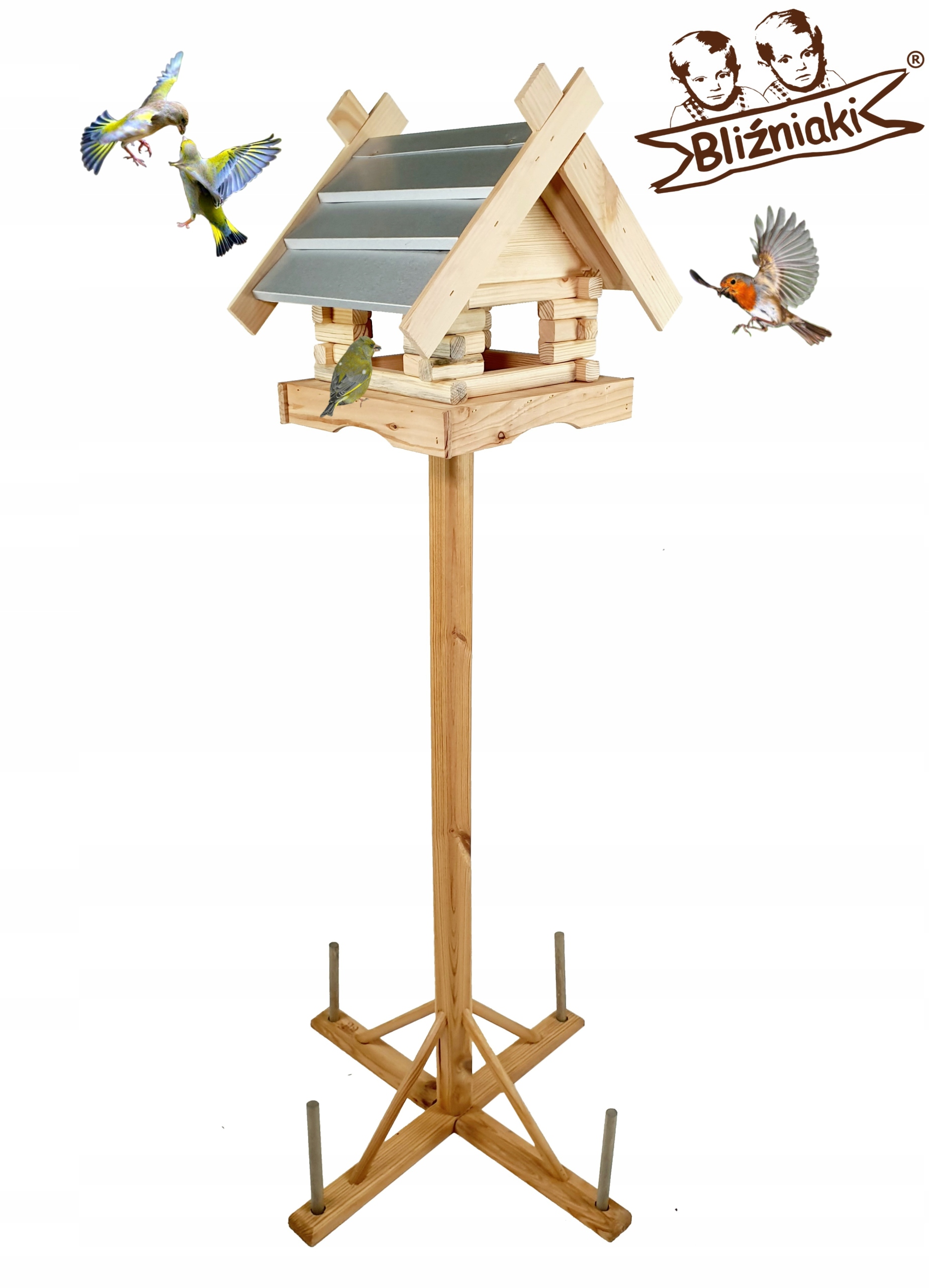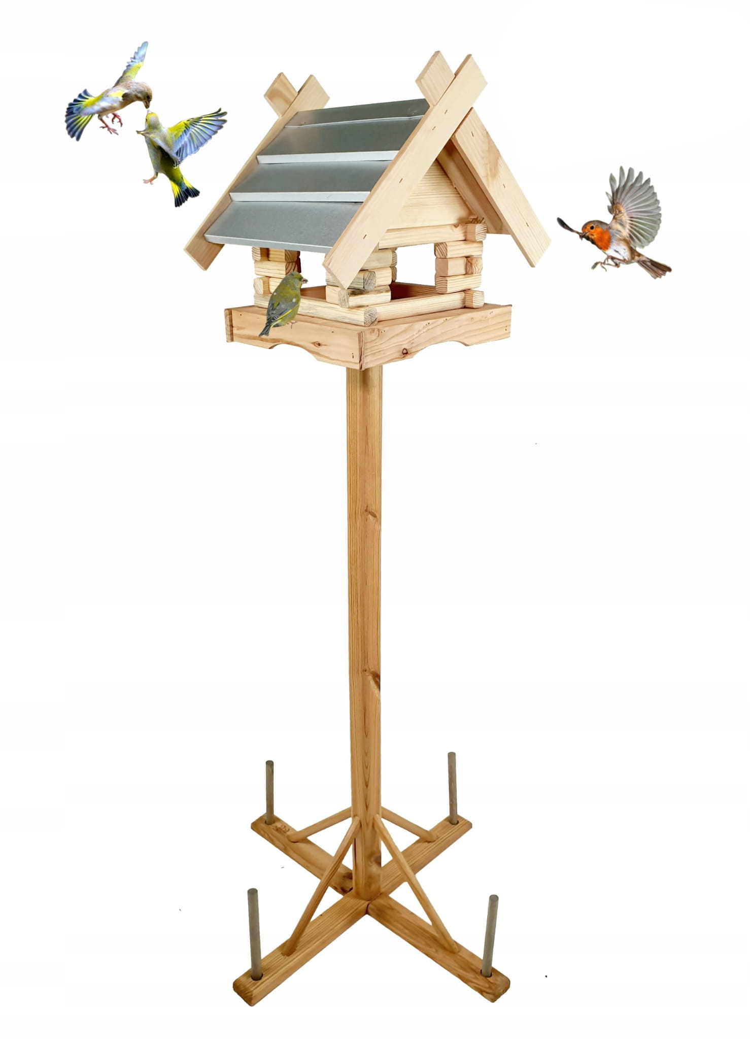 Drewniany Karmnik Dla Ptaków Budka Domek+ Stojak (K206N + STST N)