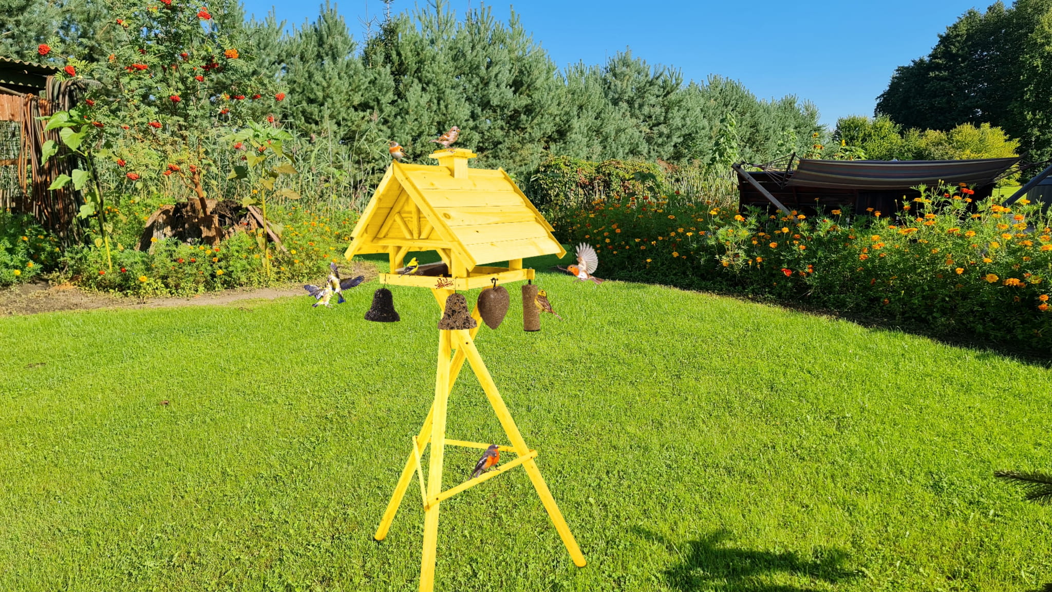 Projekt karmnika jest starannie przemyślany - stawia na praktyczność konstrukcji. Karmnik XXL wraz ze stojakiem stanowi idealne wyposażenie ogrodów, tarasów, balkonów.
