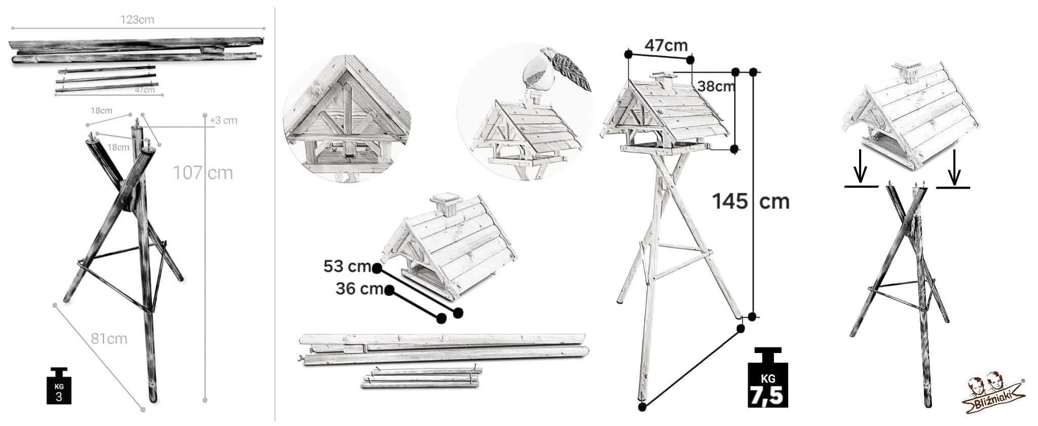 - Karmnik wykonany jest w całości z drewna, impregnowany ręcznie środkiem na bazie barwników roślinnych.