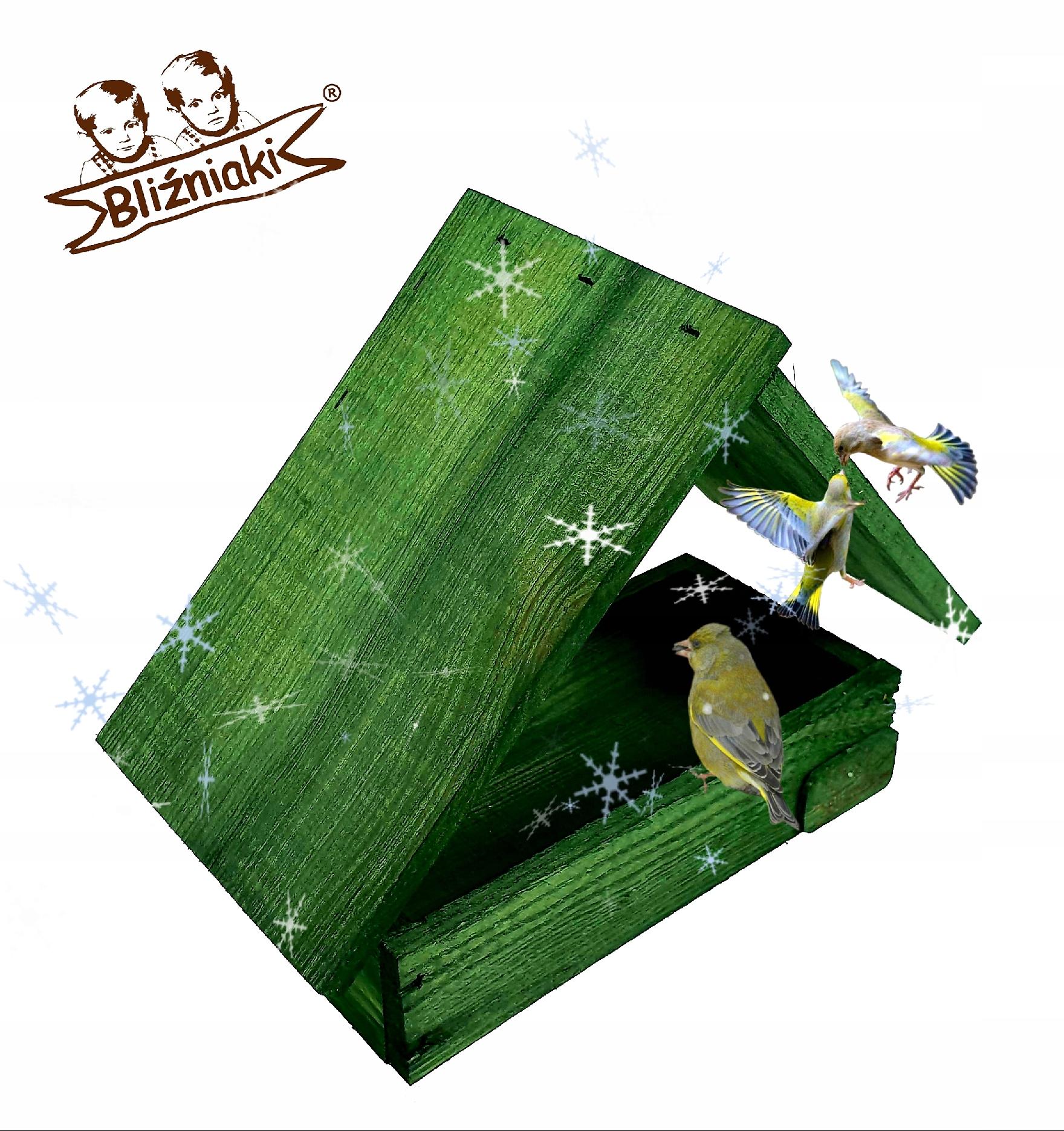 DREWNIANY KARMNIK ZE SKRZYNKĄ NA KARMĘ BUDKA DLA PTAKÓW