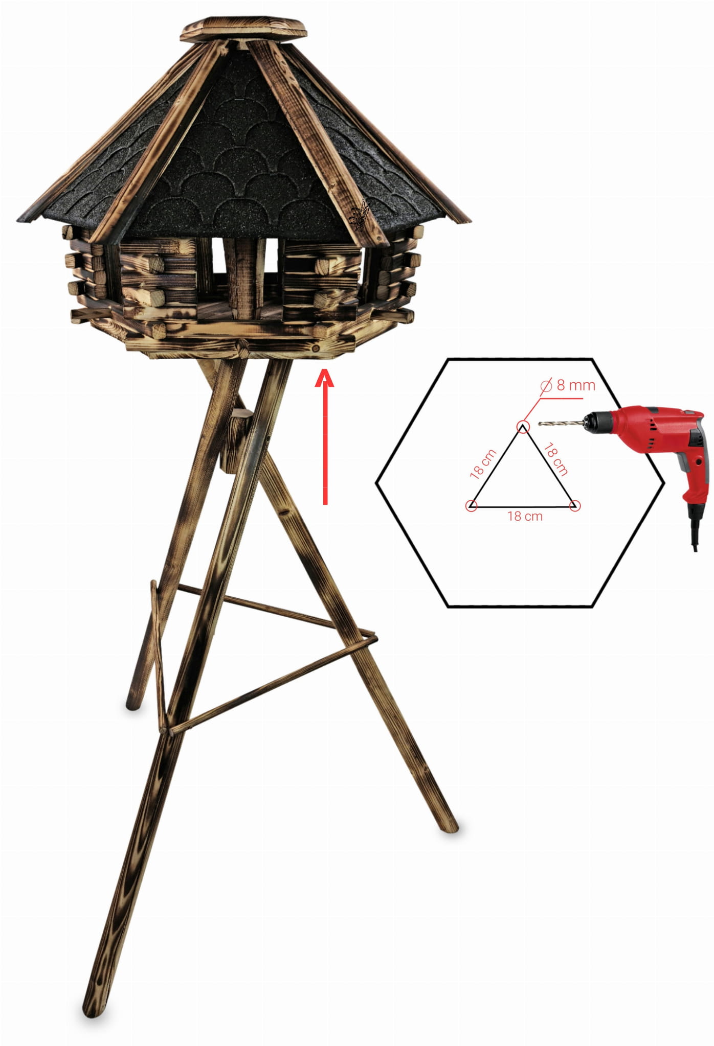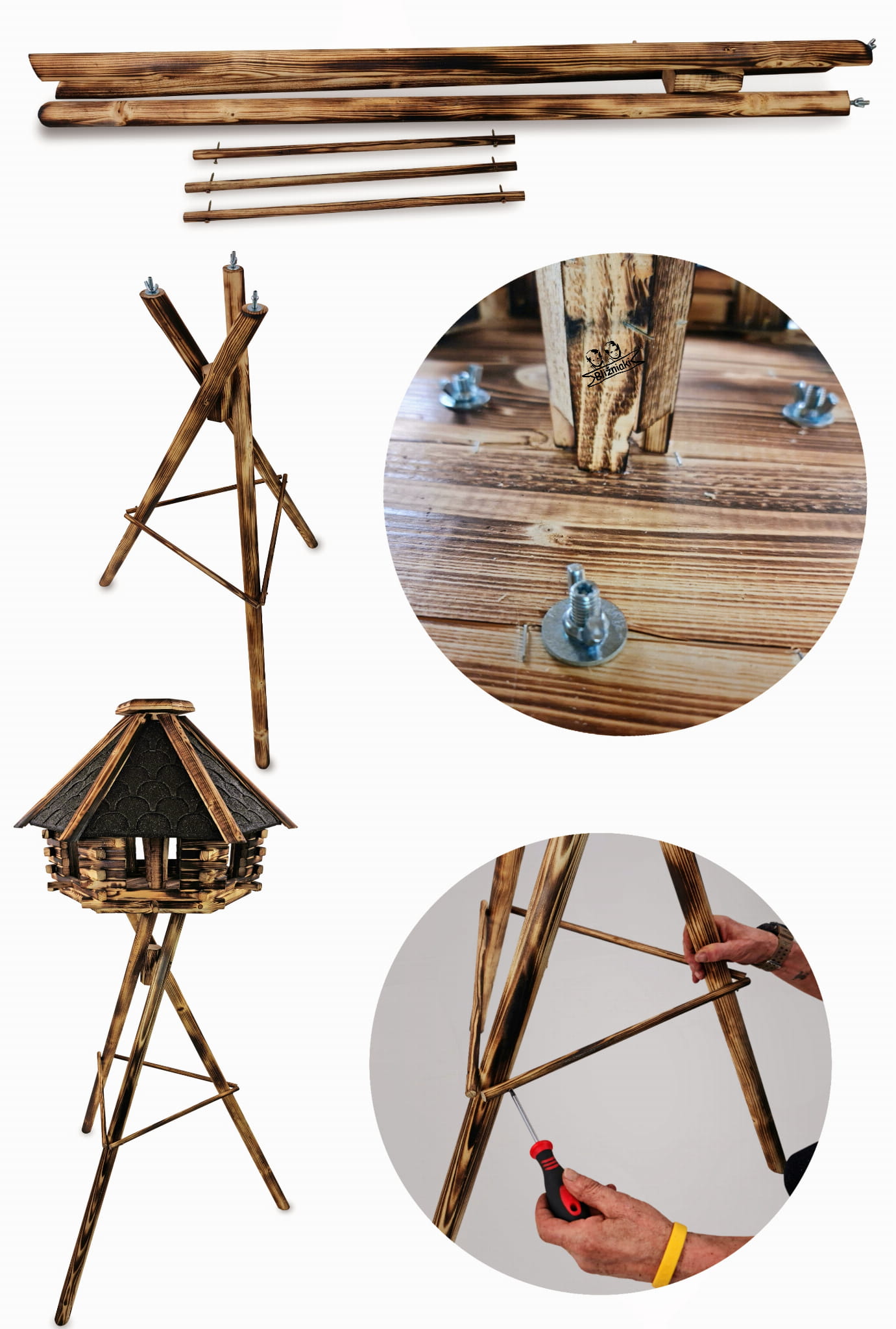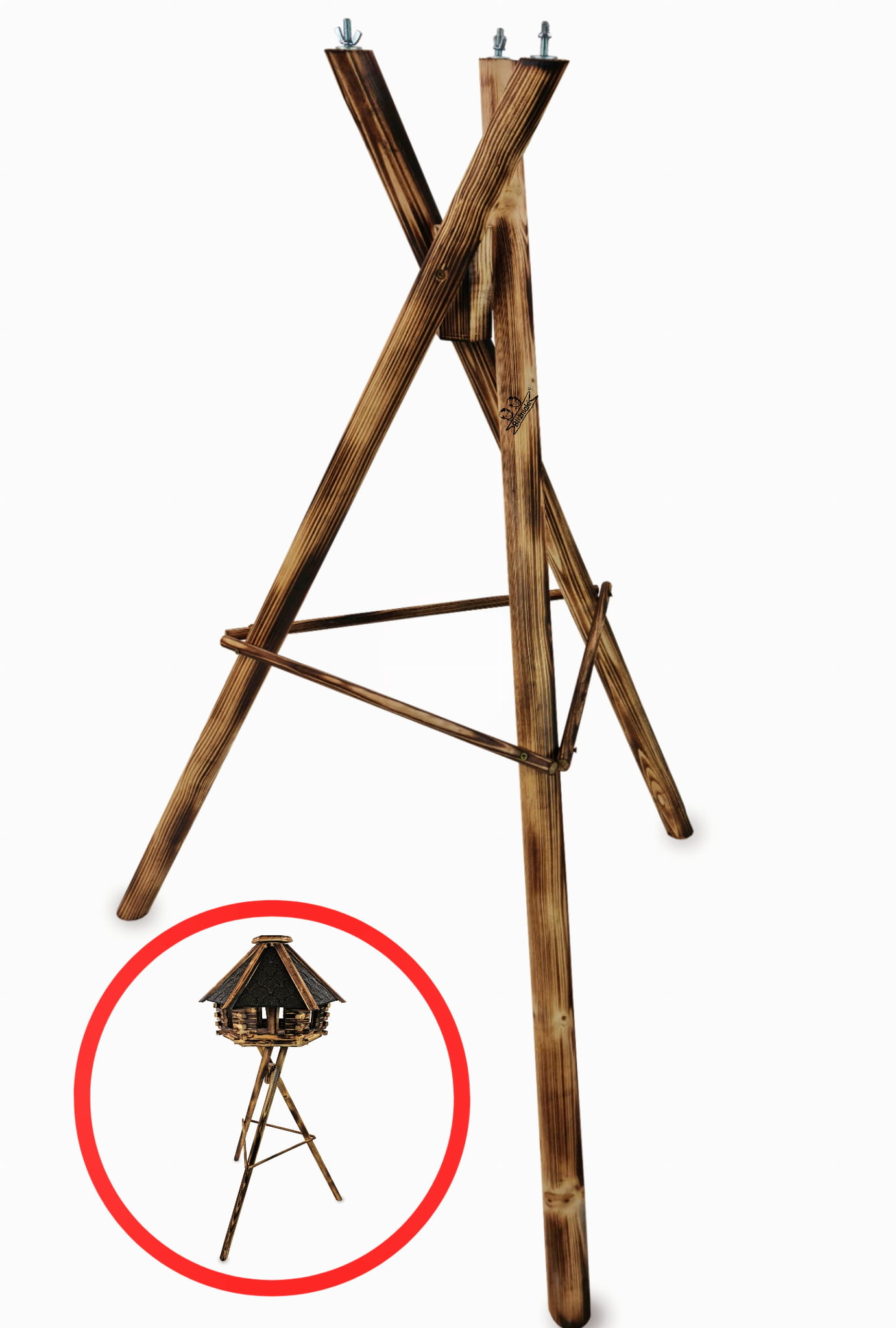 Drewniany Wysoki Stojak pod Karmnik Ogrodowy Uniwersalny Trójnogi Statyw pod Budki dla Ptaków STSP1 OPAL