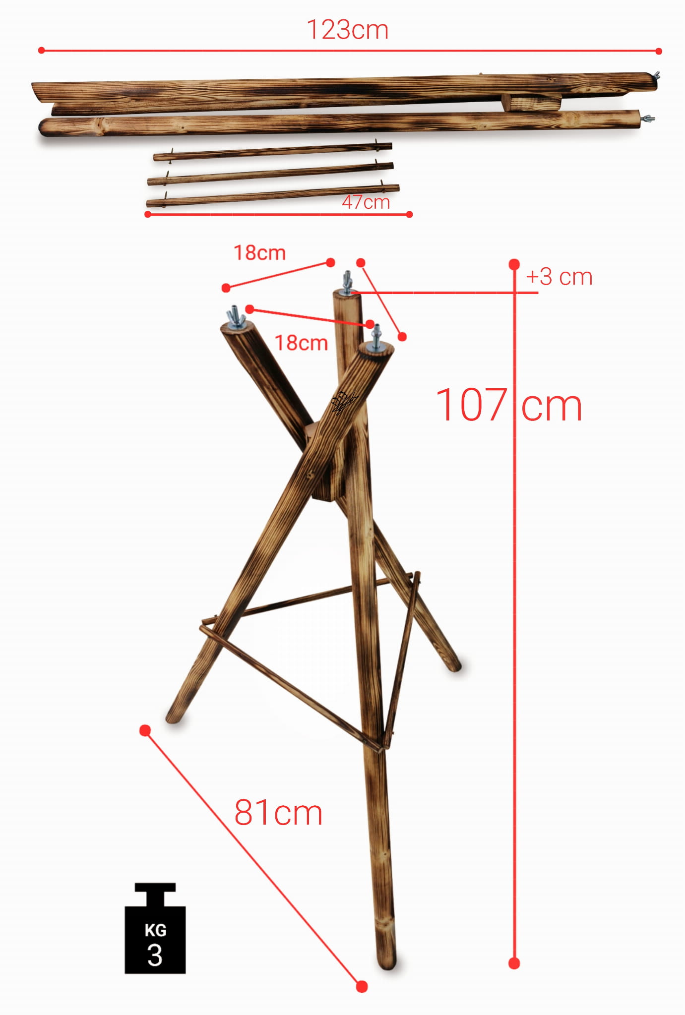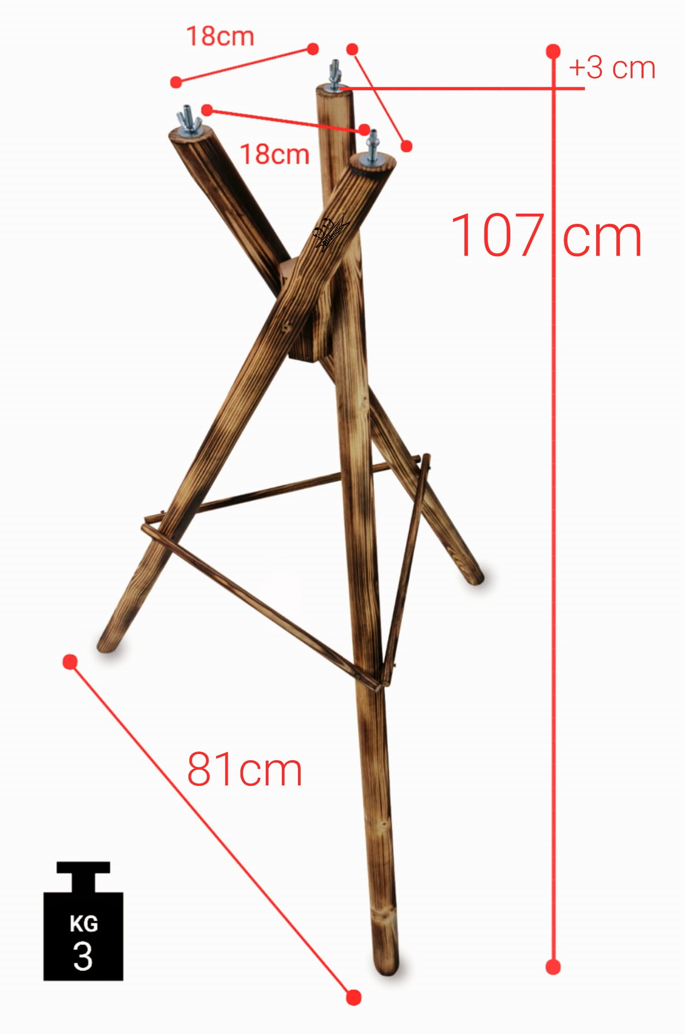 - Wysokość całkowita - 107cm (+3cm śrubki),