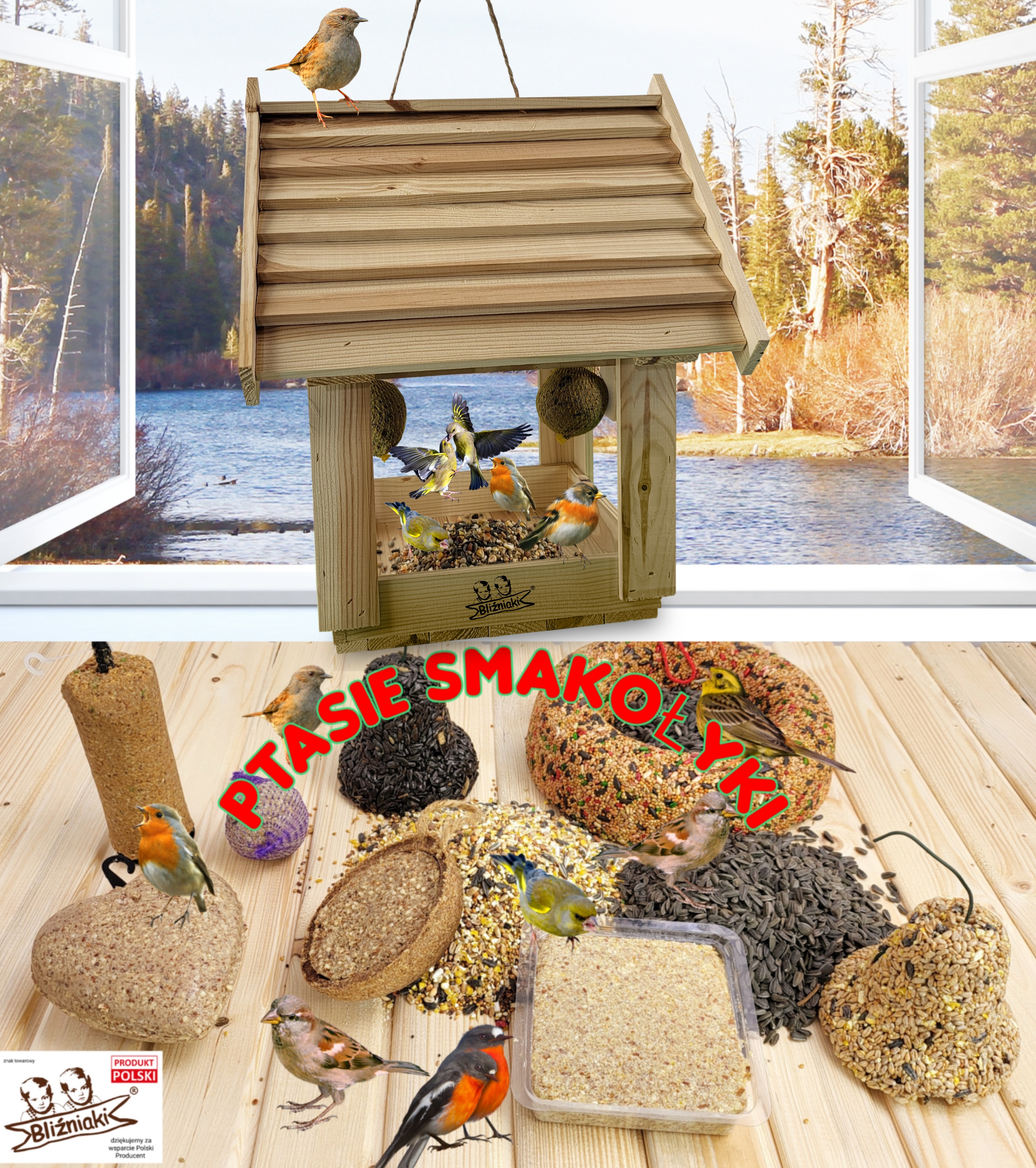 DUŻY KARMNIK Z HACZYKIEM NA KARMĘ ZAWIESZANY DOMEK DLA PTAKÓW
