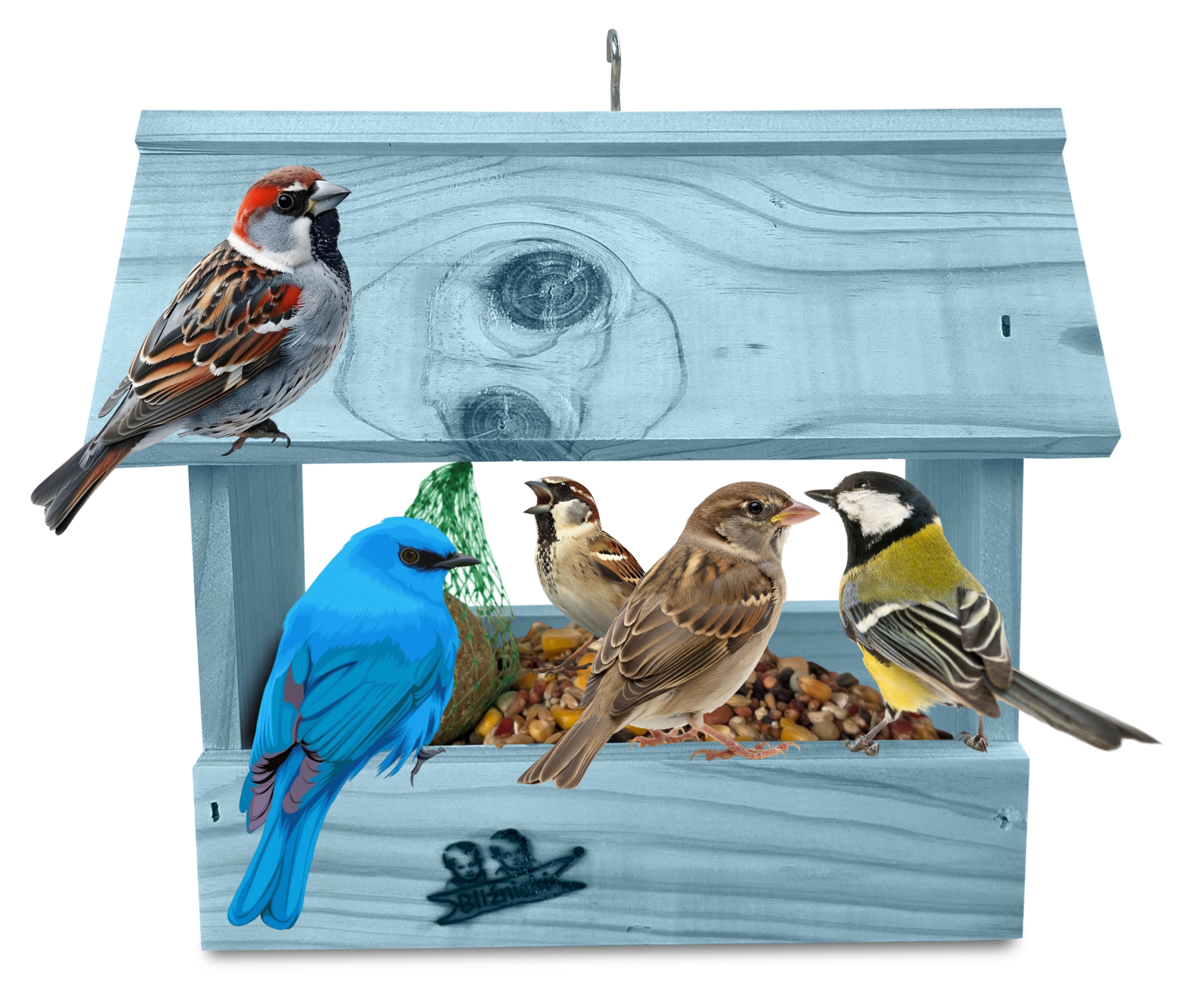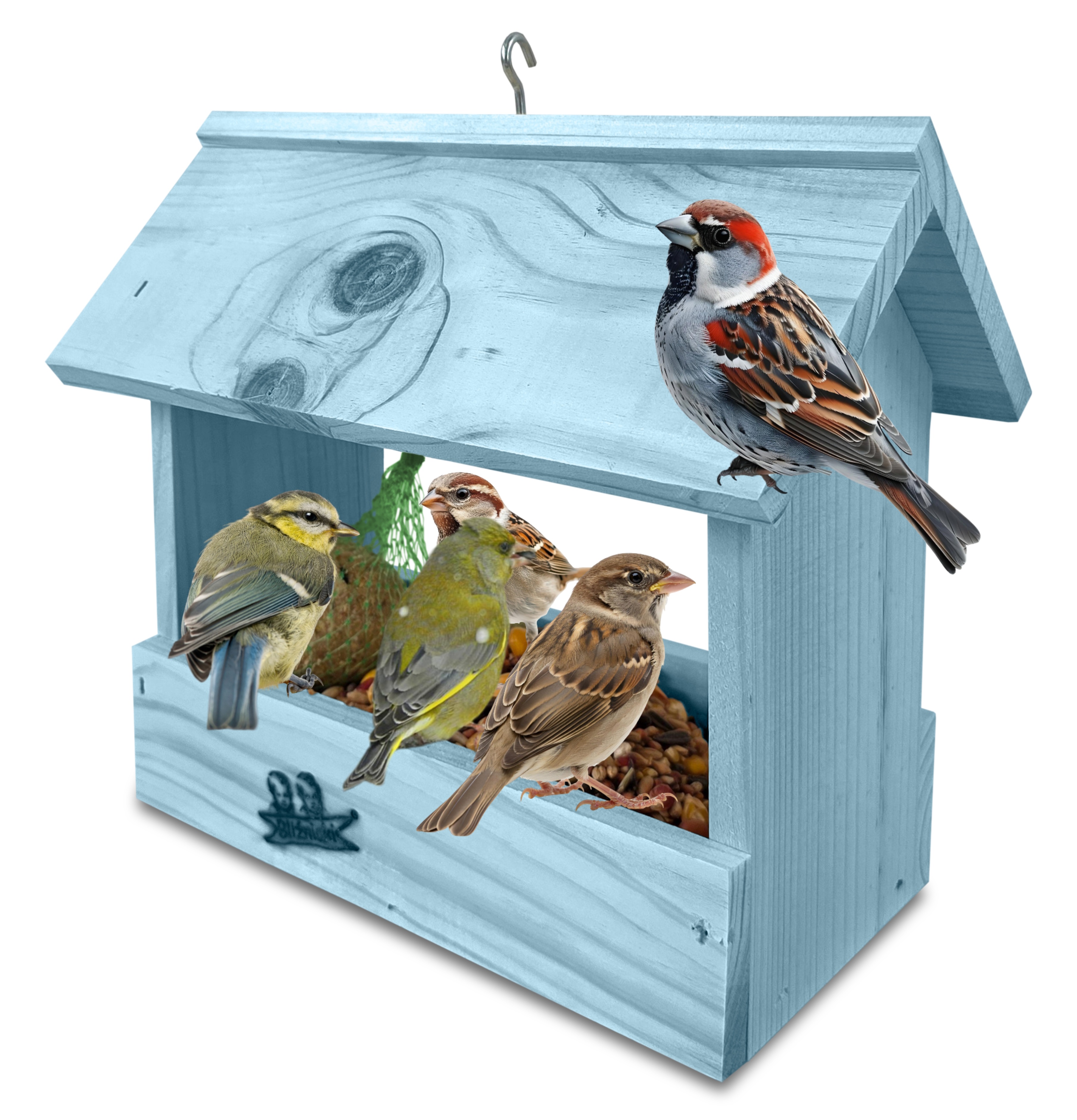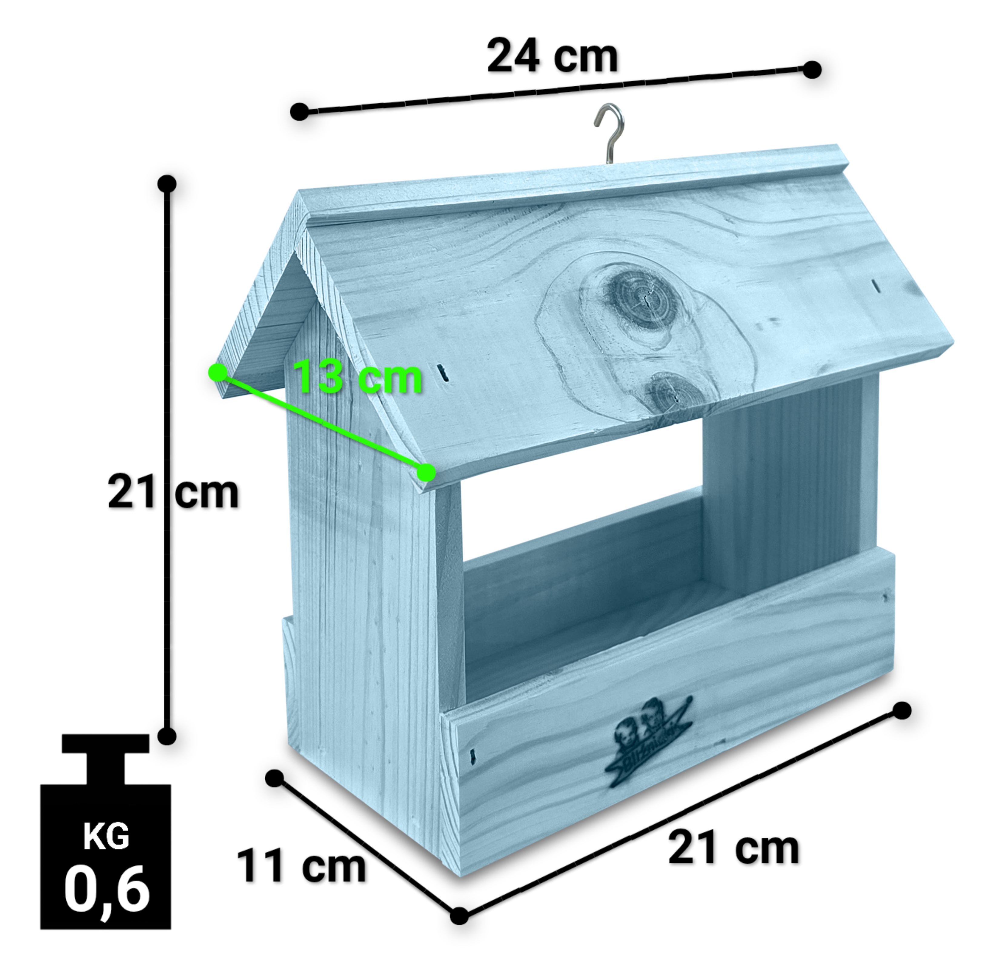 - Karmnik wykonany jest w całości z drewna iglastego, KOLOR PASTELOWY NIEBIESKI