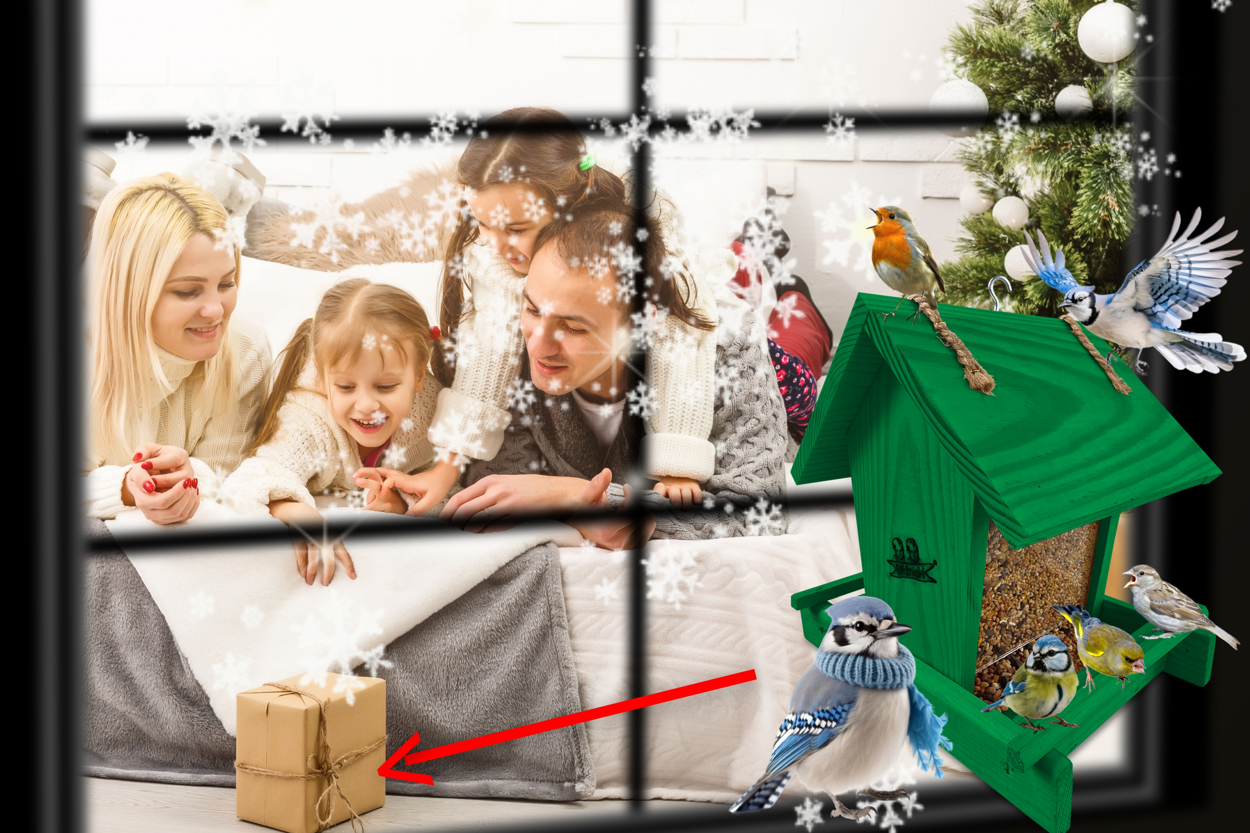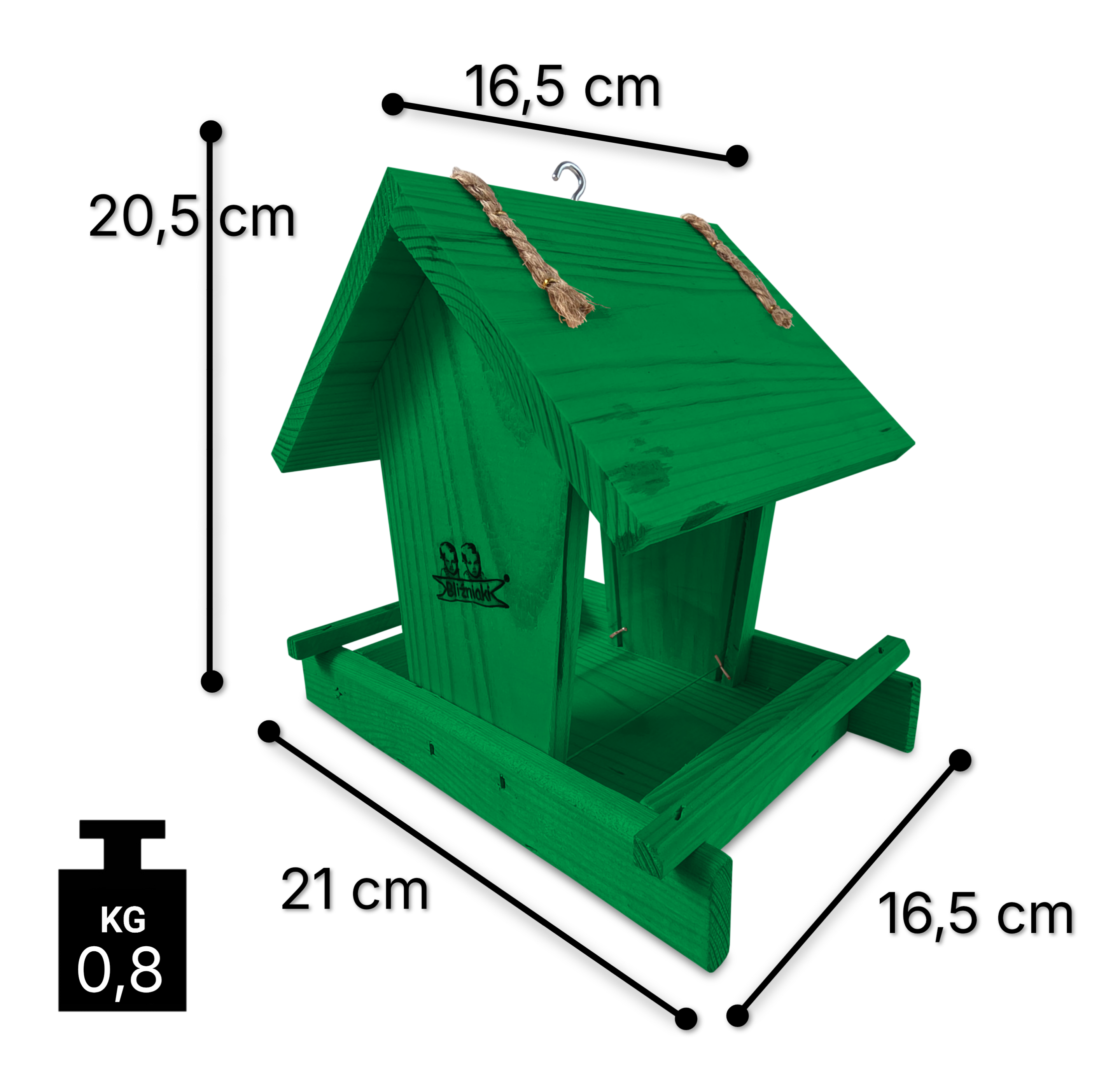 - Karmnik wykonany jest w całości z drewna iglastego, KOLOR CIEMNOZIELONY