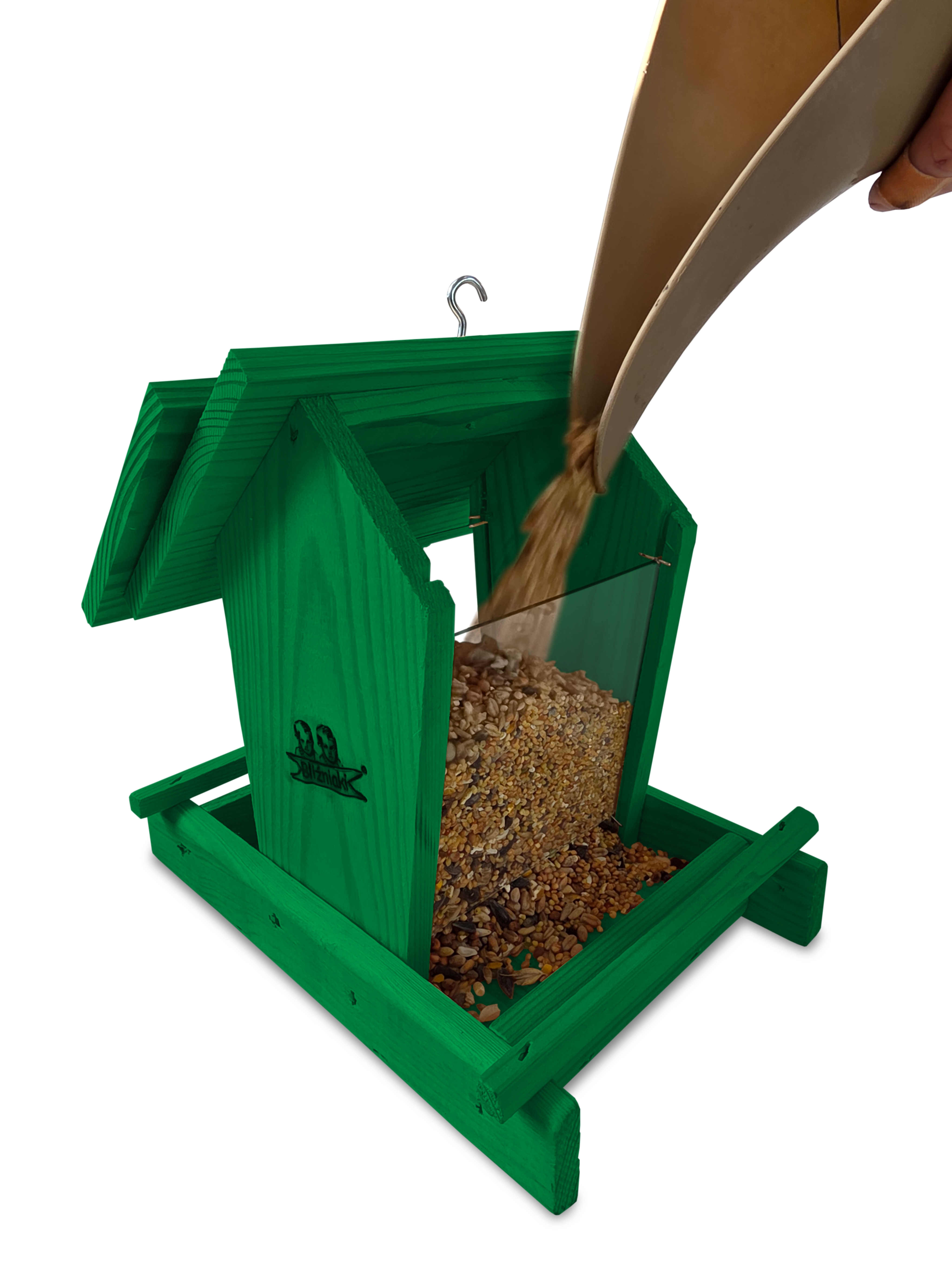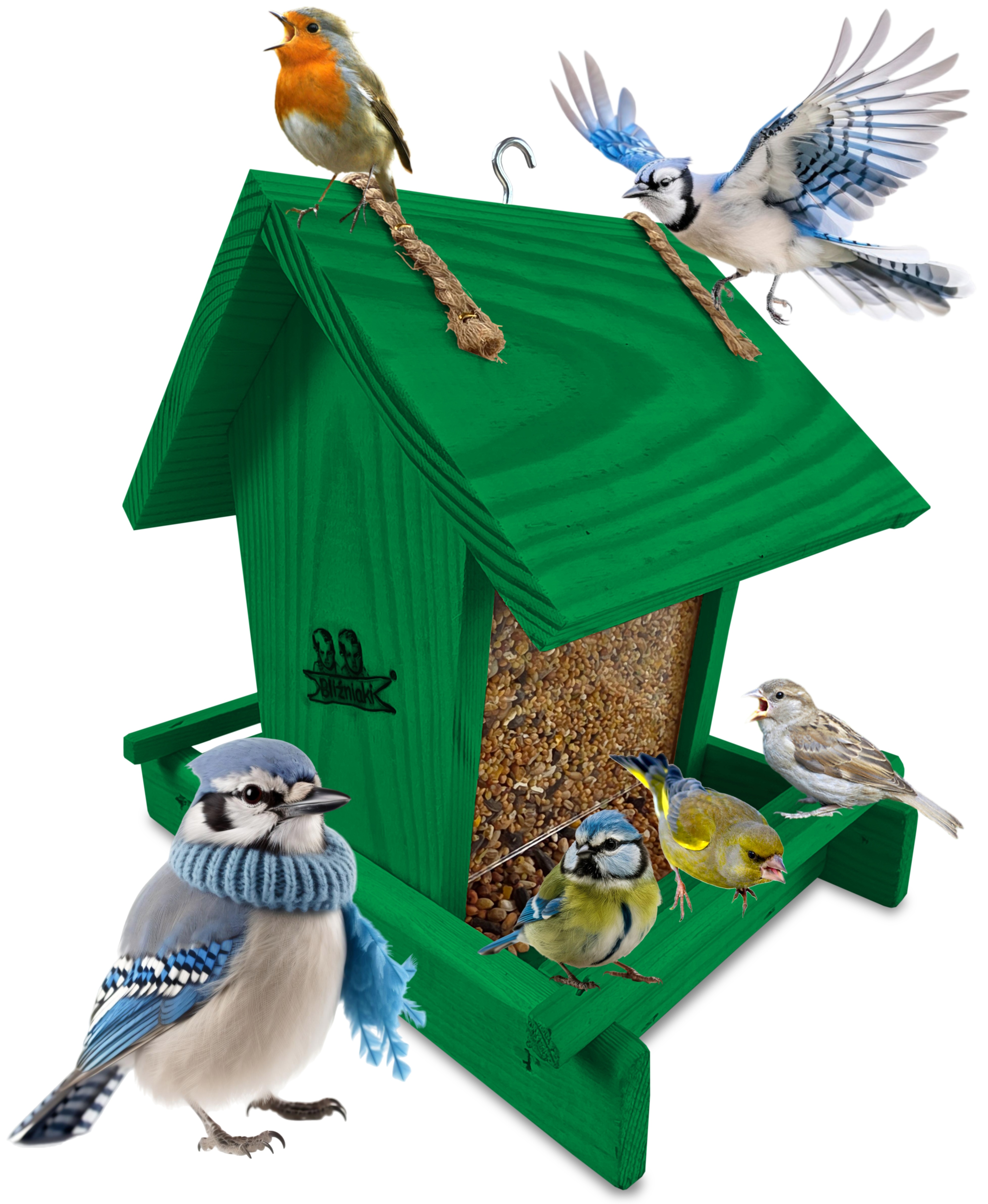 Drewniany karmnik dla ptaków zielony dozownik na pokarm dla ptaków K29 K