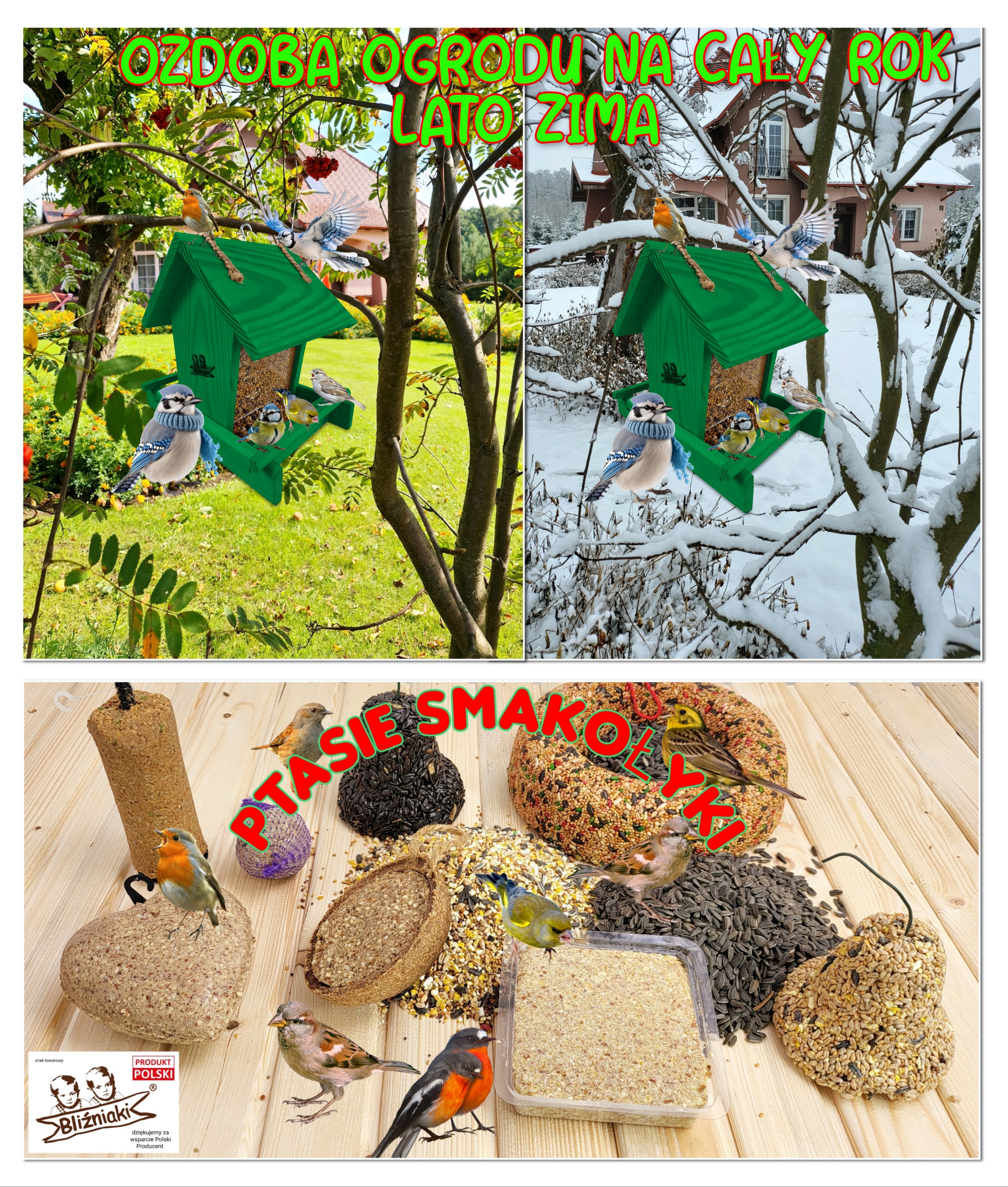 Wraz ze zbliżającym się okresem jesienno-zimowym nadchodzi trudny czas dla wszystkich gatunków ptaków, które w tym czasie nie migrują. Główny ich problem wiąże się z niedostatkiem pożywienia łatwego do zdobycia. Wszyscy powinniśmy myśleć pro-ekologicznie, dbać o bezpieczeństwo tych małych, ale bardzo pożytecznych zwierząt i zwiększyć ich szanse na przetrwanie śniegu i mrozu. Kupując karmnik z naszej aukcji i umieszczając w nim ptasi pokarm masz pewność, że przyczynisz się do utrzymania życia w Twojej okolicy.