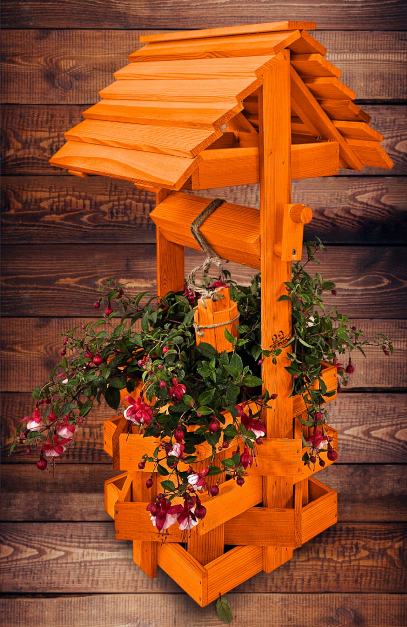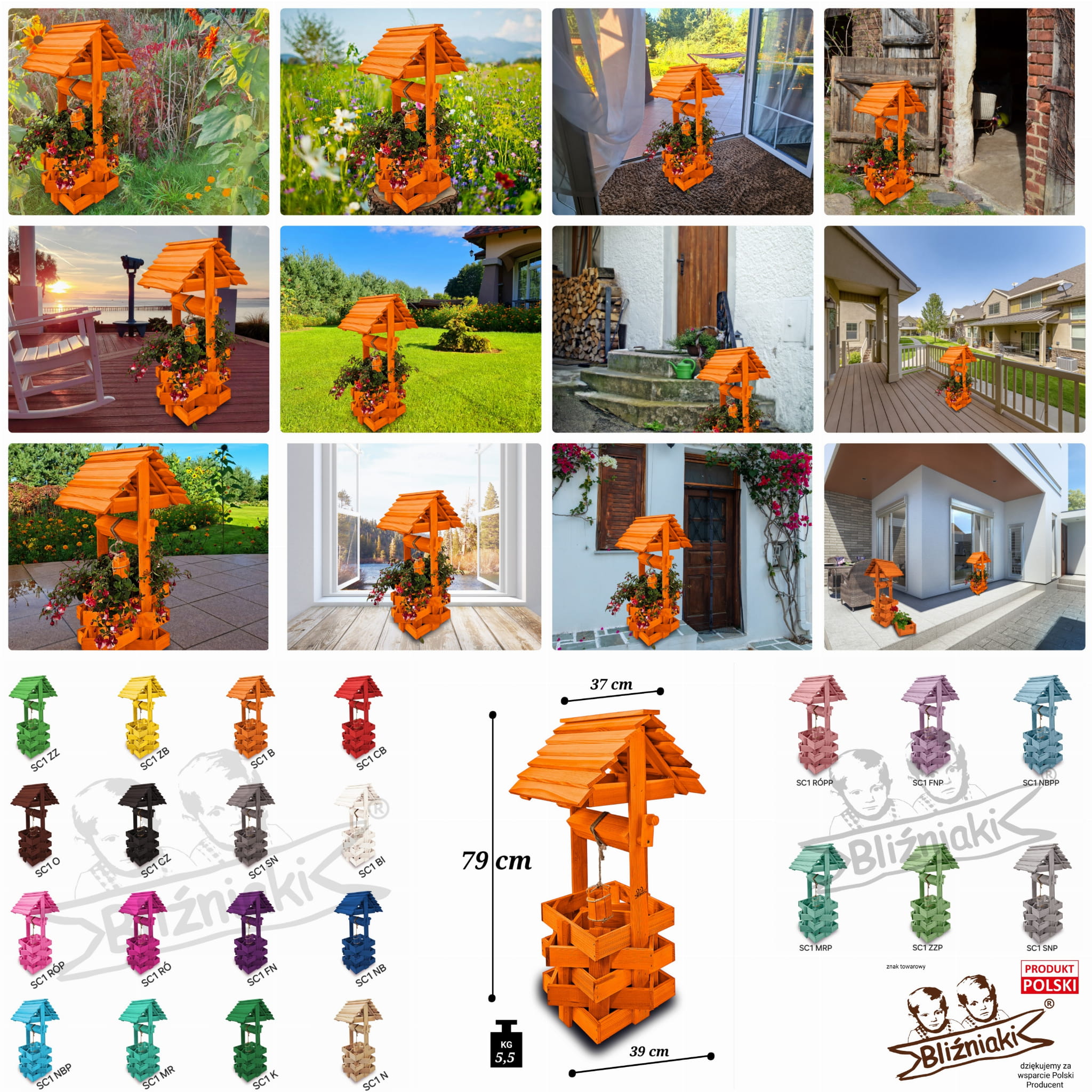 Duża studnia ozdobna Kolor OLCHA Studzienka ogrodowa Donica na kwiaty Doniczki na pnącza Donica do domu i ogrodu Kwietnik drewniany ogrodowy Studzienki na begonie Studnie balkonowe tarasowe Donice na pelargonie Prezent SC1 B