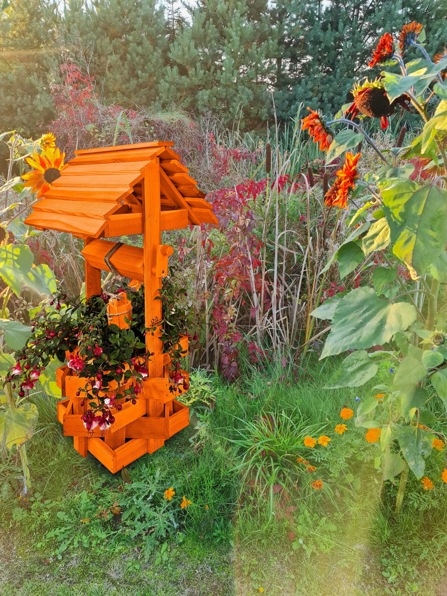 - Studnia została wzbogacona o drewnianą donicę, w której można dodatkowo storzyć miniogródek