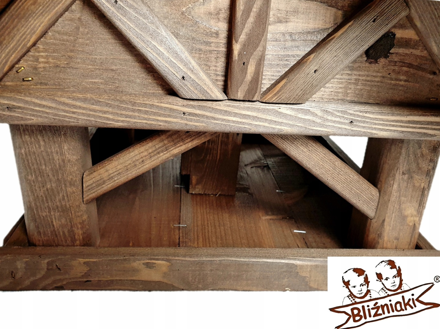 - Wykonany jest w całości z drewna, impregnowany ręcznie.