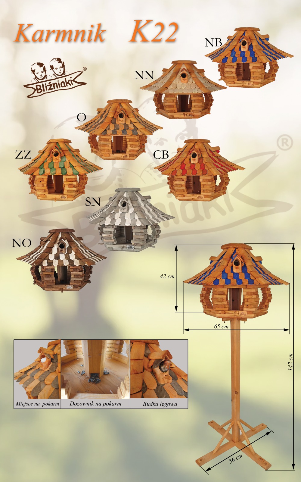 Duży Karmnik Dla Ptaków Na Stojaku Daszek Wykonany W Dwóch Kolorach Model K22 B NB + STG B.