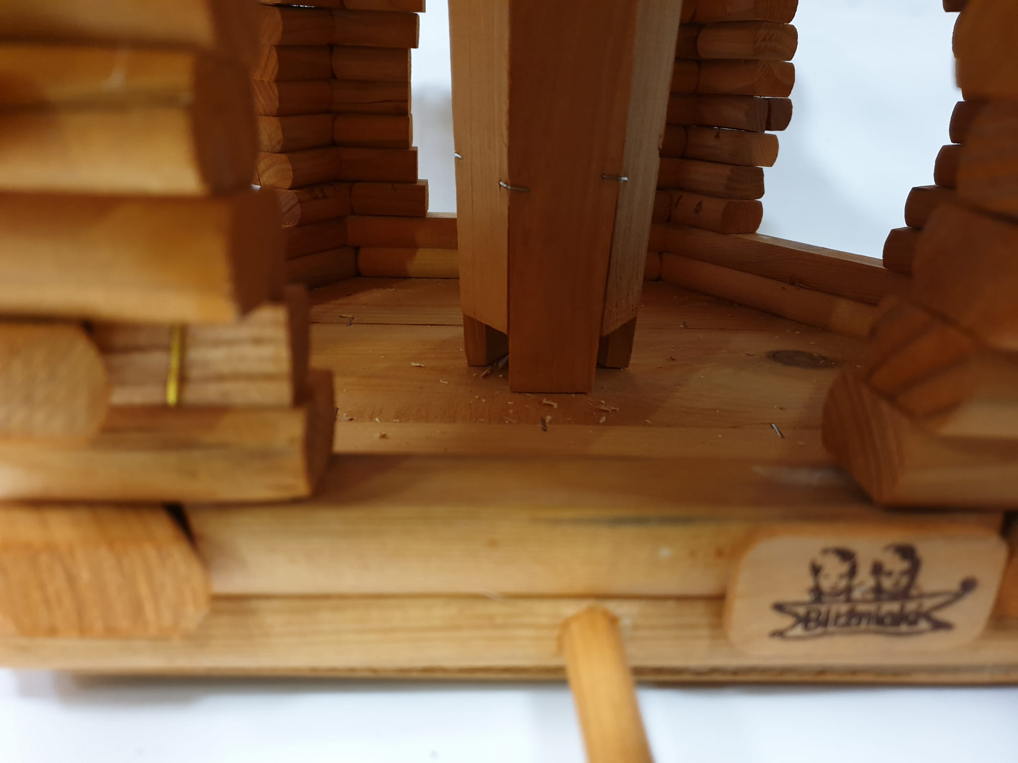Wykonany jest w całości z drewna, dach pokryty jest dachówką. Całość wykonana jest bardzo starannie i z wielką precyzją.