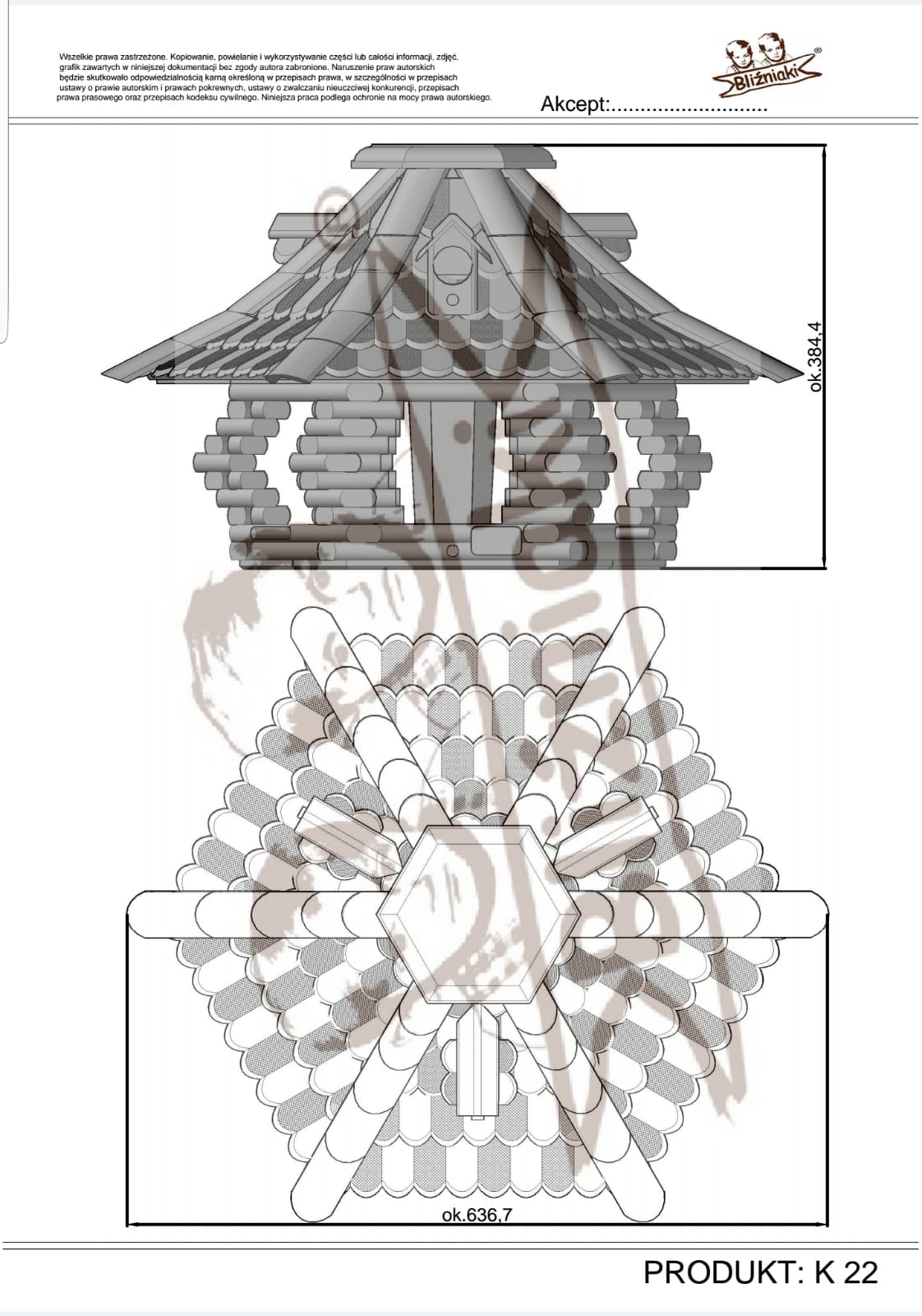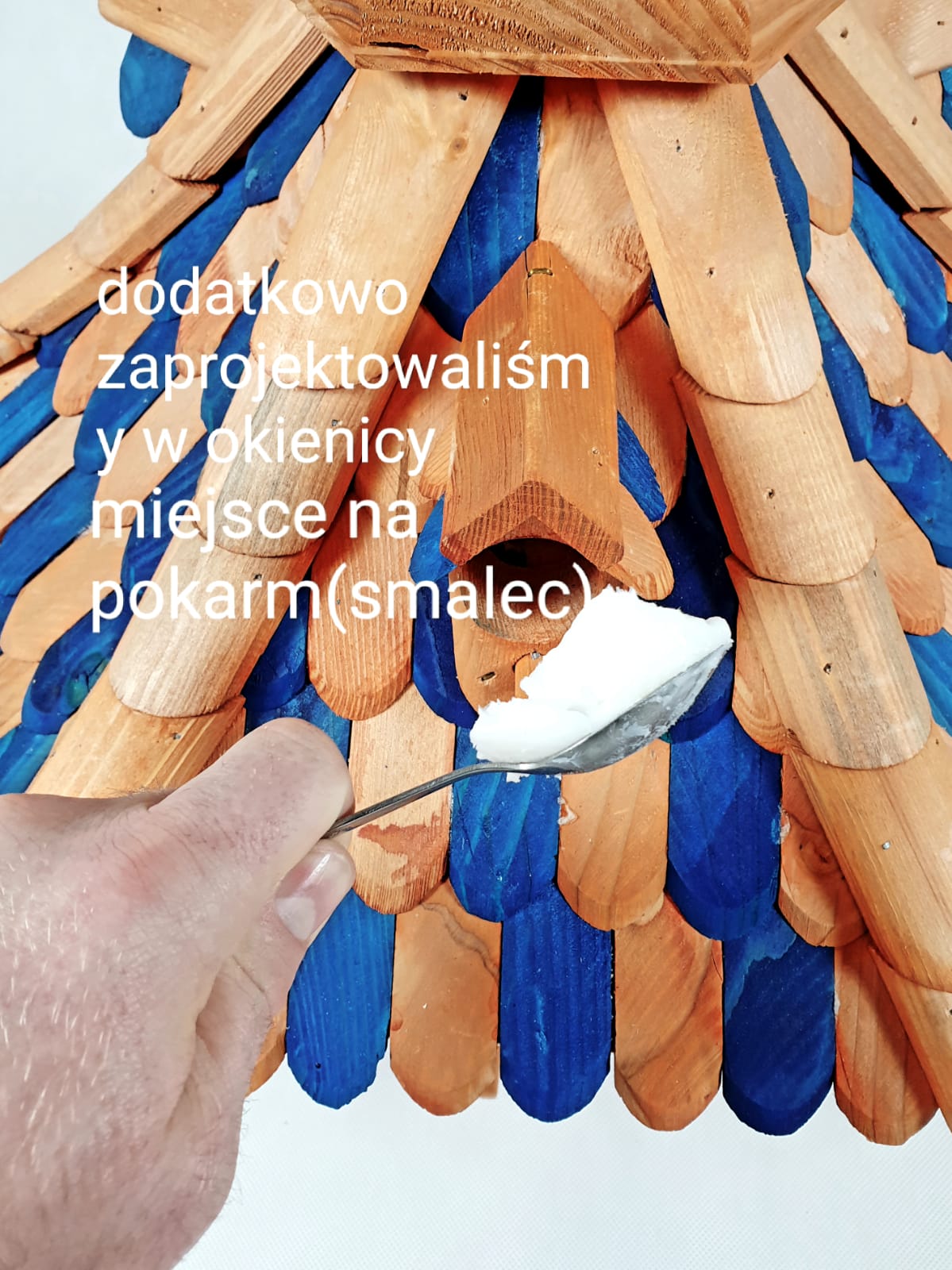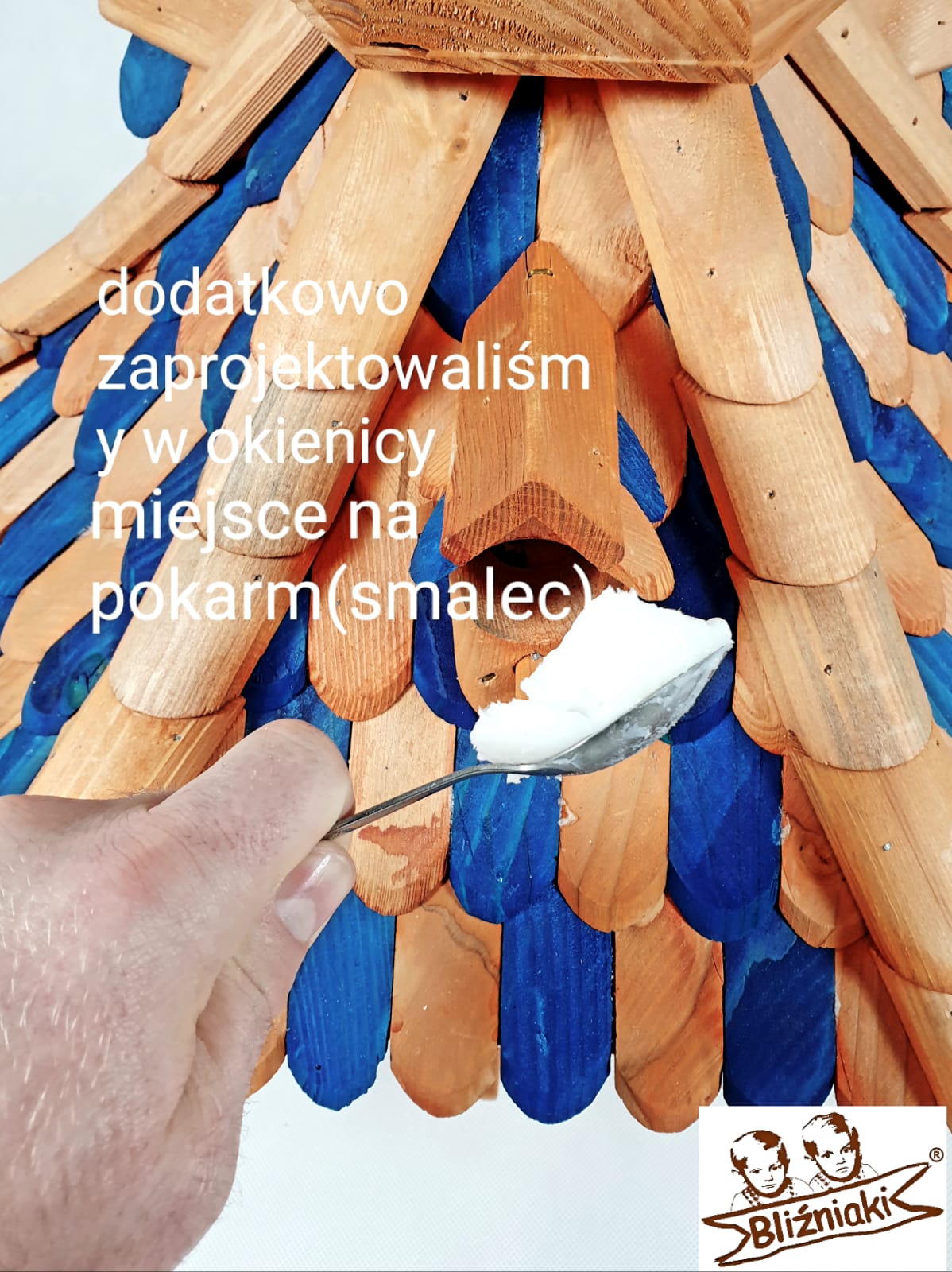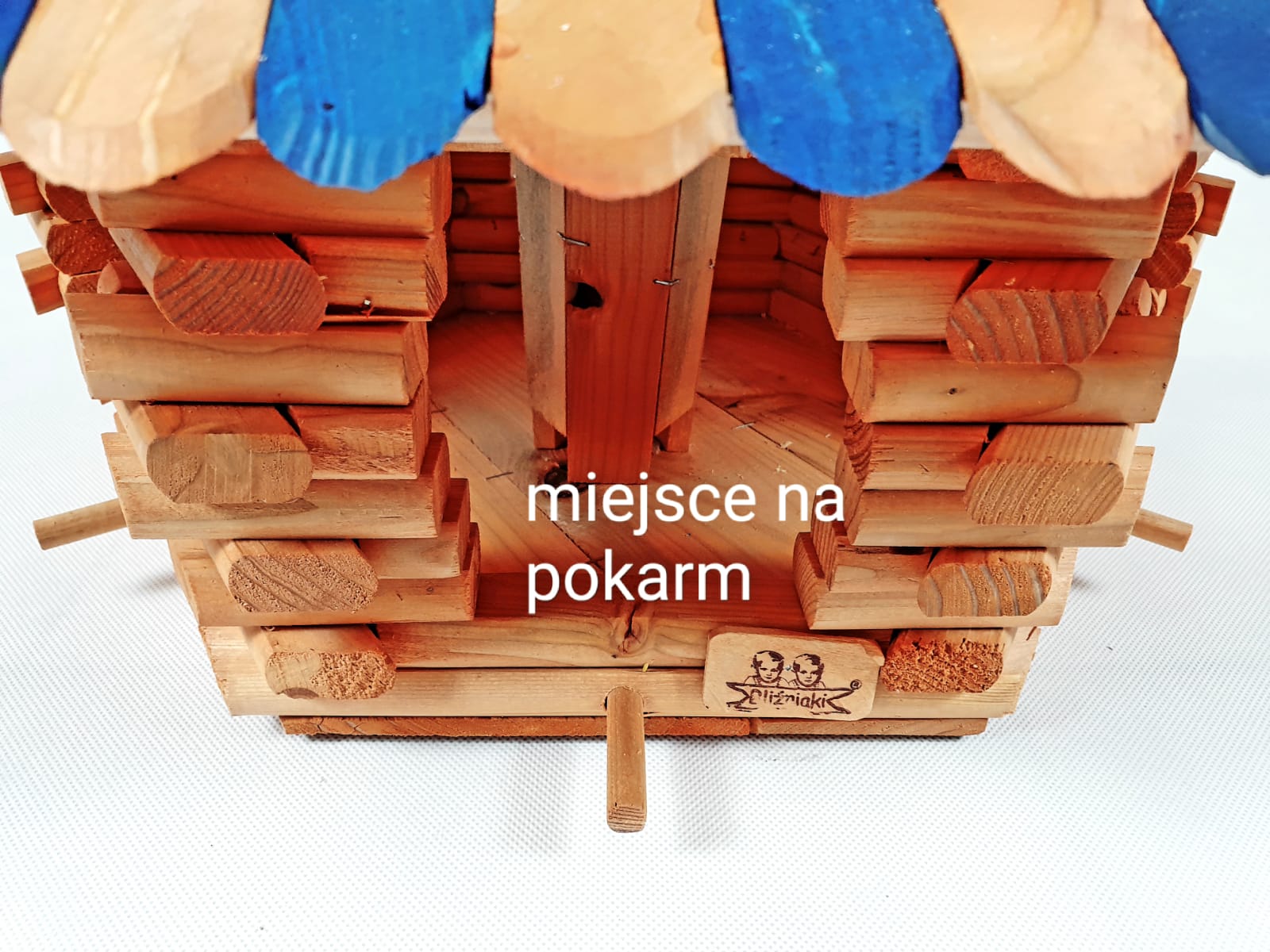 - Karmnik wykonany jest w całości z drewna, impregnowany ręcznie.