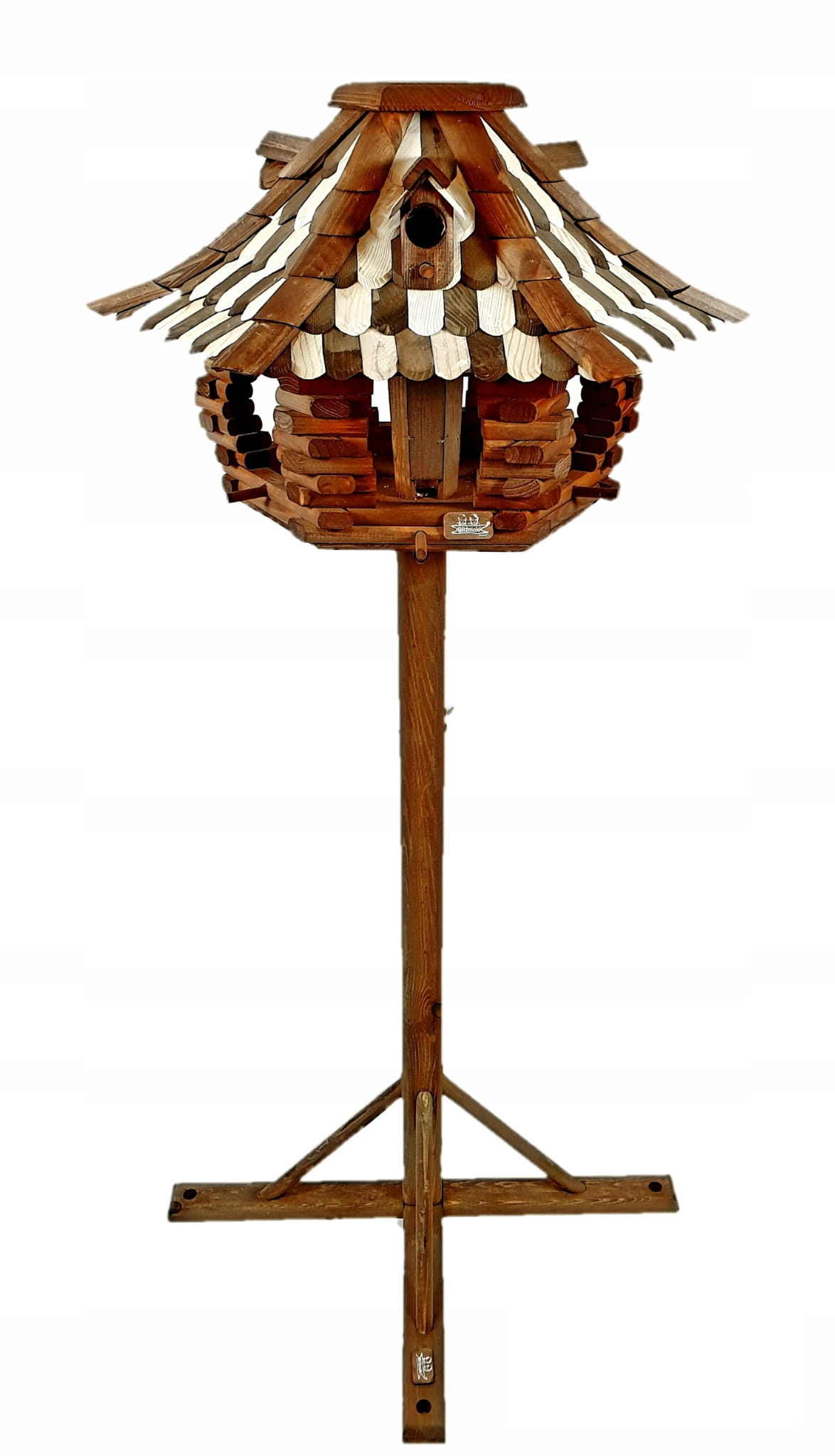 - Karmnik wykonany jest w całości z drewna, impregnowany ręcznie.