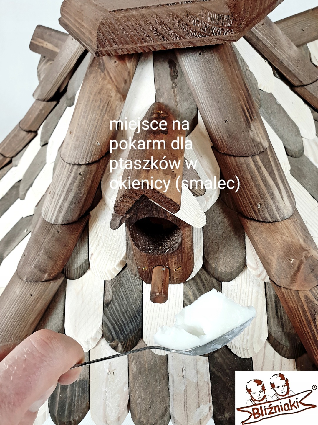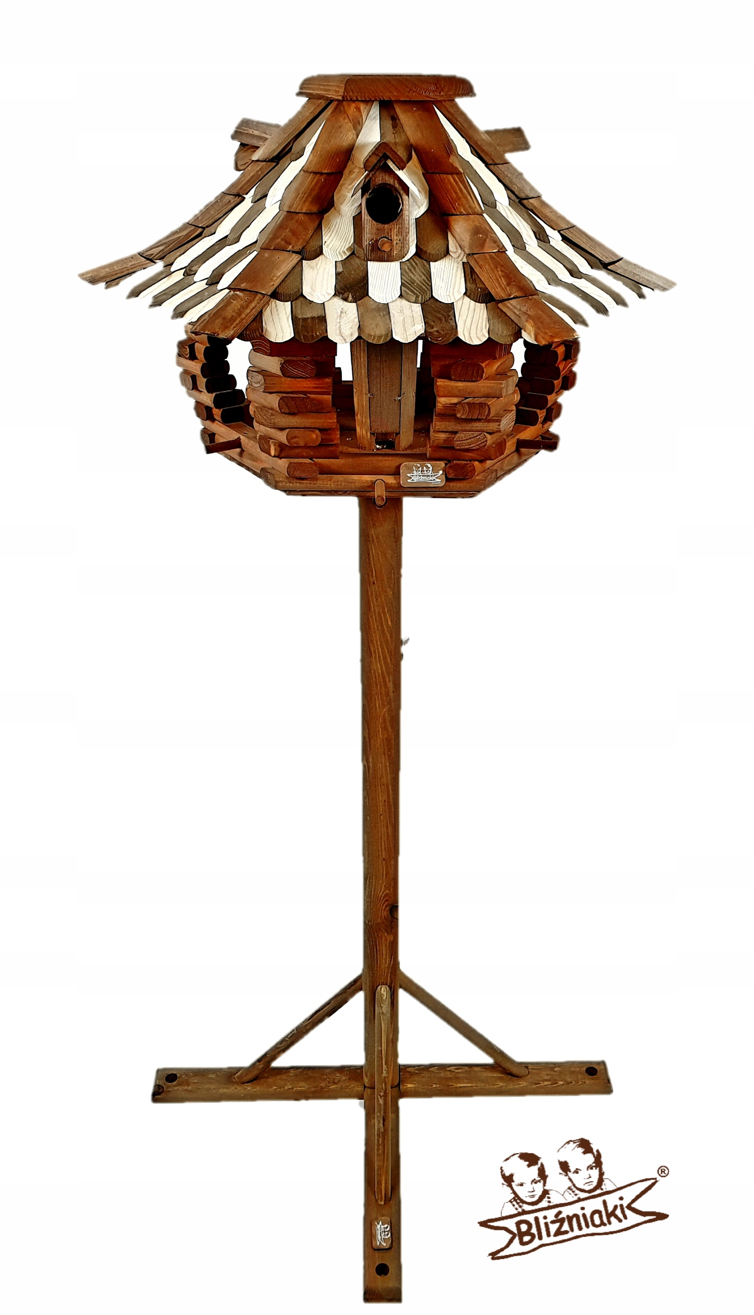 Przedmiotem sprzedaży jest ozdobny drewniany Karmnik dla ptaków model K22 O BI + ST XL.