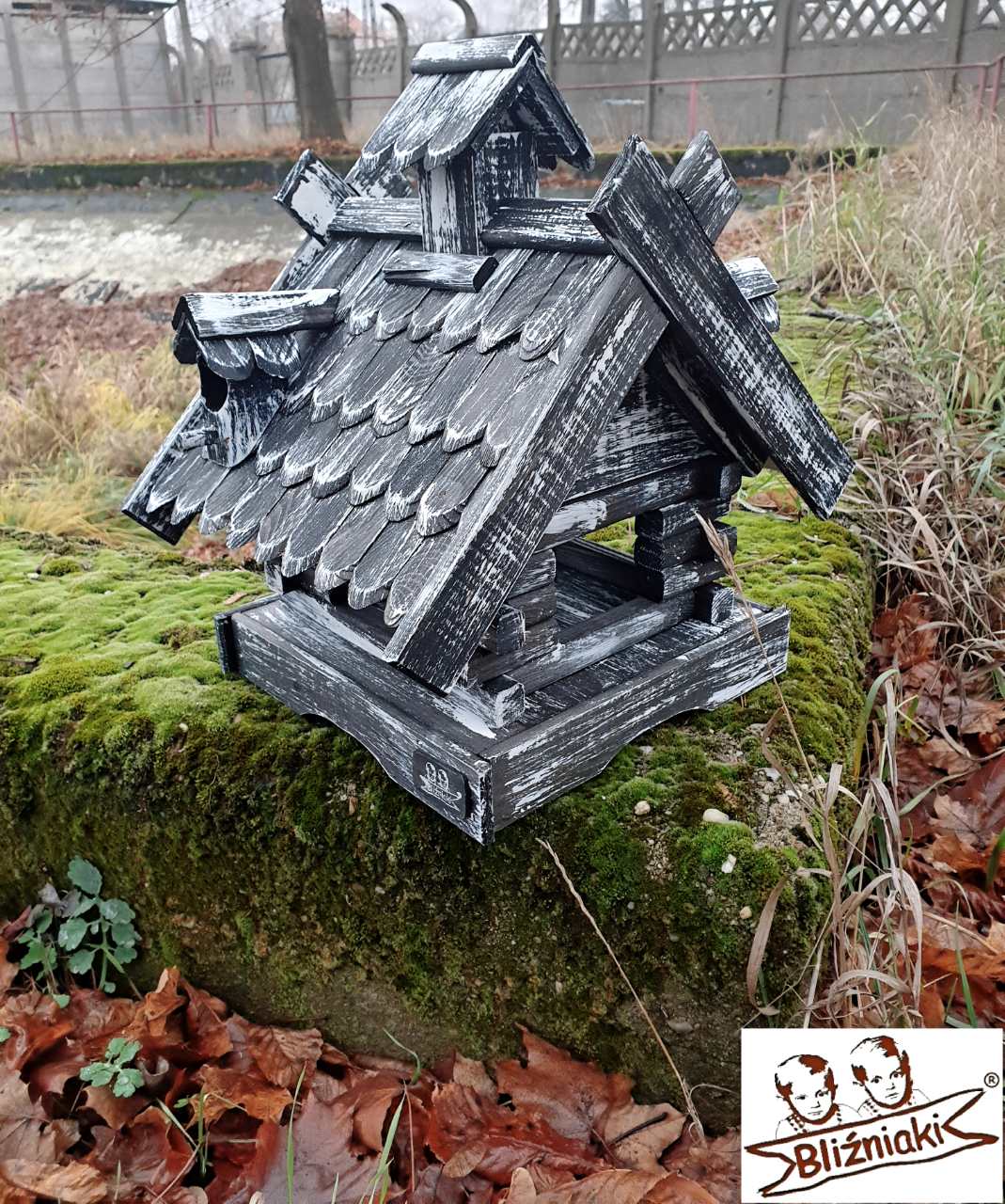 Karmnik wykonany jest w całości z drewna, impregnowany ręcznie.