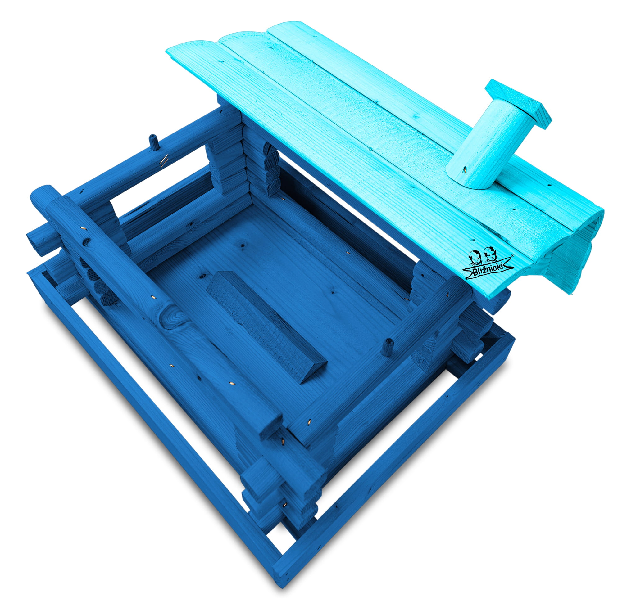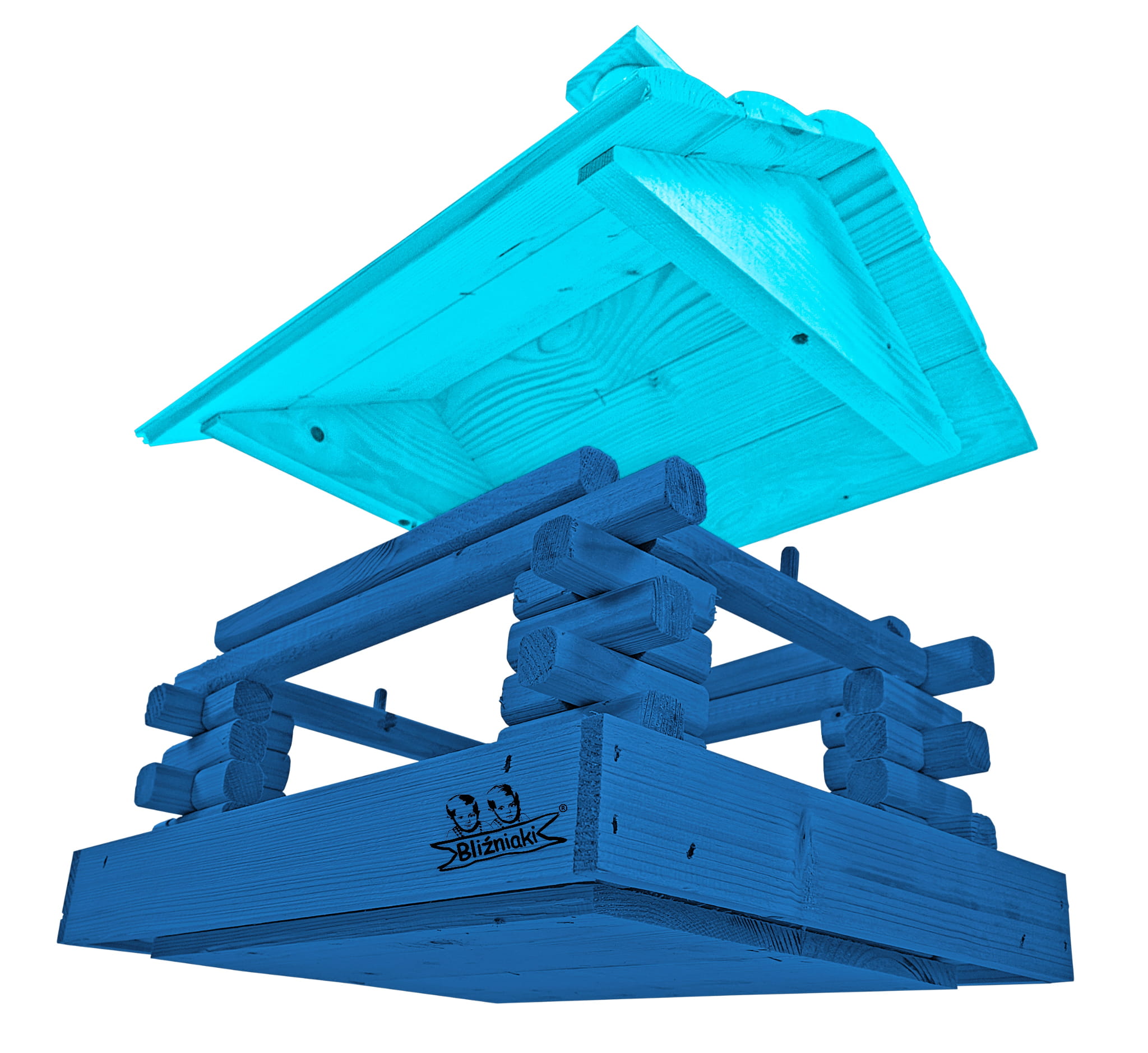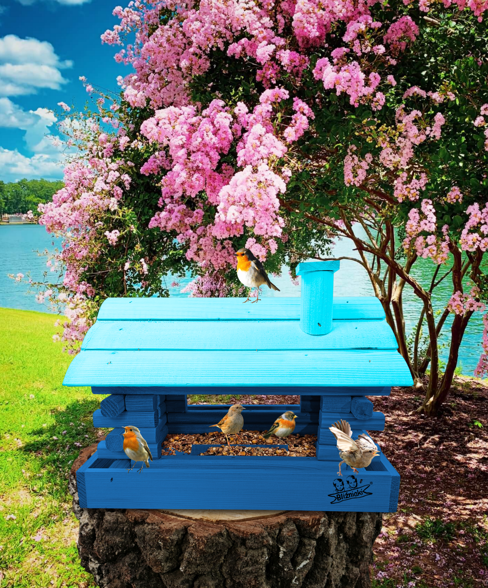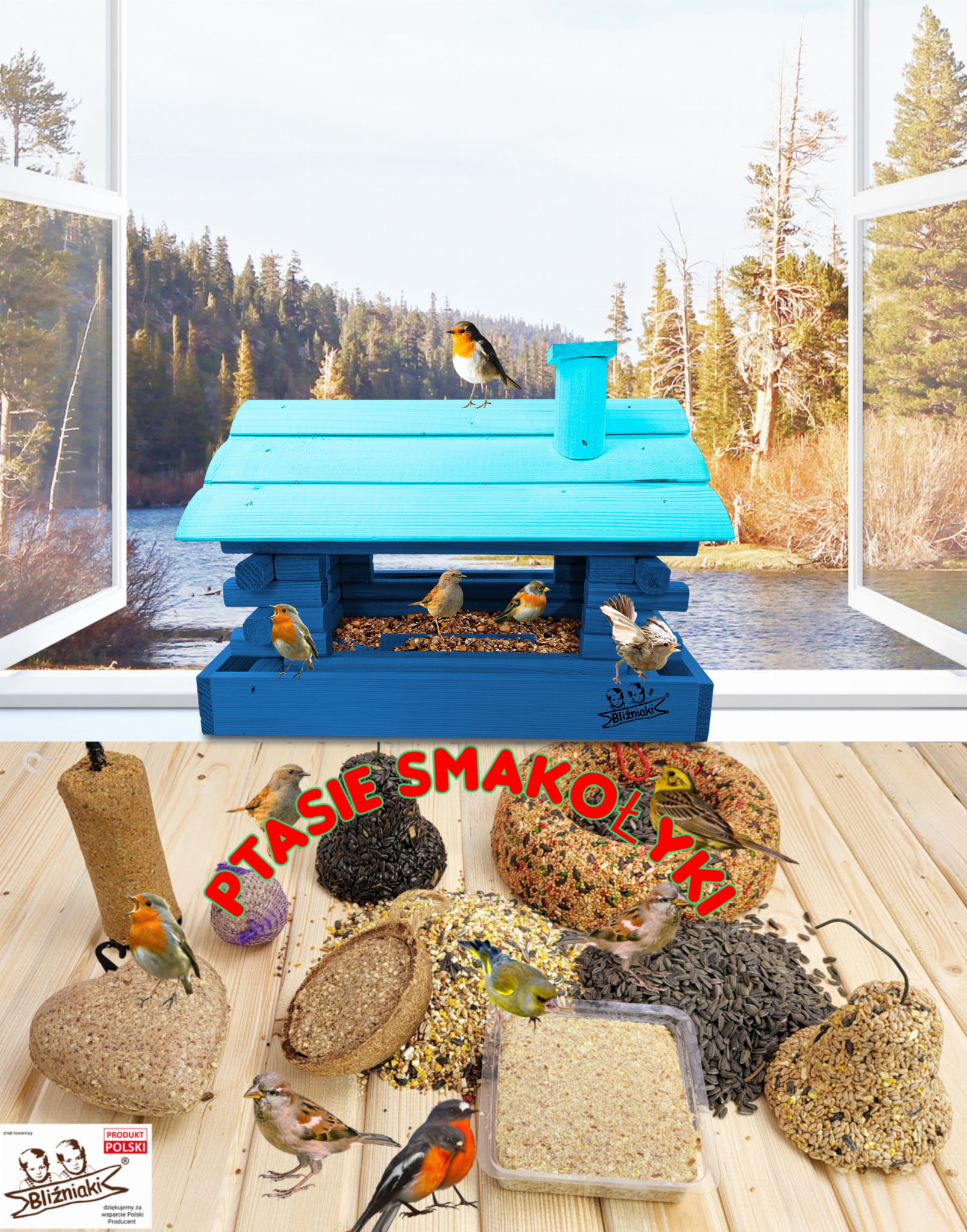 Duży Karmnik Drewniany Granatowy z Błękitnym dla Sikorek na Balkon Taras Okno Karmniki Ekologiczne Ozdobne Schronienie Domek Karmniczek na Pokarm dla Ptaków K182a NB NBP