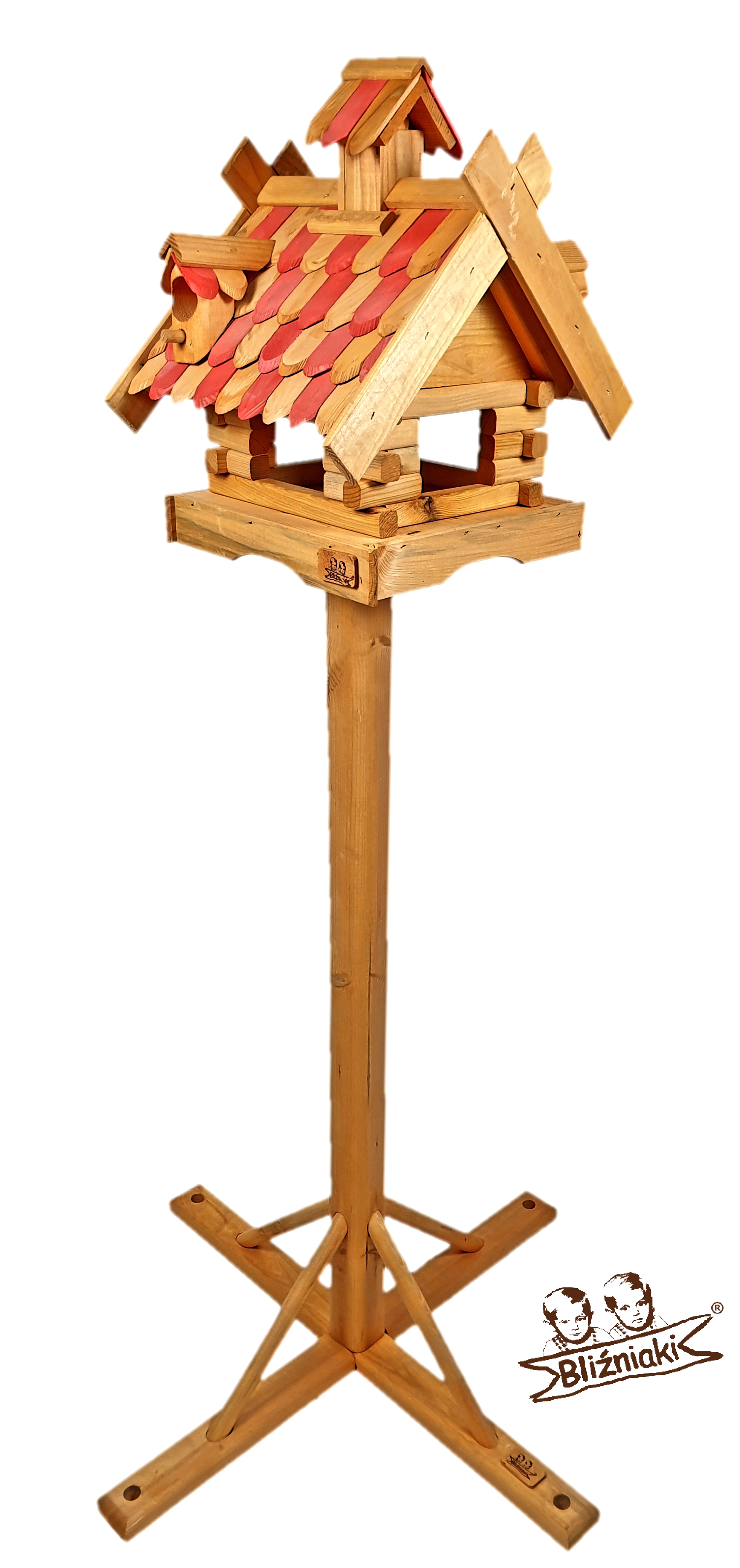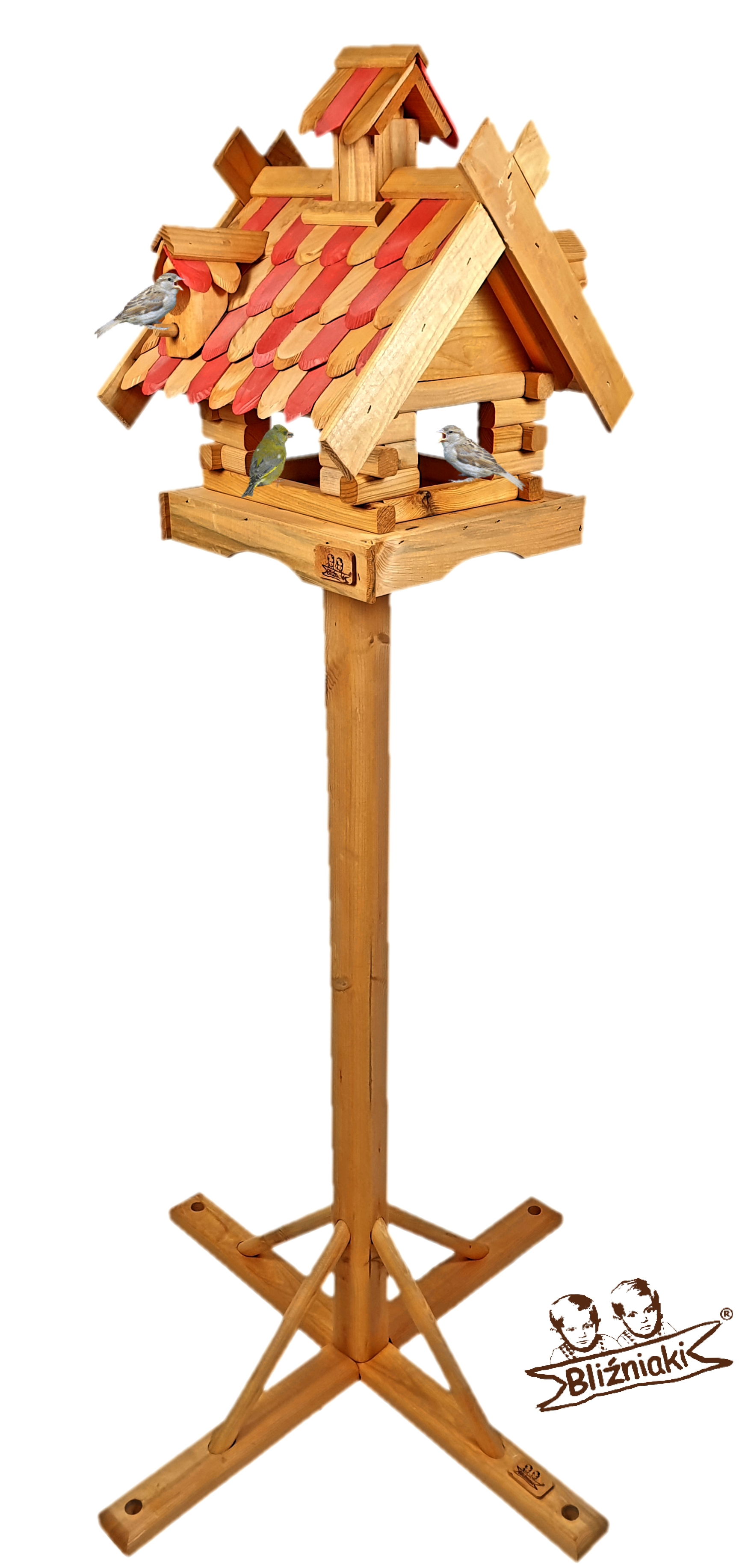 Duży Karmnik Drewniany Na Stojaku Ozdobny Domek (K21a B CB + STST B )