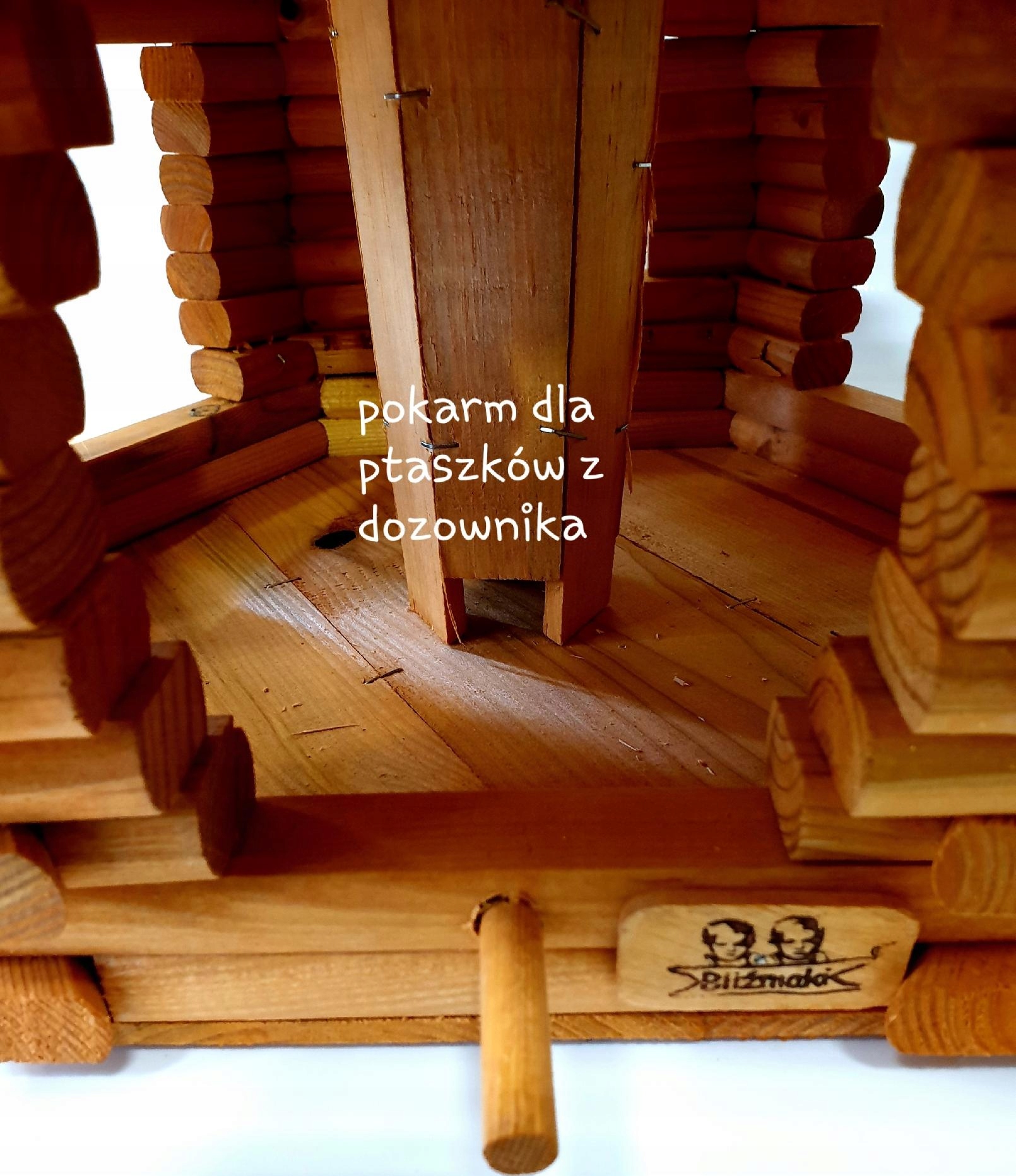 - Karmnik wykonany jest w całości z drewna, impregnowany ręcznie.