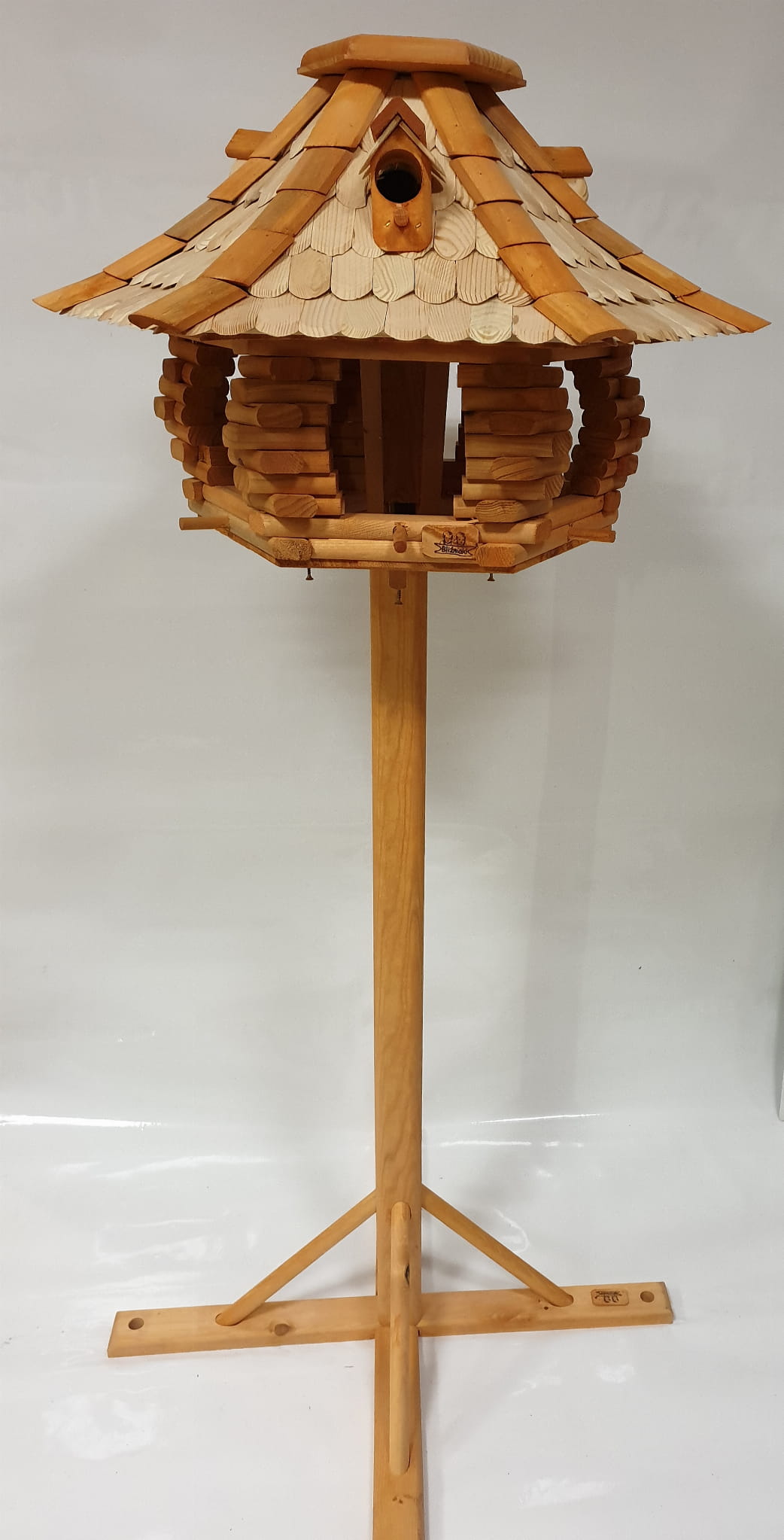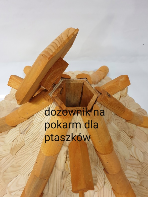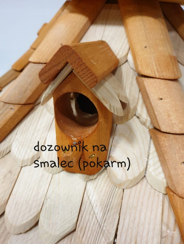 - Karmnik wykonany jest w całości z drewna, impregnowany ręcznie.