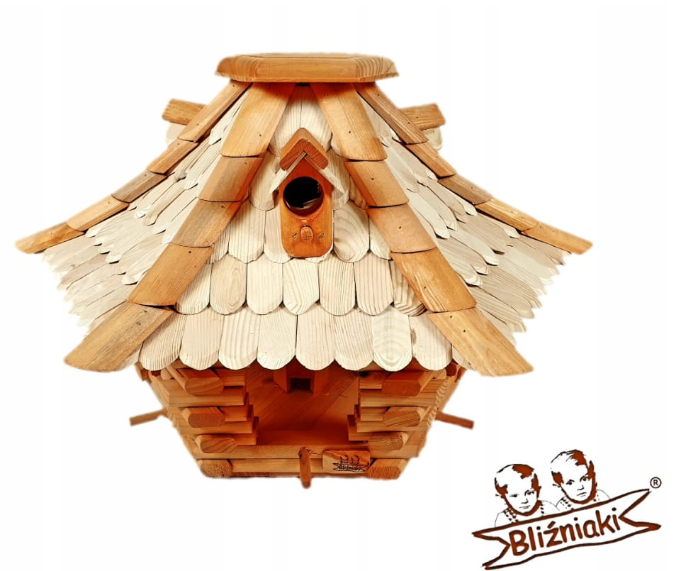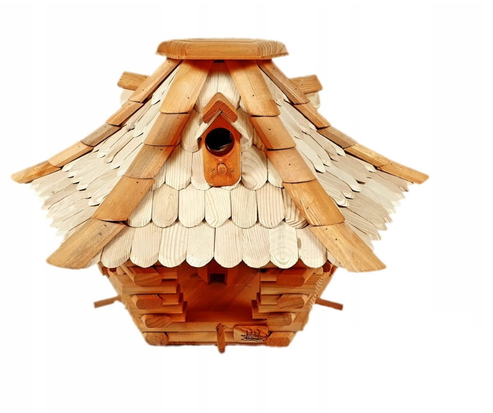 Duży Karmnik Z Dozownikiem Na Ziarno Dla Małych Ptaków Ozdobny Dekoracyjny Z Budką Lęgową Dachówka Drewniana Rękodzieło(K22 N)