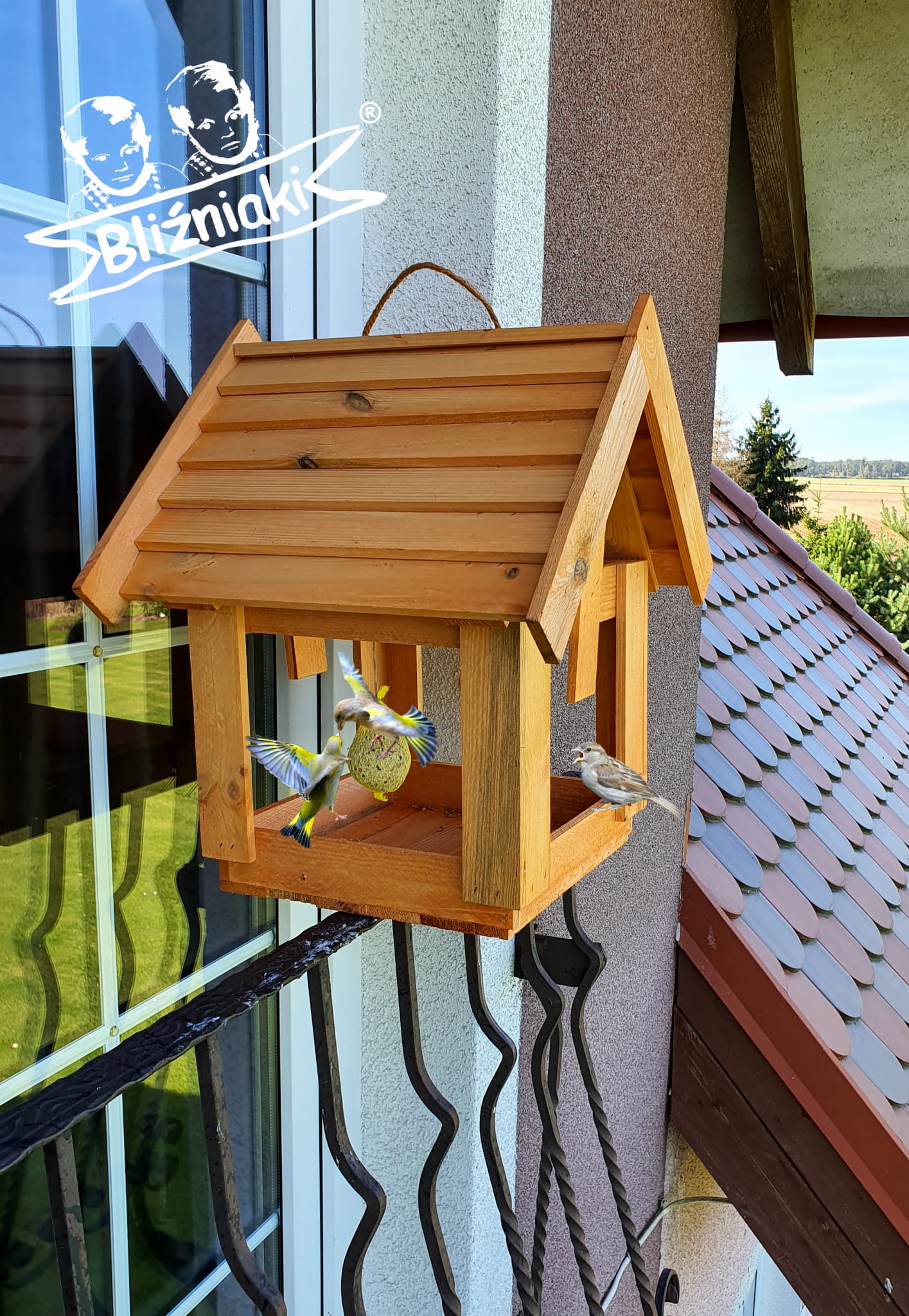 Przedmiotem oferty jest DUŻY KARMNIK Z HACZYKIEM NA KARMĘ ZAWIESZANY DOMEK DLA PTAKÓW