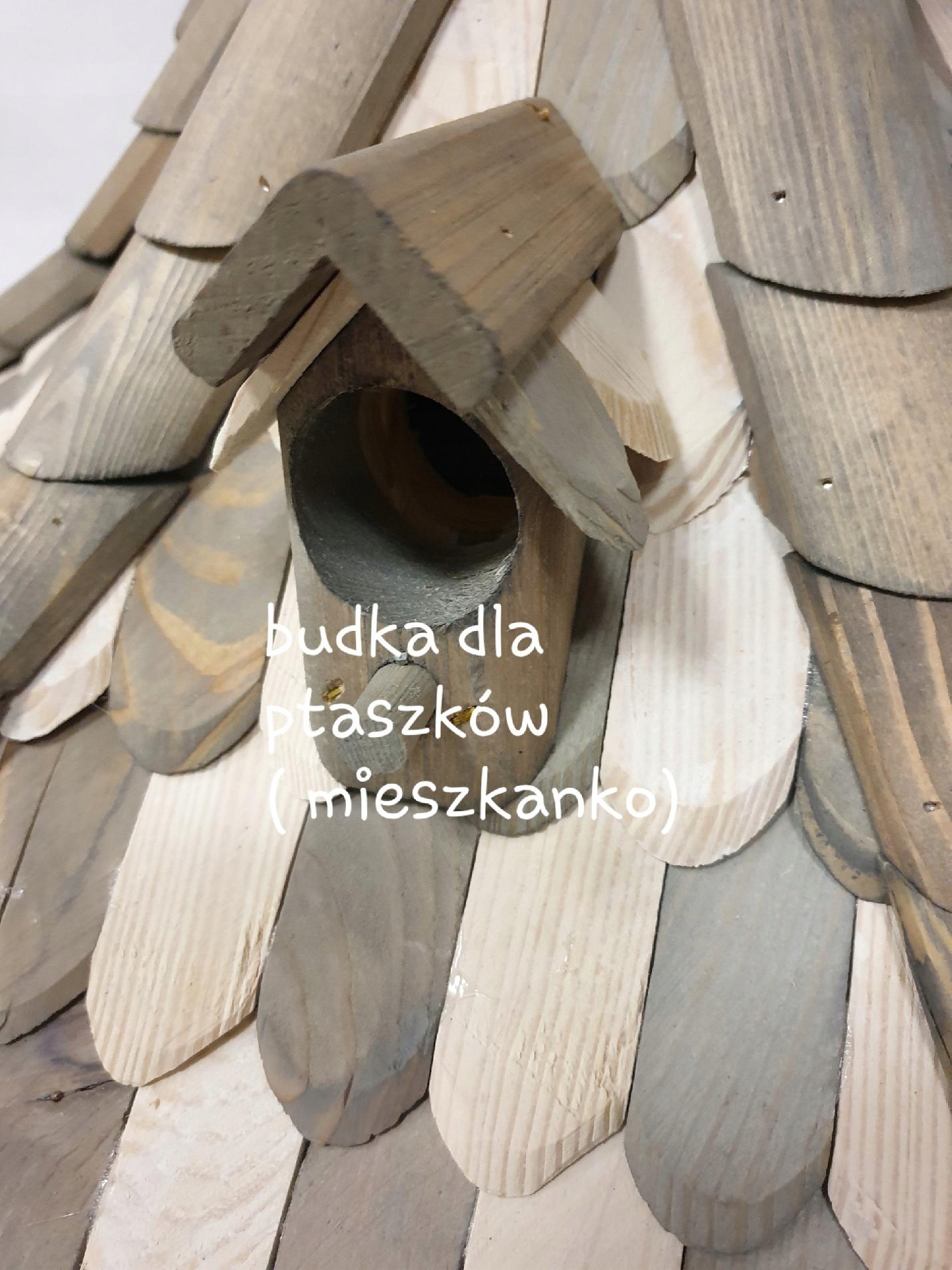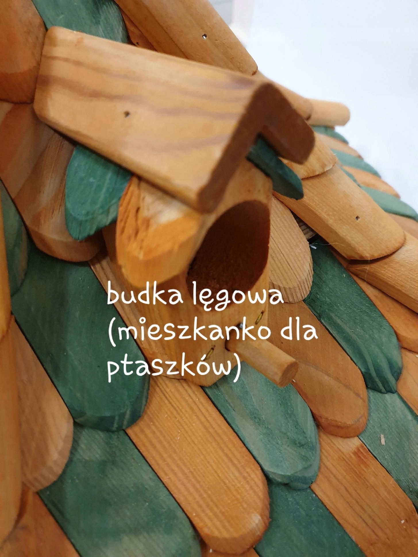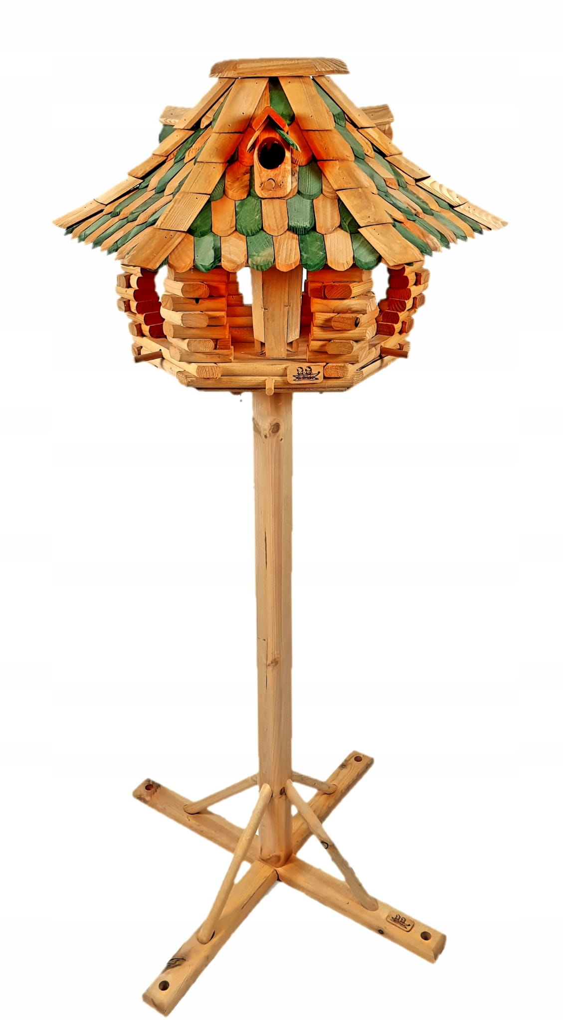 Przedmiotem sprzedaży jest ozdobny drewniany Karmnik dla ptaków model K22 + stojak w rozmiarze XL.