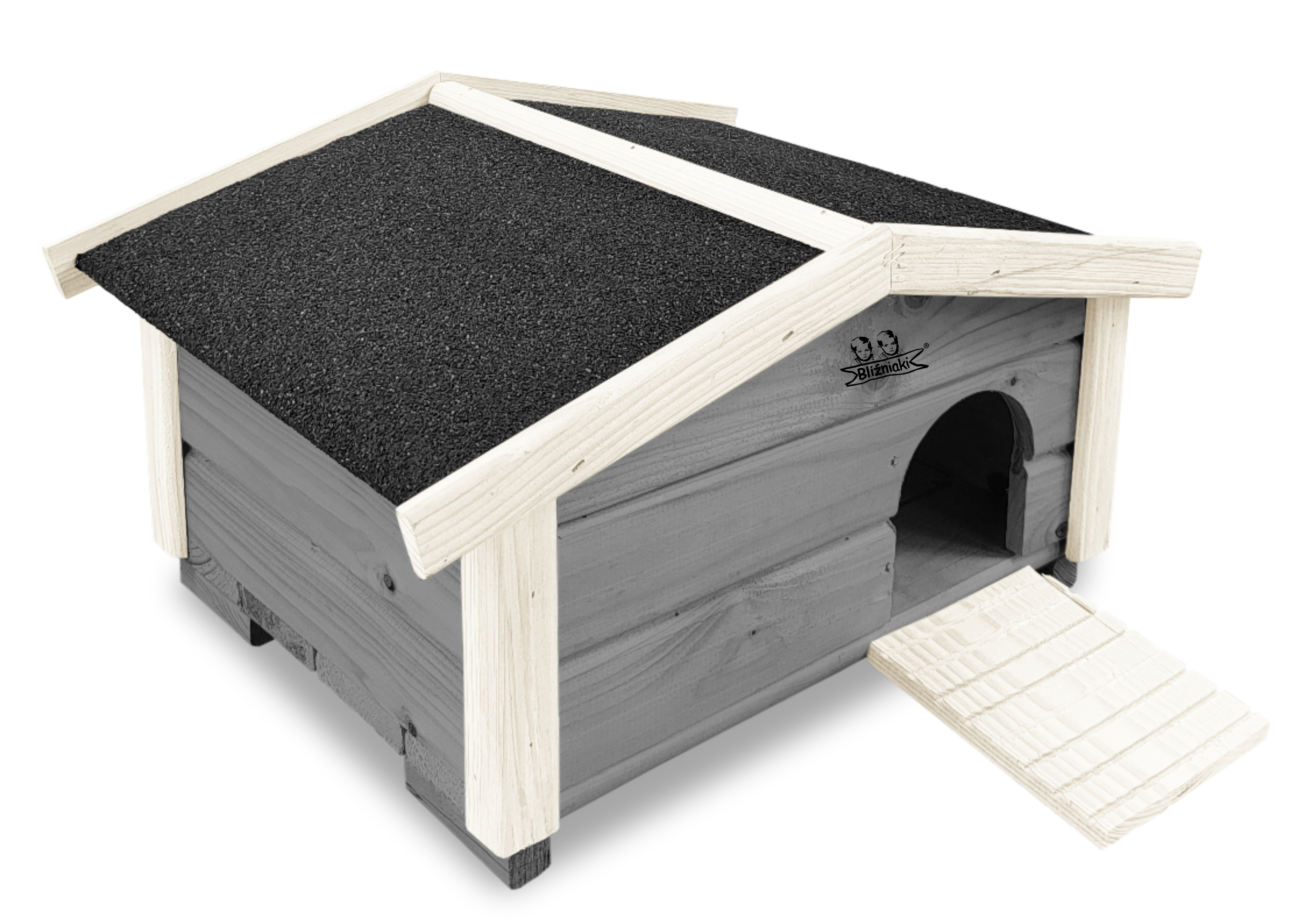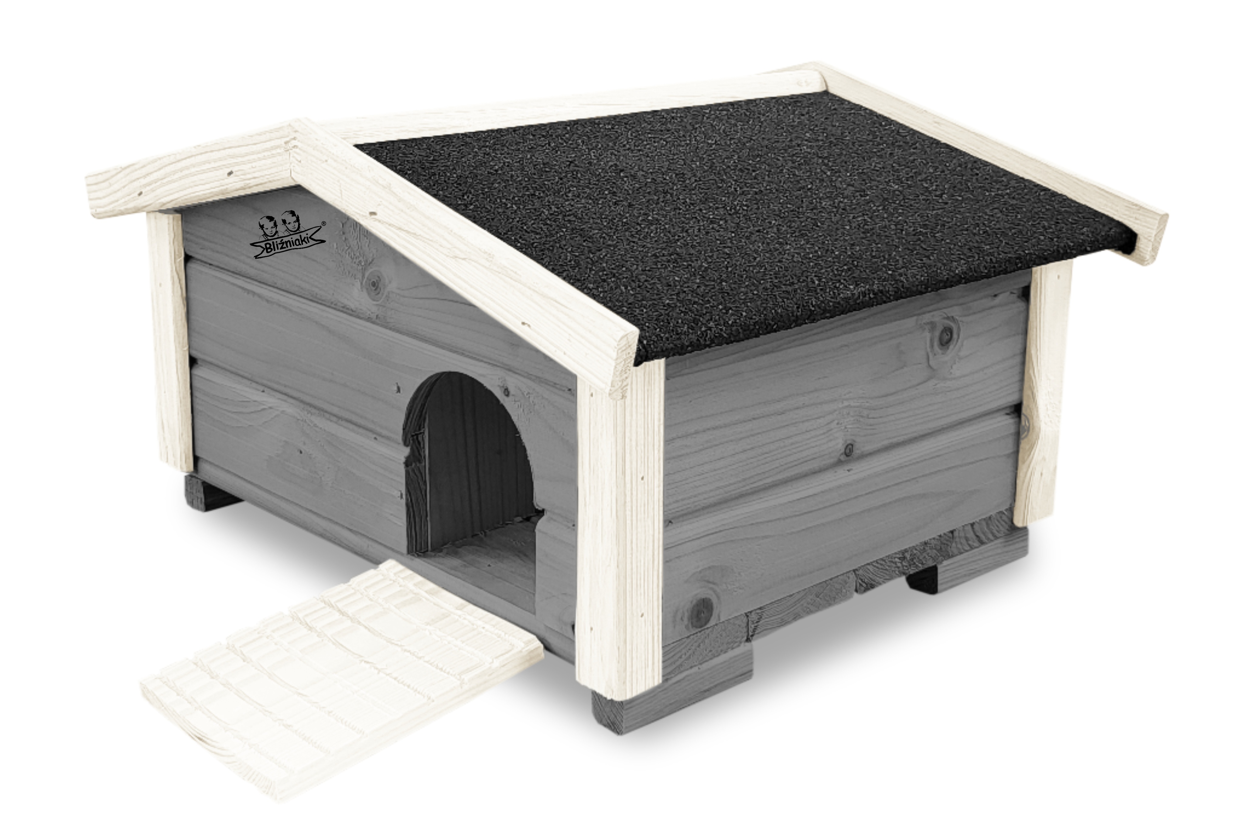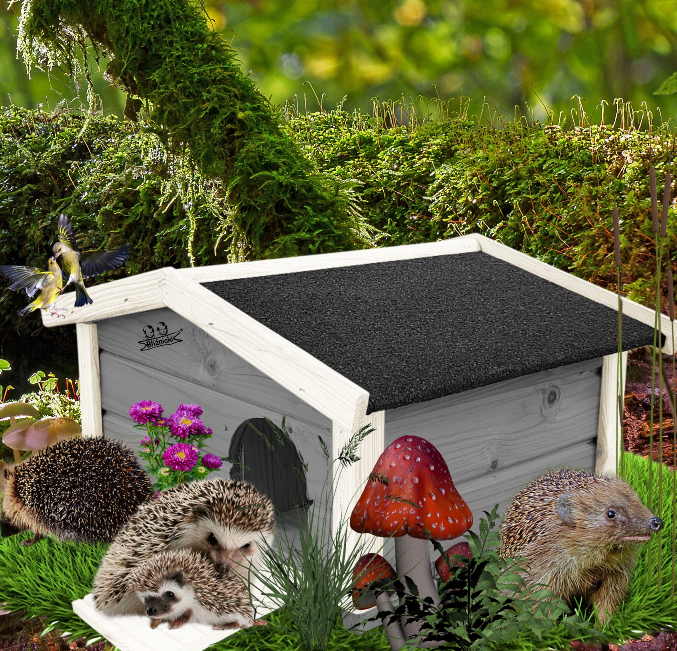 Na tej aukcji oferujemy domek dla jeża HDJ10 SN BI kolor SZARY Z BIAŁYMI ELEMENTAMI, domek dla jeża został zaimpregnowany środkiem na bazie wody, co czyni go dekoracyjnym a także przyjaznym dla przyrody.
